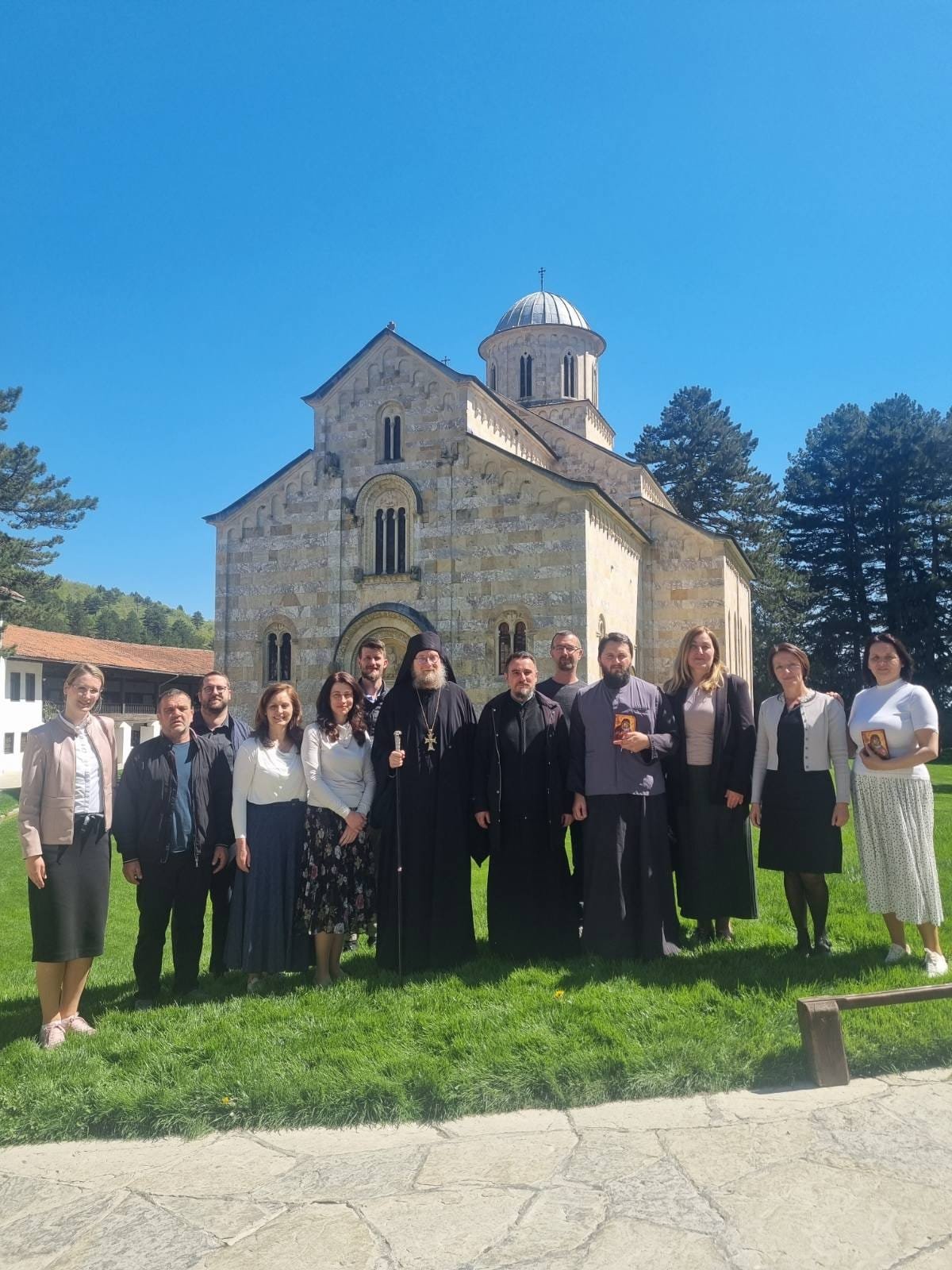 У Недељу Томину, у раним јутарњим часовима, стигли смо у царску лавру – Високе Дечане. Имали смо изузетну част да након Божанствене литургије проведемо време у разговору са игуманом манастира, оцем Савом Јањићем. Отац Сава нас је упознао са деликатним приликама у којима живи наша Црква на Косову и Метохији, али и са великим напором који братство улаже да, у духу Јеванђеља, покаже милост и љубав према свима. Посебно је нагласио важност сведочења хришћанске вере кроз разумевање, милосрђе и превазилажење нетрпељивости, истичући да је то задатак и призвање сваког хришћанина, без обзира на околности.