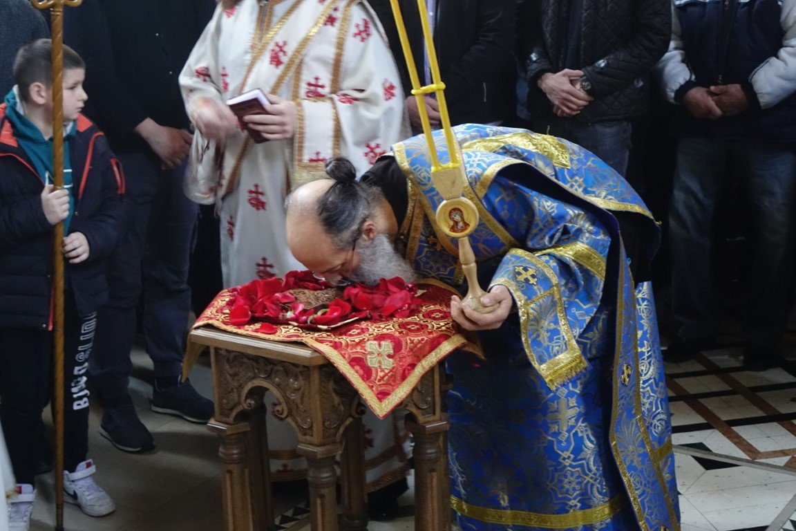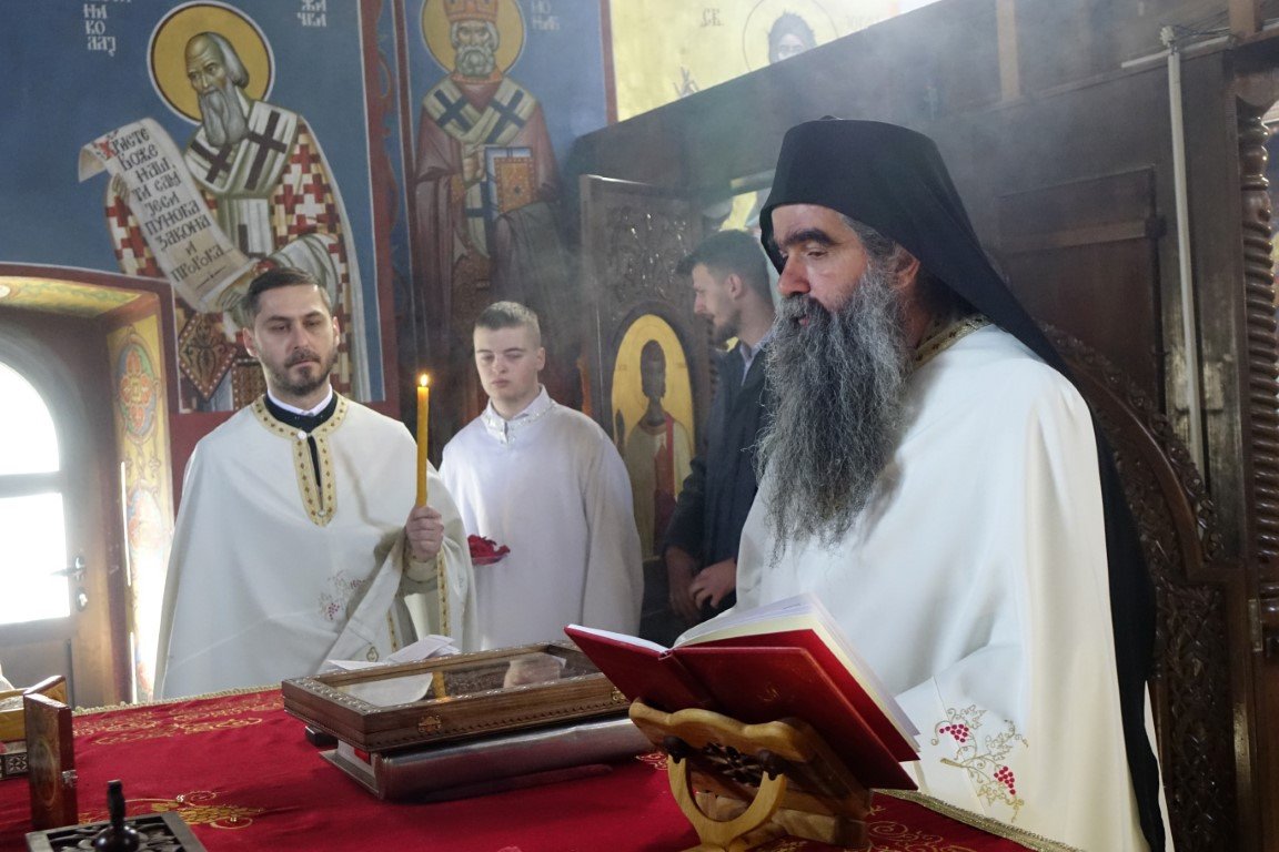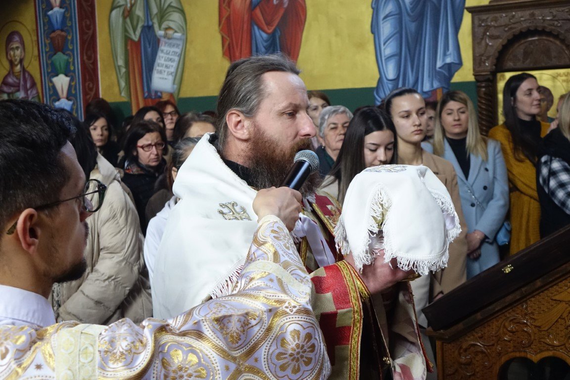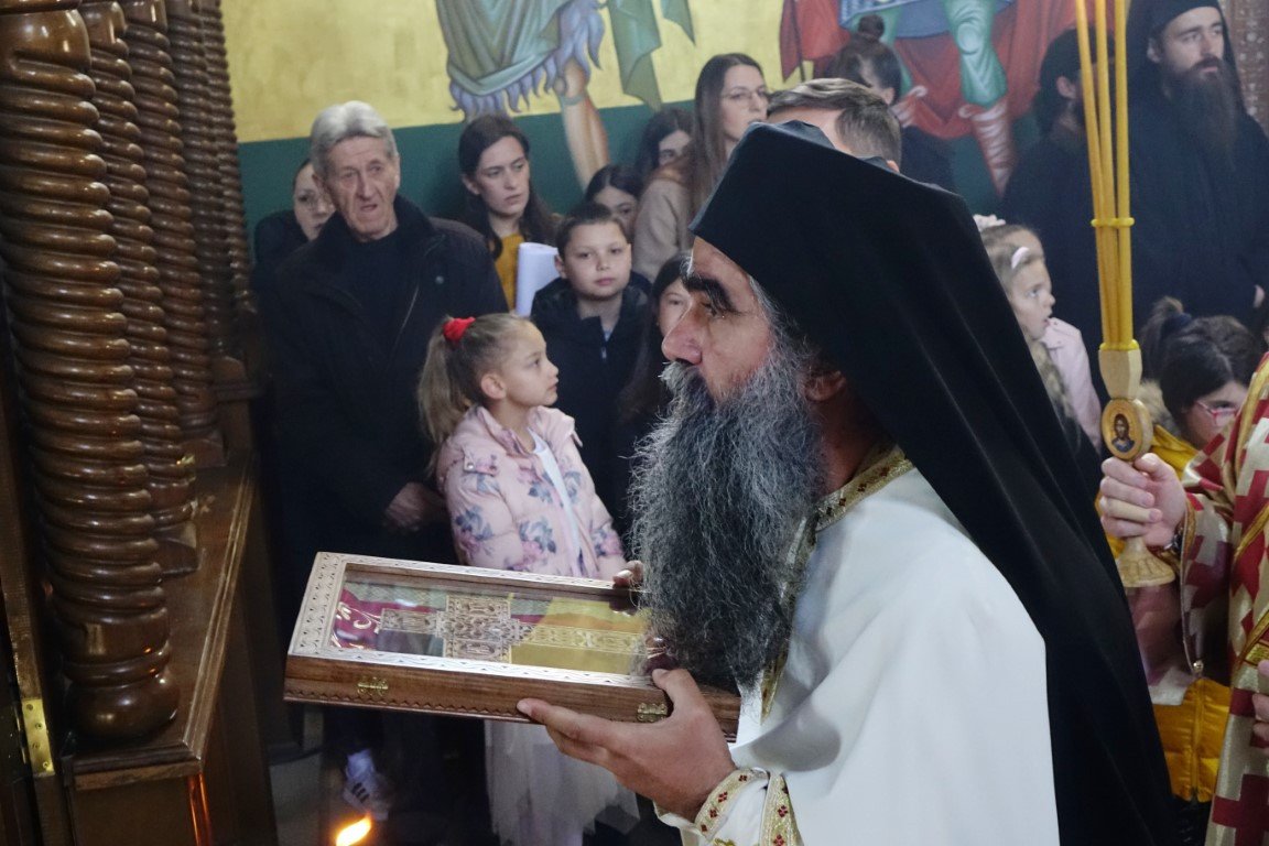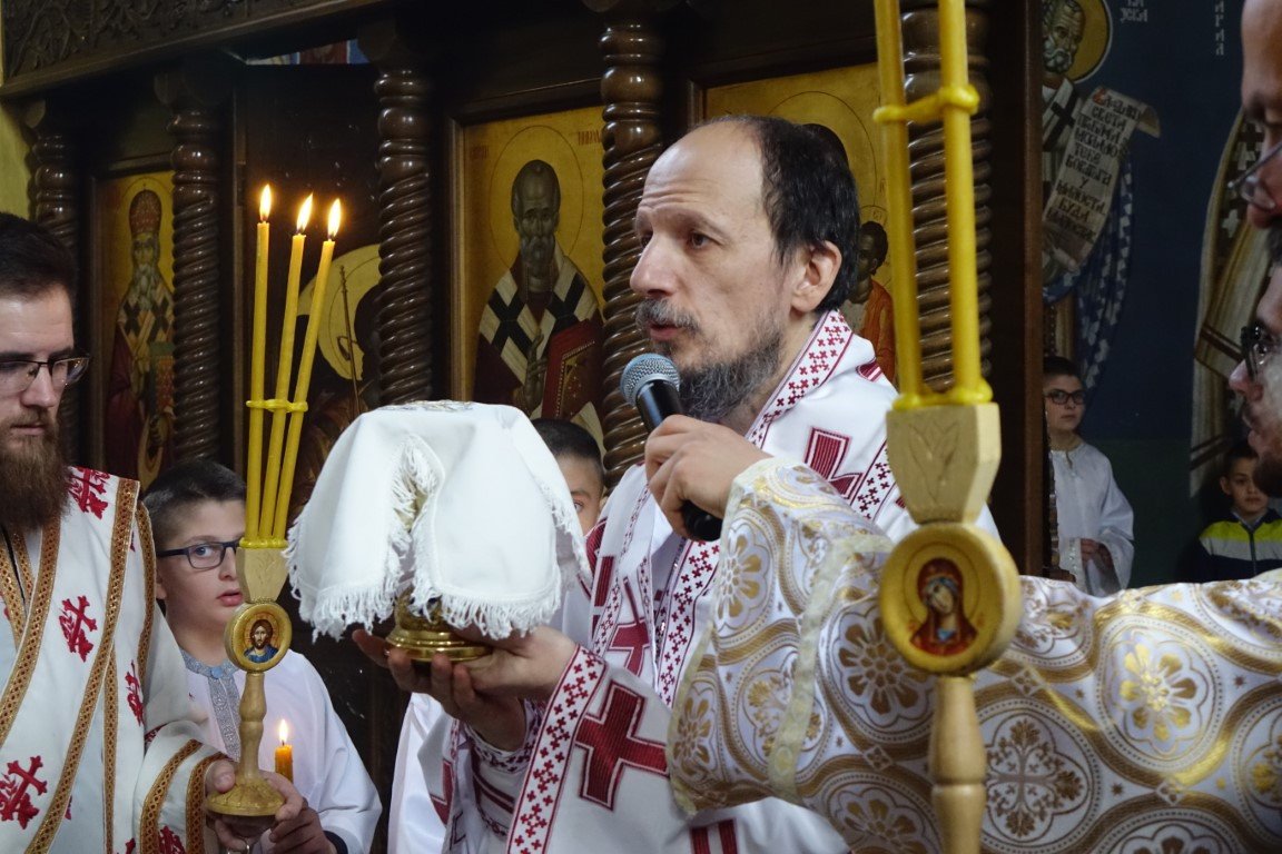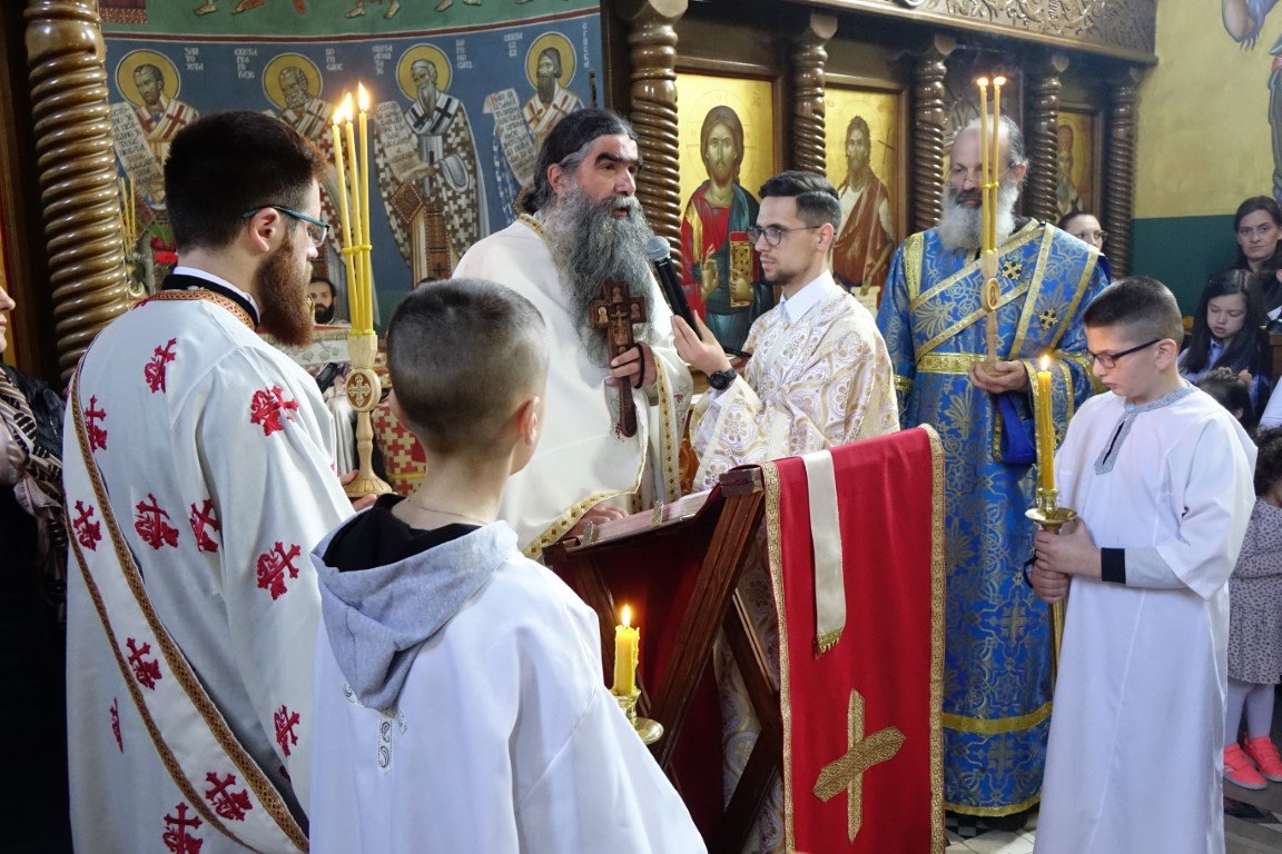 Благословом Владике Димитрија, по Јеванђељу је бесједио отац Рафаило, који је, говорећи о тајни свјетлости и сили Крста, нагласио: „Ето, потенцијално, и нашег дана и нашег истинског рођендана, бесмртнога дана. Јер, само у Крсту и силом Крста, поништена је смрт, укинуто проклетство и Крстом откључан Живот у пуноћи, у Царству Свете Тројице.”