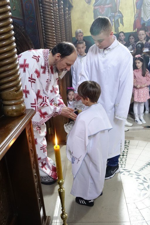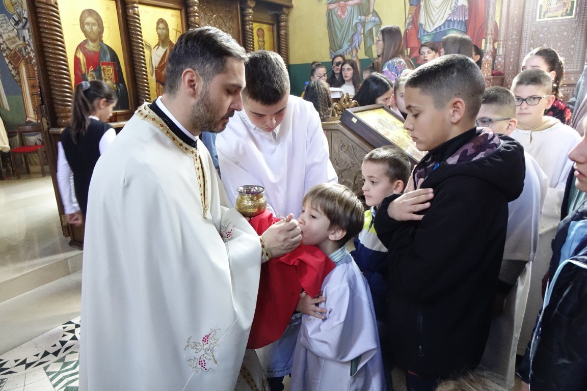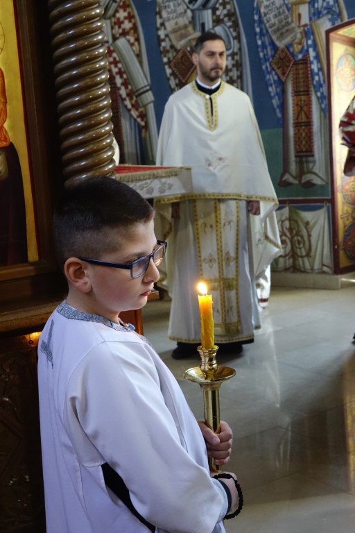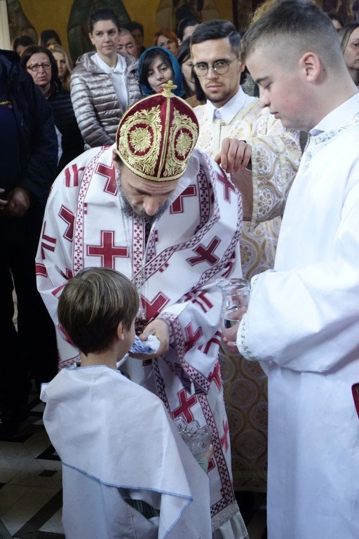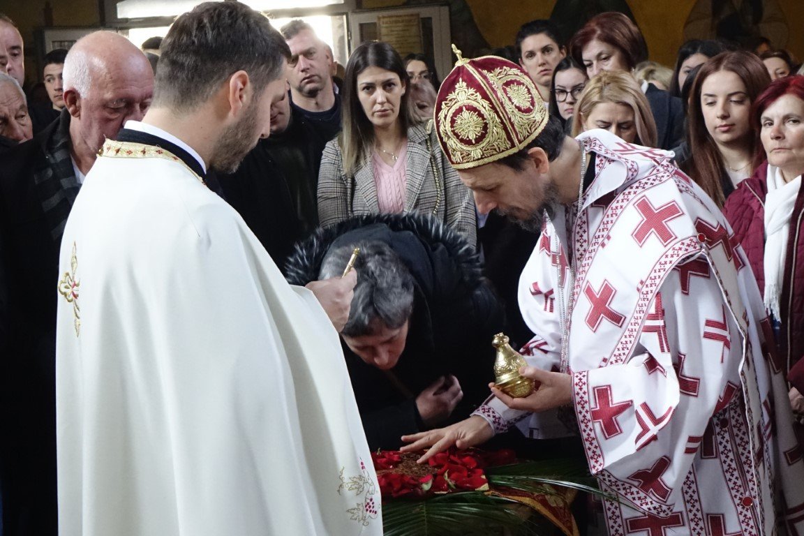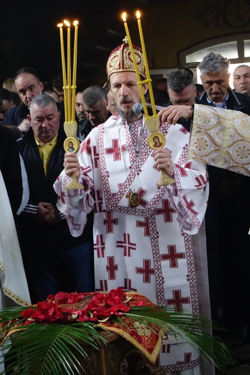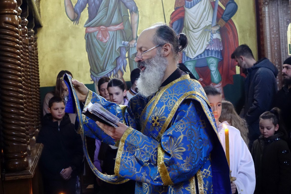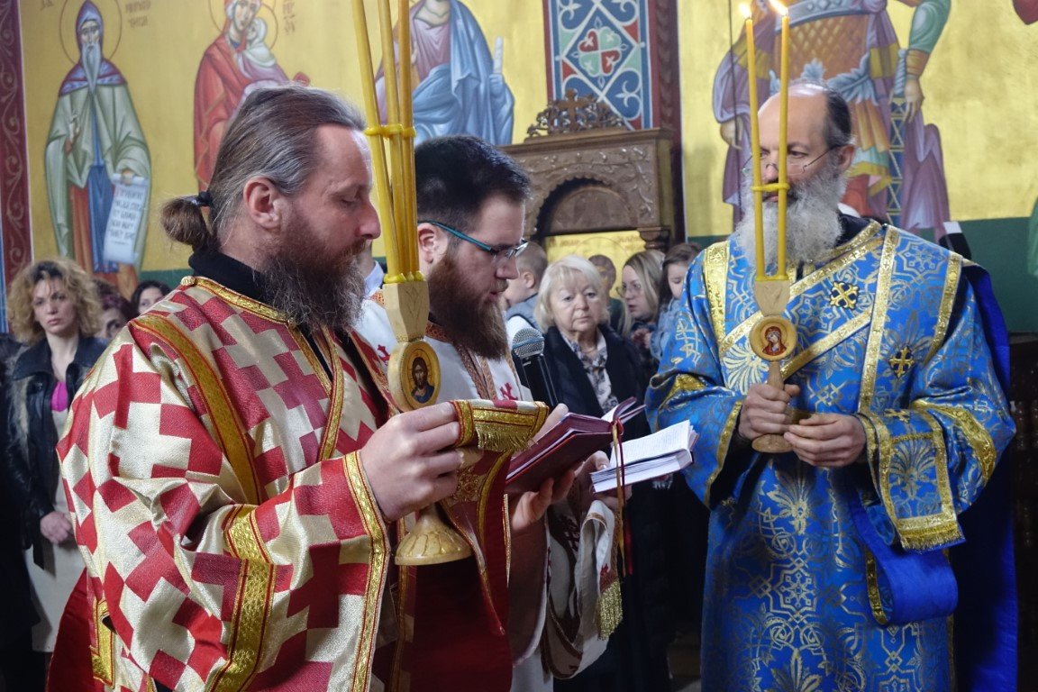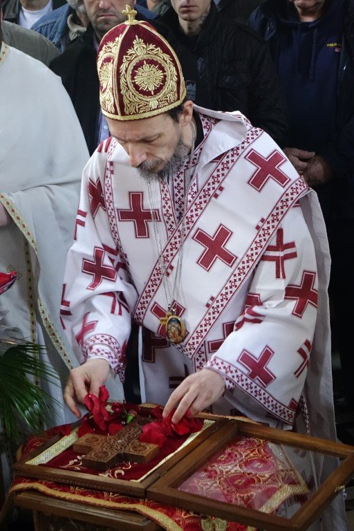 Благословом Владике Димитрија, по Јеванђељу је бесједио отац Рафаило, који је, говорећи о тајни свјетлости и сили Крста, нагласио: „Ето, потенцијално, и нашег дана и нашег истинског рођендана, бесмртнога дана. Јер, само у Крсту и силом Крста, поништена је смрт, укинуто проклетство и Крстом откључан Живот у пуноћи, у Царству Свете Тројице.”