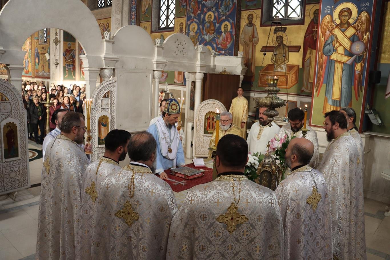 Након отпуста, сабраном вјерном народу обратио се Високопреосвећени Владика Димитрије, који је, говорећи о анђелским силама, појаснио да се Божијем доласку у свијет радују и заједничаре анђели небески, јер је једна Црква анђела и људи. Више нема ограничења природом јер у човјеку дјела благодат и љубав Божија, а човјек треба на уздарје Богу да принесе чистоту душе, исправност савјести и живот по јеванђељским заповијестима.