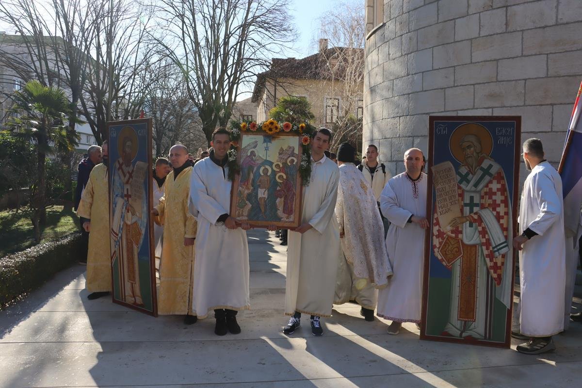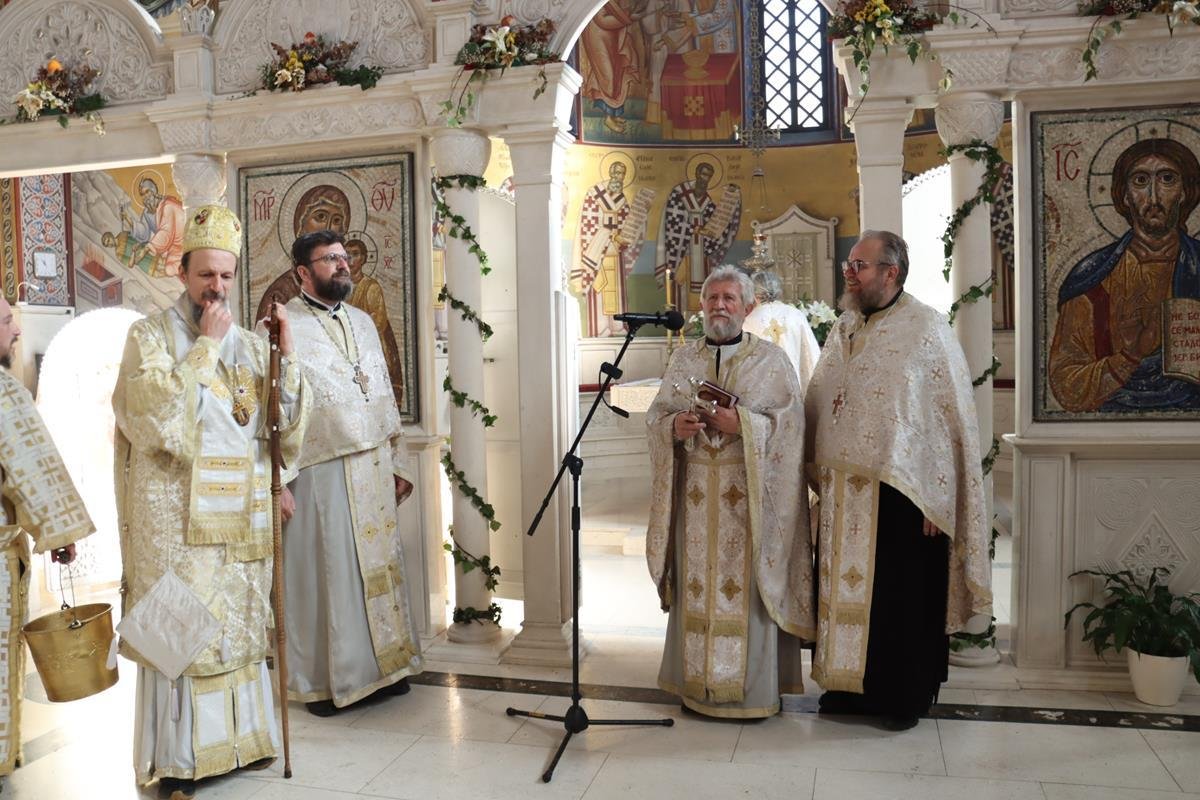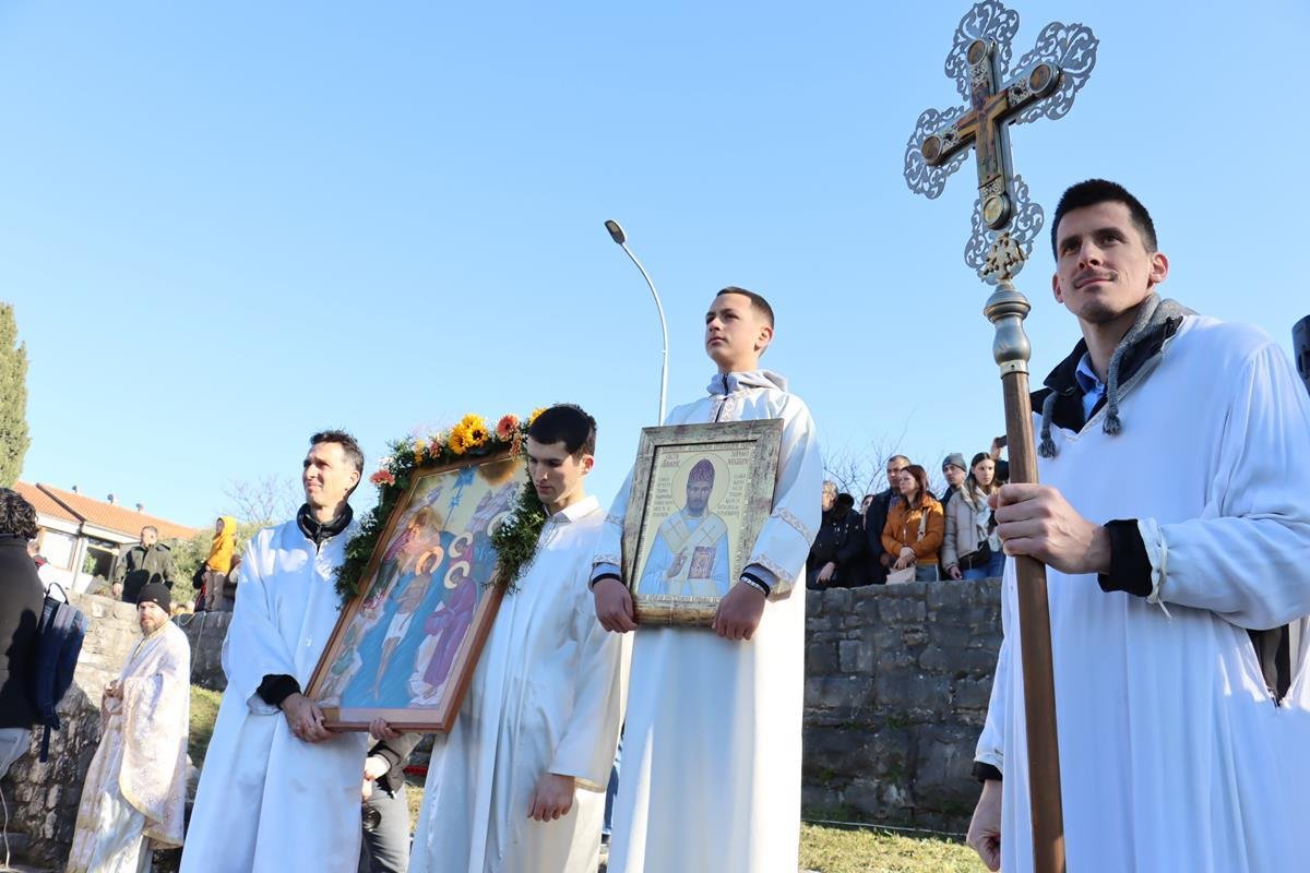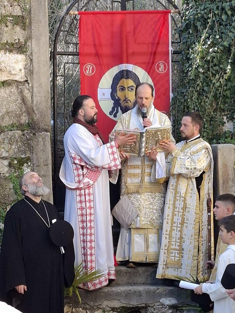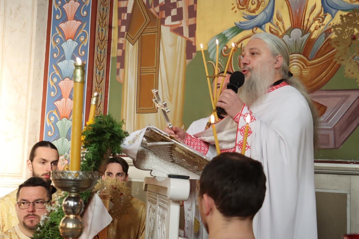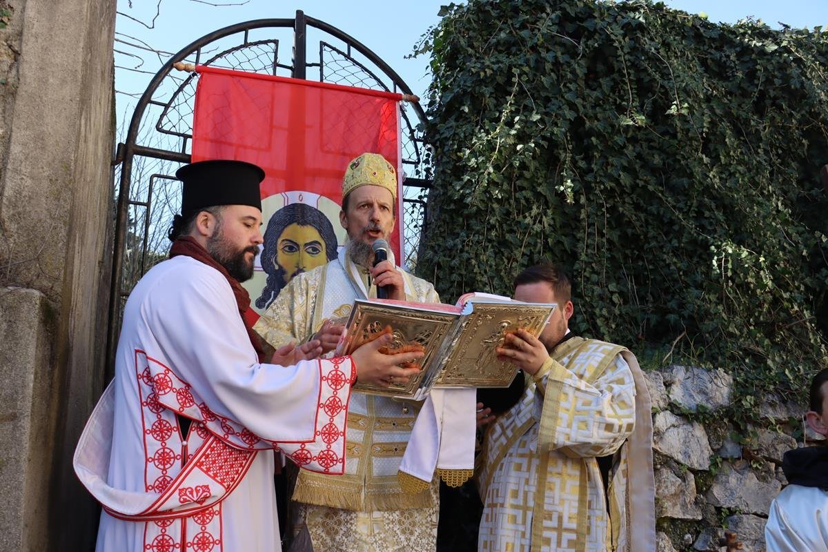 Послије прочитаног Светог Јеванђеља, свима сабранима у овоме Светоме Храму обратио се јеромонах Теофил, настојатељ Манастира Дужи, који је у уводном слову пастирске празничне бесједе казао да је Бог Творац и Промислитељ свега видљивога и невидљивога, и да се управо кроз воду и смирење открива тајна нашега спасења.