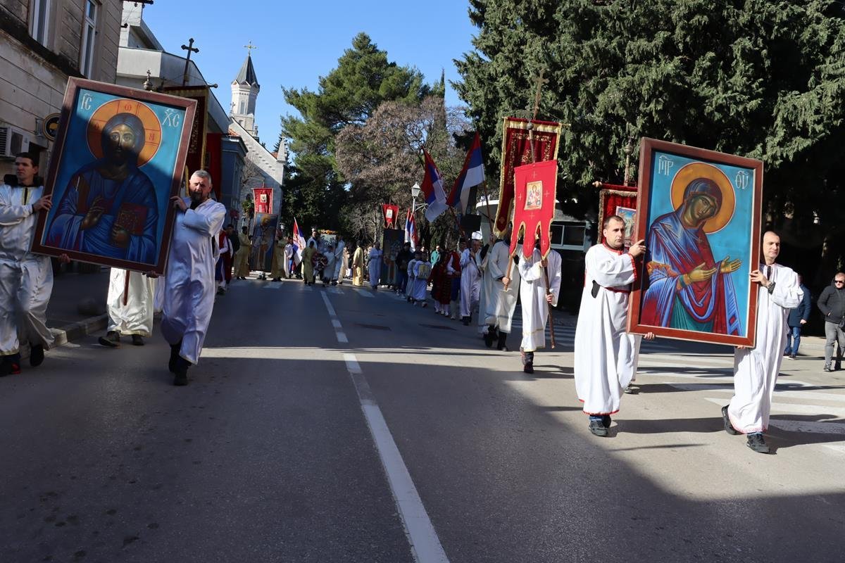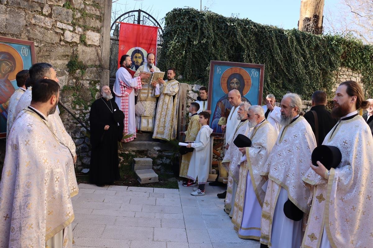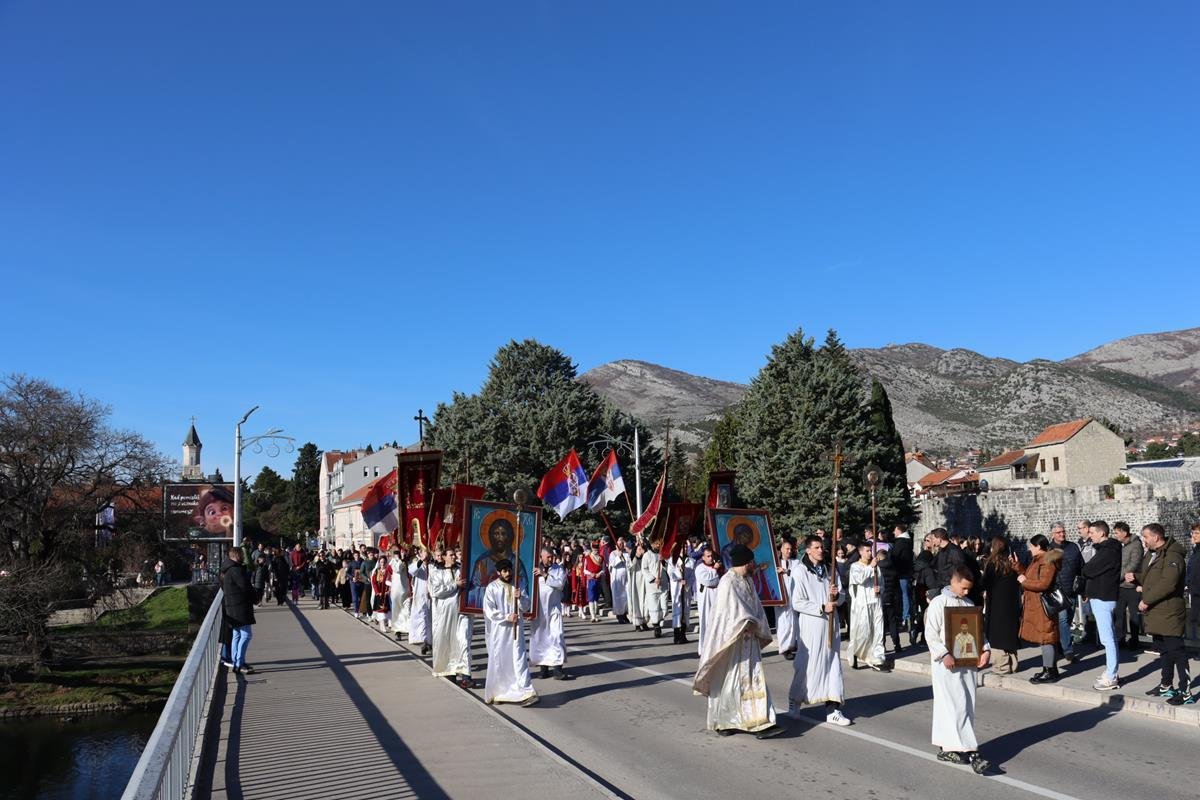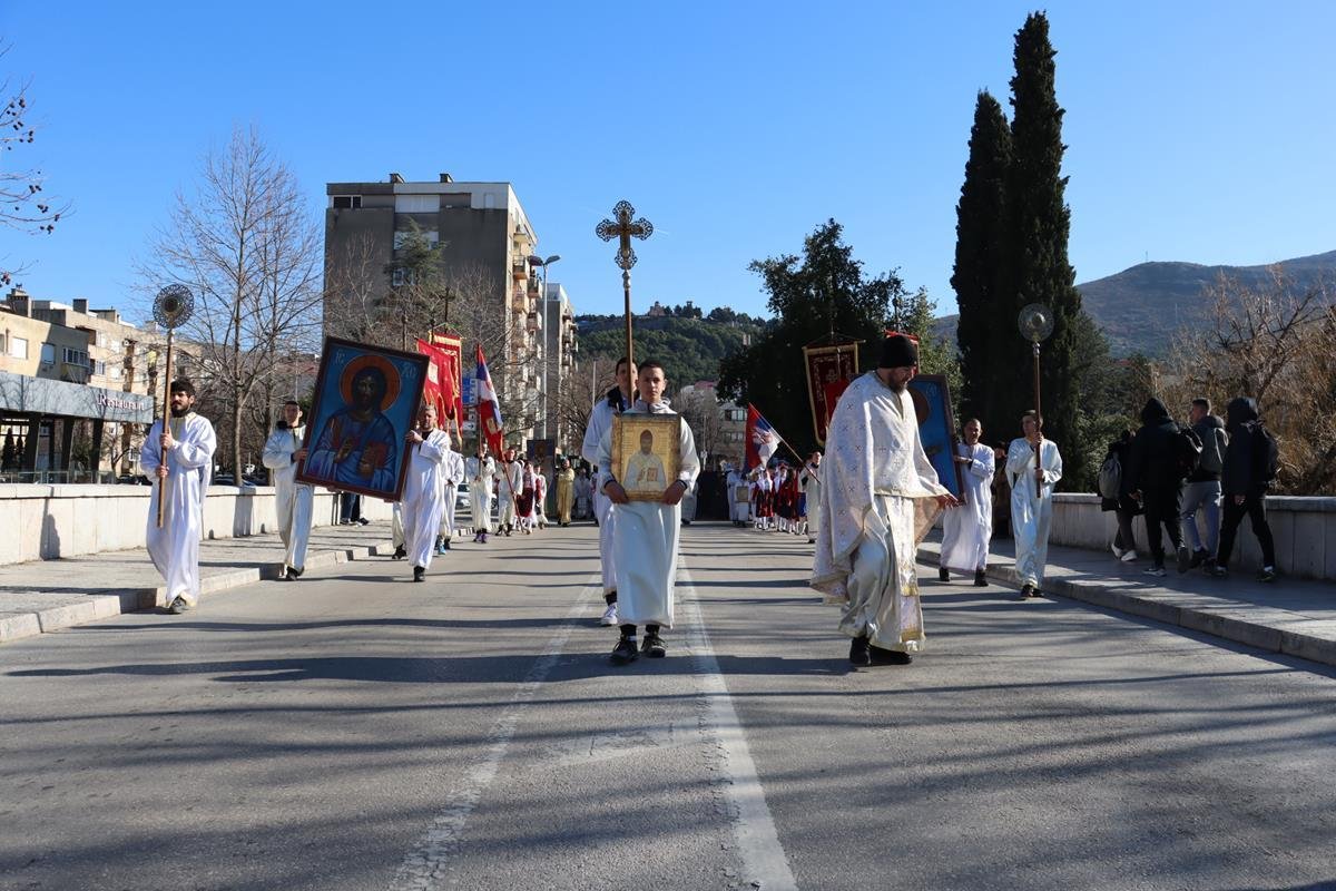 По завршетку чина на ријеци, литија је наставила преко моста ка Старом граду, пролазећи његовим древним улицама и зидинама, гдје је прочитан богојављенски молебан, уз заједничку молитву за град Требиње, његове житеље и сав народ Божији.