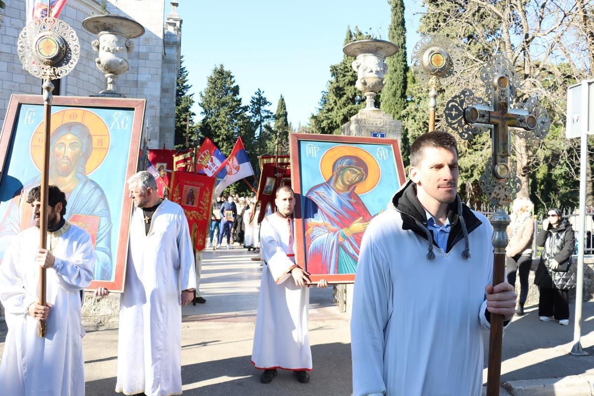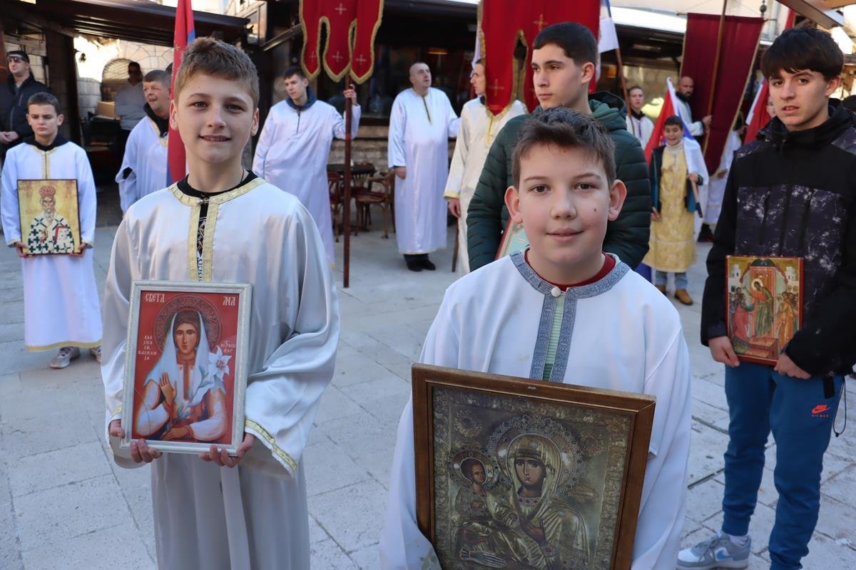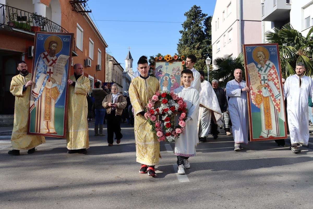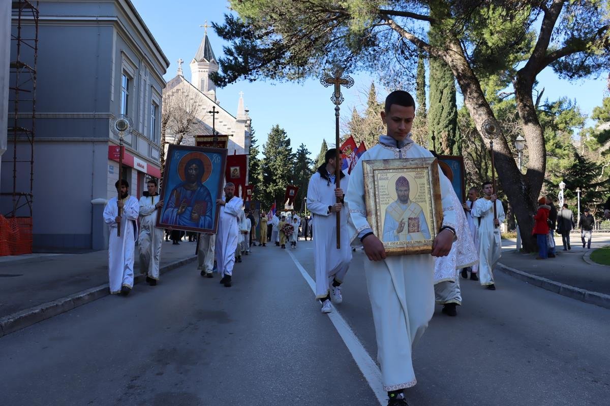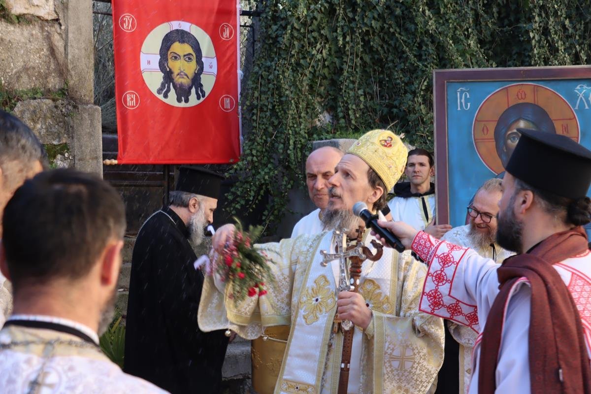 По завршетку чина на ријеци, литија је наставила преко моста ка Старом граду, пролазећи његовим древним улицама и зидинама, гдје је прочитан богојављенски молебан, уз заједничку молитву за град Требиње, његове житеље и сав народ Божији.