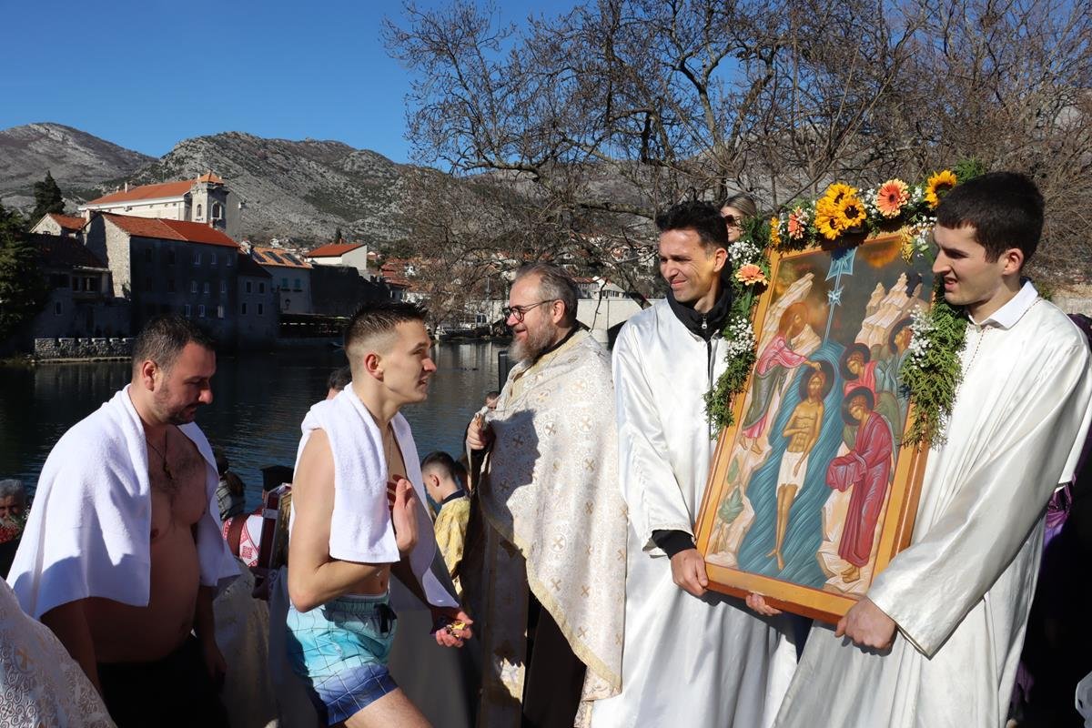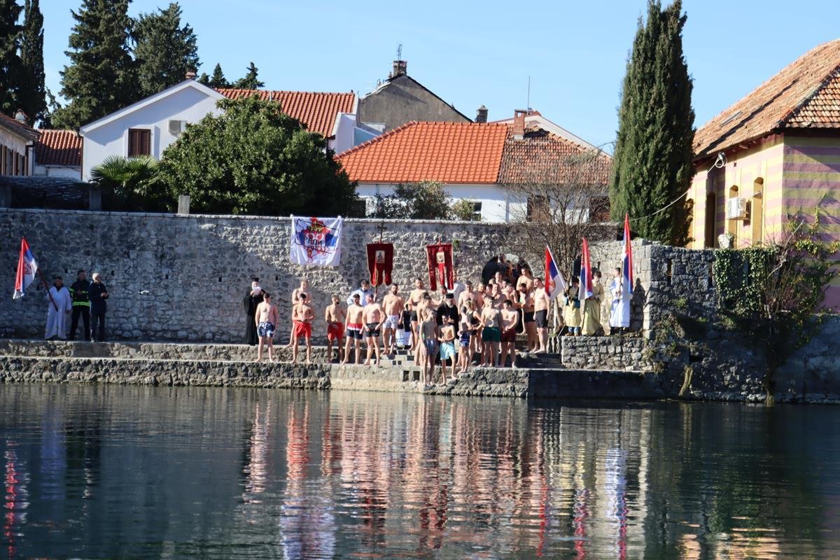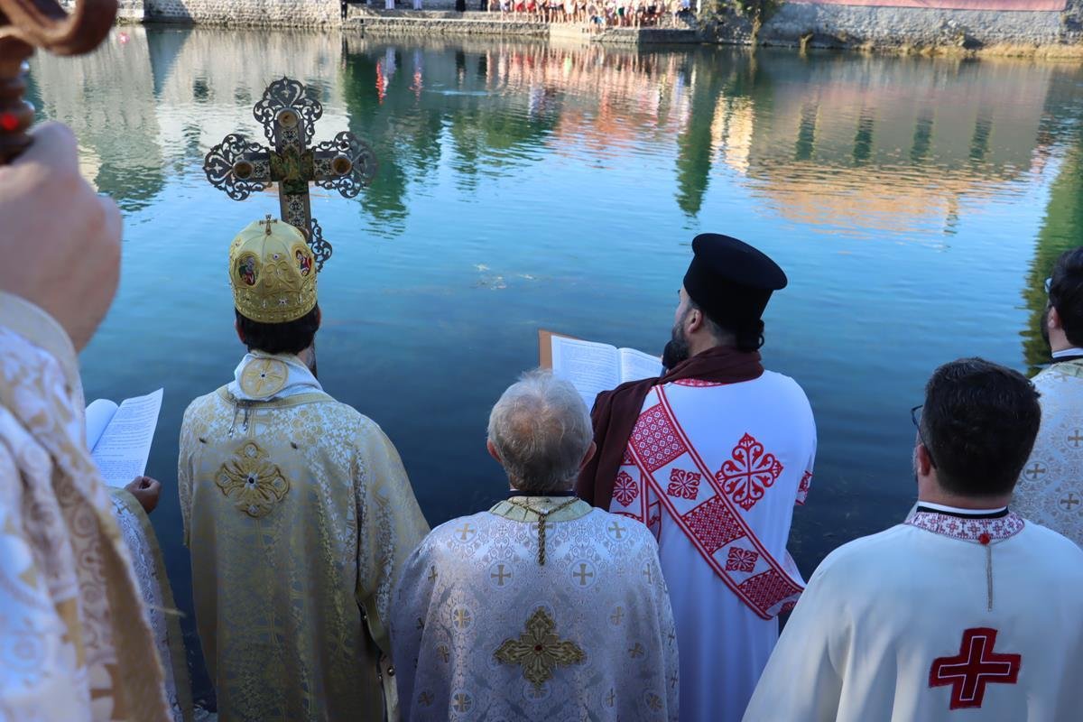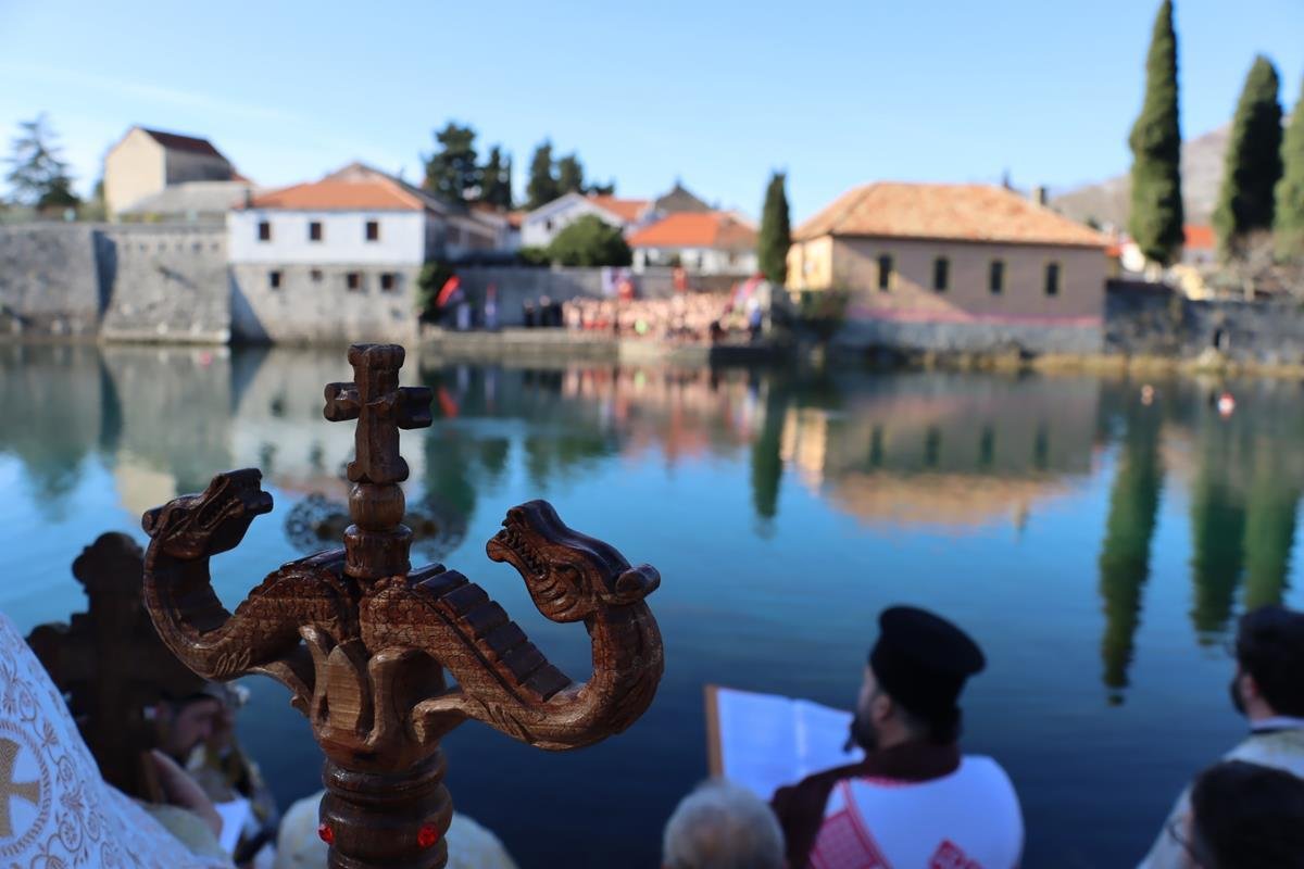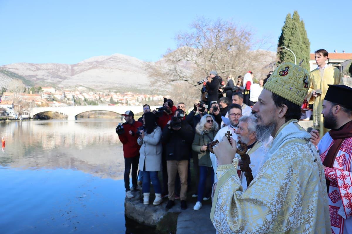 Након Светога Причешћа, услиједио је свечани излазак на ријеку Требишњицу у литијском ходу. Улицама Требиња, уз молитвено појање богојављенског тропара, кретало се мноштво вјерног народа, сабраних у радости великога празника. На обали Требишњице извршено је Велико освећење воде, а потом је у ријеку спуштен Часни крст, у сусрет којем је запливало више стотина најхрабријих учесника.