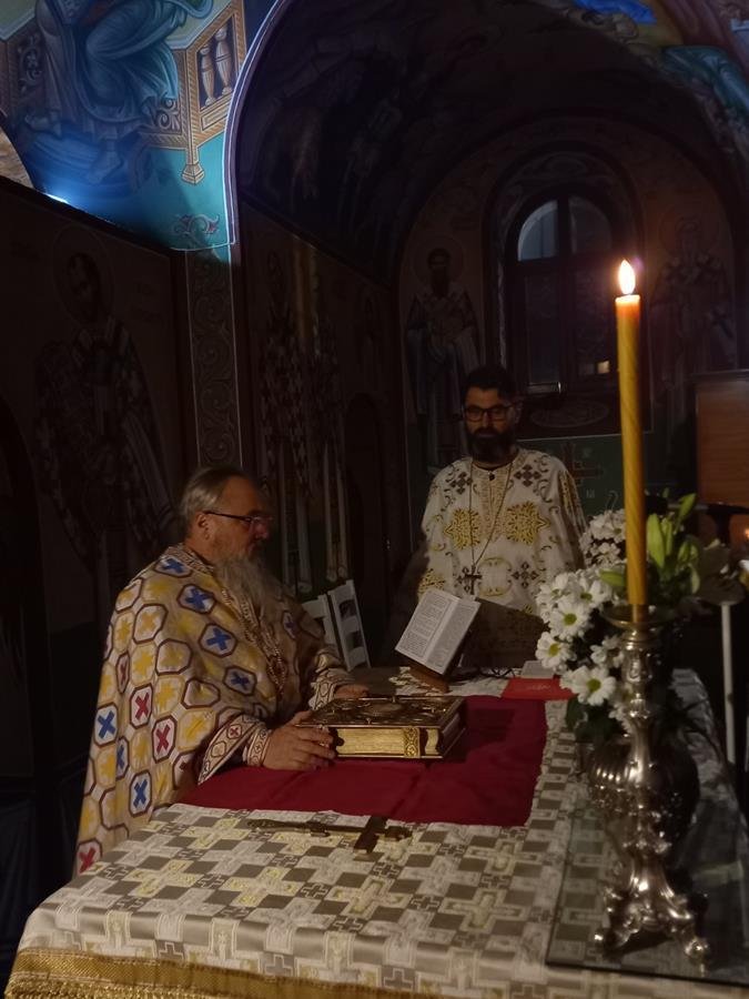 Јутарња служба отпочела је у 23 ч. а тачно у поноћ литургија, којом је началствовао игуман Данило уз саслужење оца Лазара.