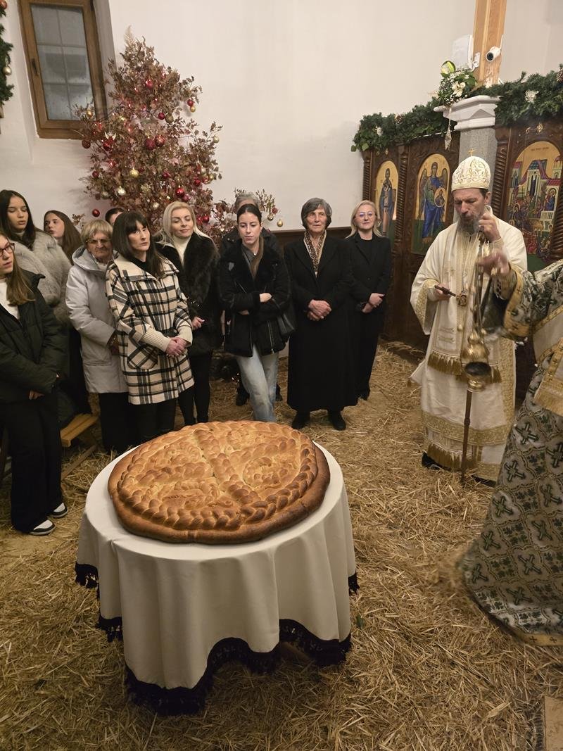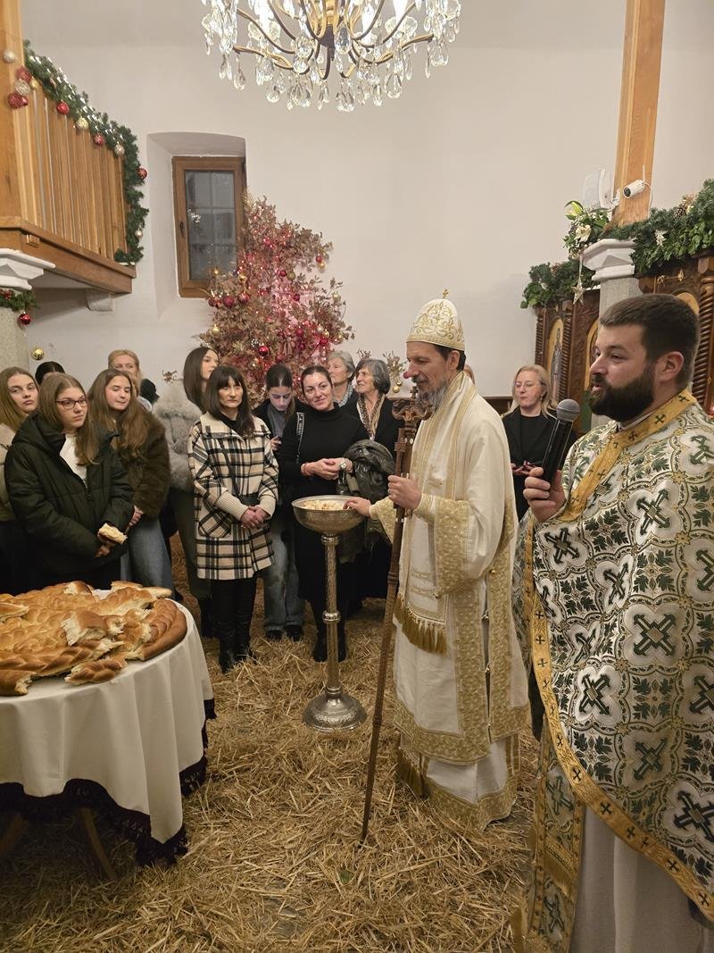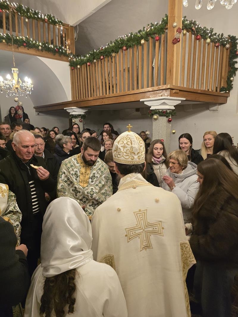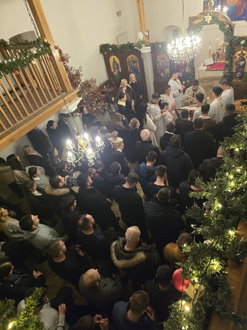 По Отпусту, Владика Димитрије упутио је сабранима поздрав мира Христос се роди, рекавши да је Бог послао Сина свог у овај свијет да свијет постане то што је Бог створио – творевина Божија, и да тако уведе све у Царство Небеско, да све спасе. Човјек треба да се спрема за Царство Небеско, а Божић је најбоље вријеме да се човјек измири са свима које среће, да свима све опрости и да са свима живи у миру. Након бесједе Владике Димитрија, услиједила је подјела чеснице. Божићњем литургијском сабрању, у име мостарско-дувањског бискупа Петра Палића, присуствовао је дон Стјепан.