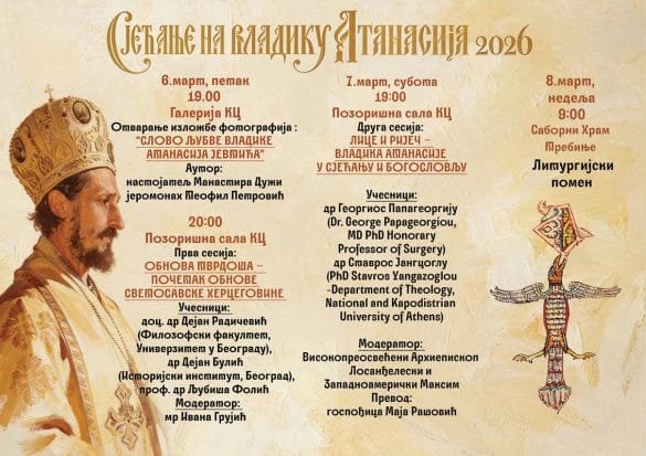 Епархија Захумско-Херцеговачка и Приморска најављује обиљежавање петог годишњег помена од упокојења блаженопочившег Владике Атанасија под називом: “Сјећање на Владику Атанасија”….