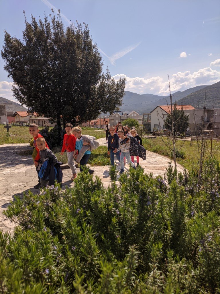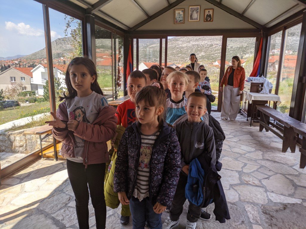 Група дјеце из продуженог боравка је са својим учитељицама направила мали излет на Путу вјере и културе и у краткој молитви и поуци, радовала се сусрету са светињом. За понеке је то био њихов први сусрет са храмом, и утолико важнији и радоснији.