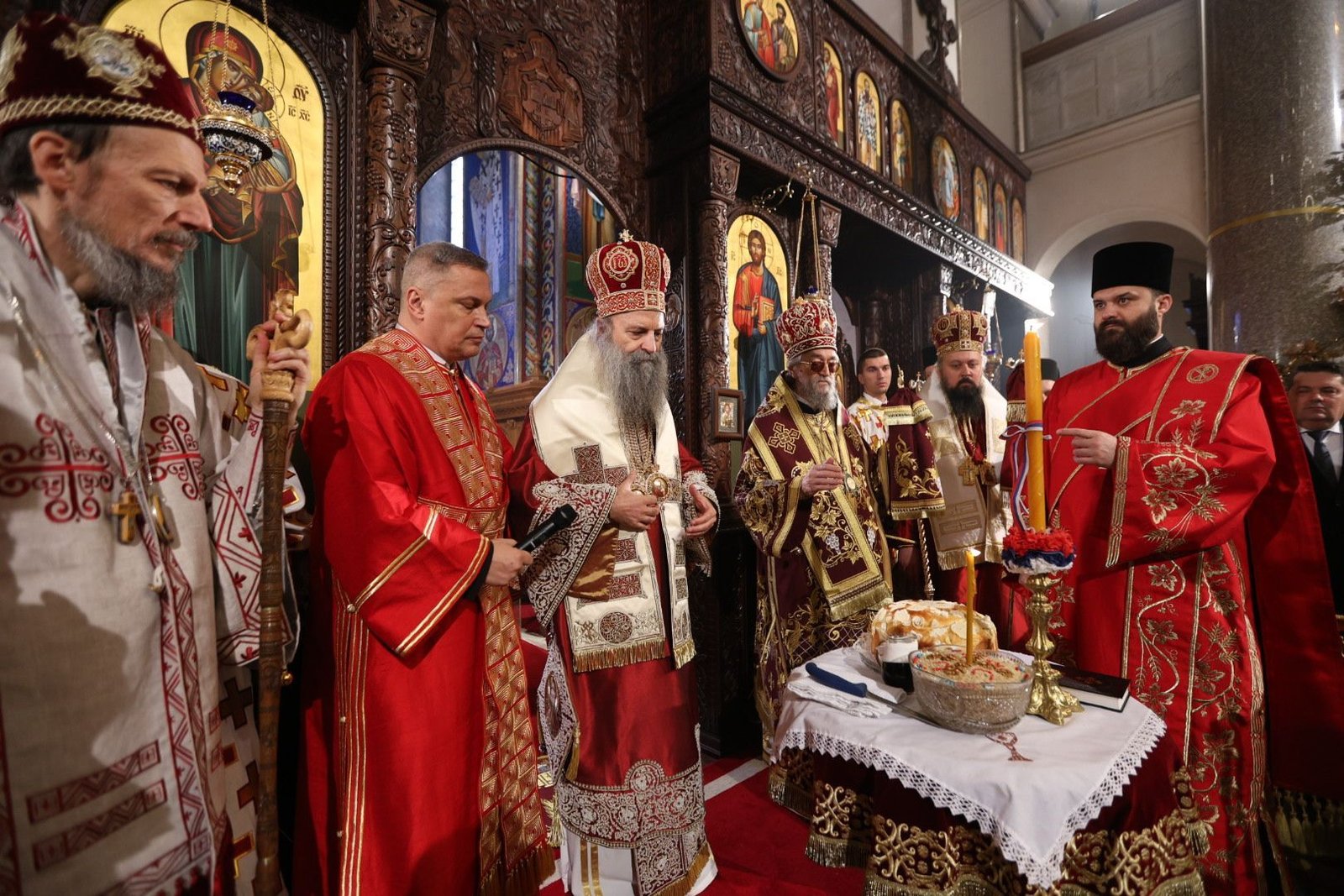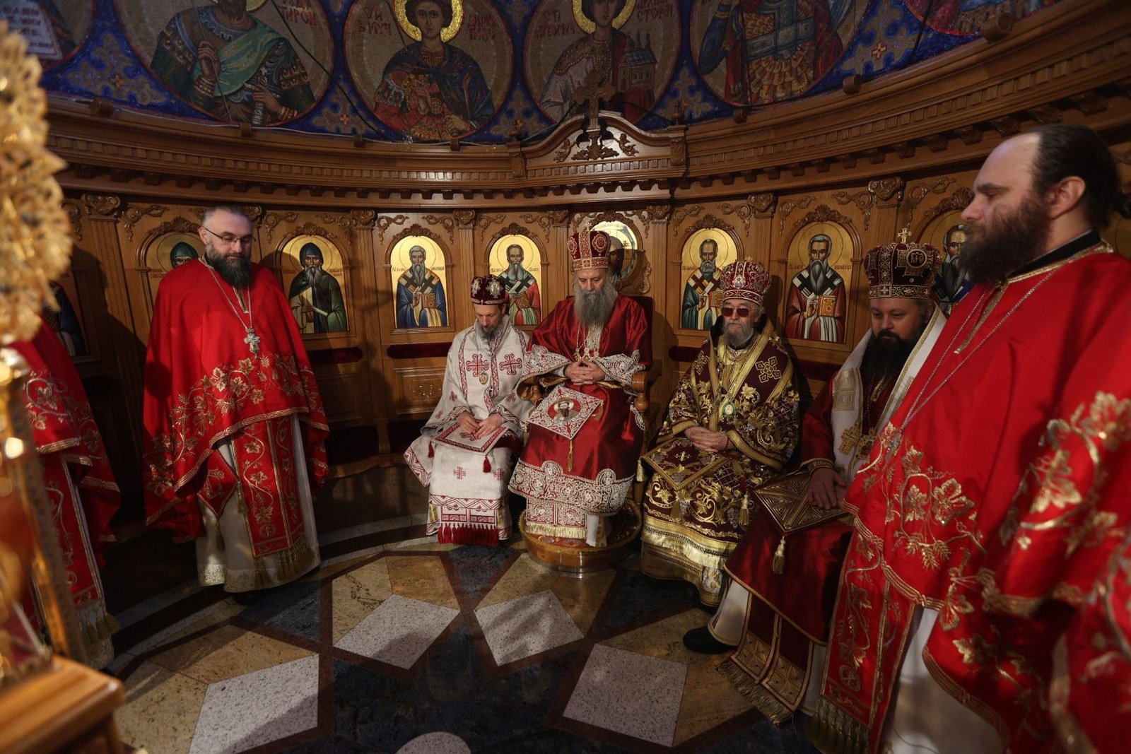 Светејшем Патријарху су саслуживали: високопреосвећена господа митрополити бањалучки Јефрем и захумско-херцеговачки и стонско-приморски Димитрије; Преосвећени викарни Епископ марчански г. Сава и свештенство Саборног храма; уз молитвено учешће бројног народа…..