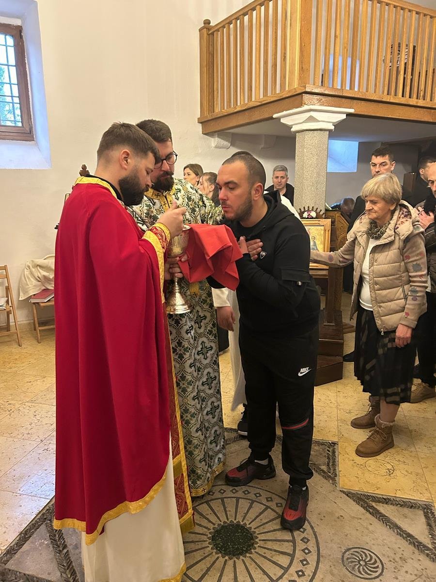 У Крстопоклону недјељу у Богородичином храму у Мостару Свету Литургију служио је јереј Душко Којић, старјешина Саборног храма Свете Тројице у Мостару.