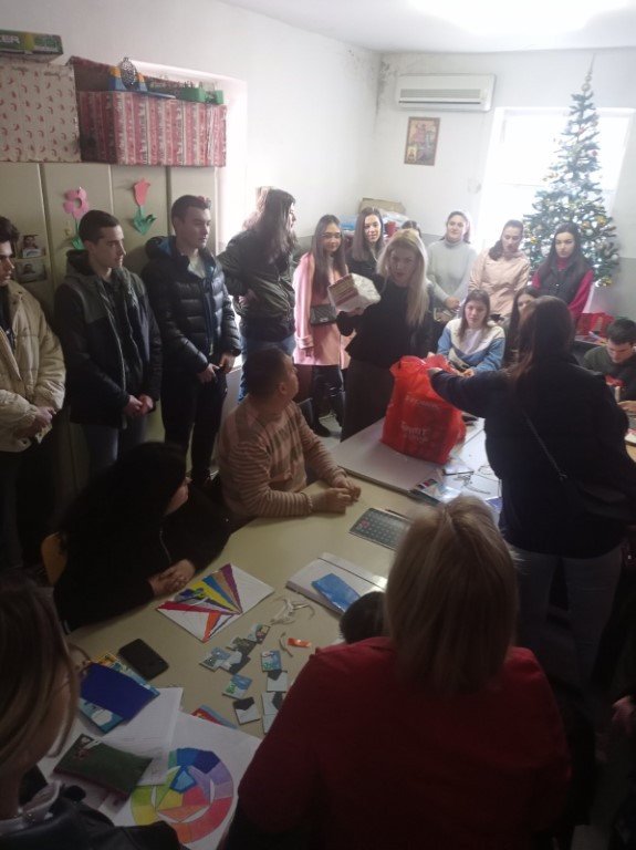 На заједничком часу поред дружења и разговора, спроведена је и радионица на којој су израђивали честитке, украсе за јелку и сувенире. Не постоје ријечи којима би се могло описати одушевљење и љубав током овог дружења. Договорено је и да нам дјеца из Удружења узврате посјету током наредног полугодишта, а матуранти су изразили жељу да их чешће посјећују.
