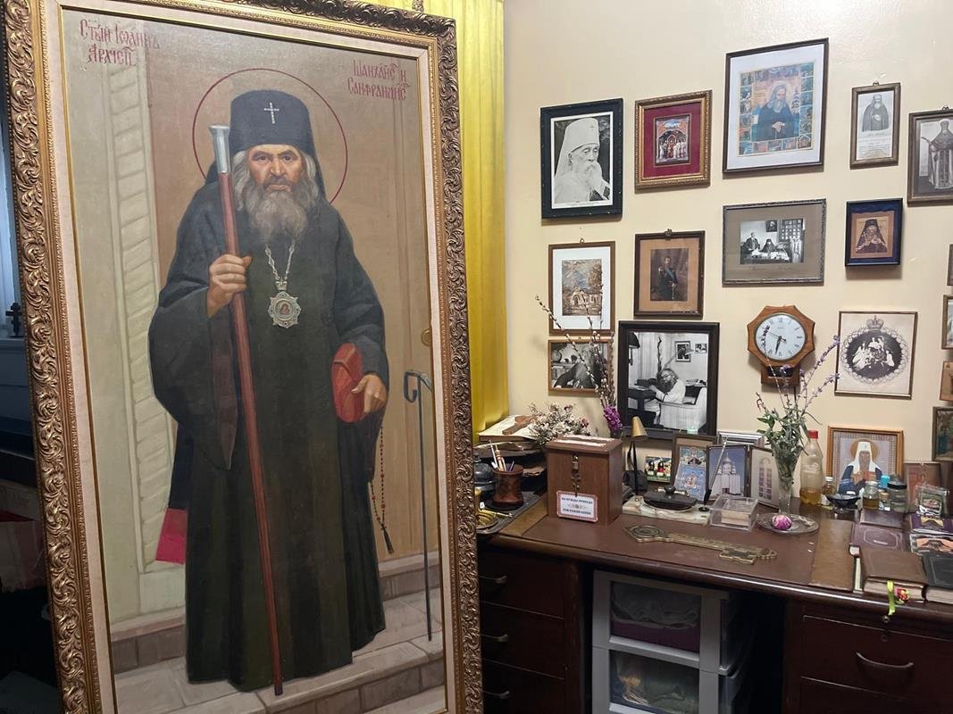Након посете дому светитеља, Митрополит Димитрије и игуман Теофил упутили су се у Катедралу „Свих Скорбјашчих Радост“ – центар православног живота у Сан Франциску и место где почивају нетрулежне мошти Светог Јована. У молитвеној тишини катедрале, пред кивотом са његовим светим моштима, приложили су своје молитве за Цркву, за народ и за све који траже утеху и помоћ. Митрополит и игуман су се захвалили Богу што су имали прилику да се приклоне светитељу који је својим животом сведочио да је Христова љубав јача од сваке невоље и да светиња истински живи и делује и данас. Посета дому и моштима Светог Јована Шангајског остаје трајно духовно искуство и подсетник да су молитве светитеља живе, делатне и увек присутне међу нама – као светлост која нас води путем вере, смирења и љубави.