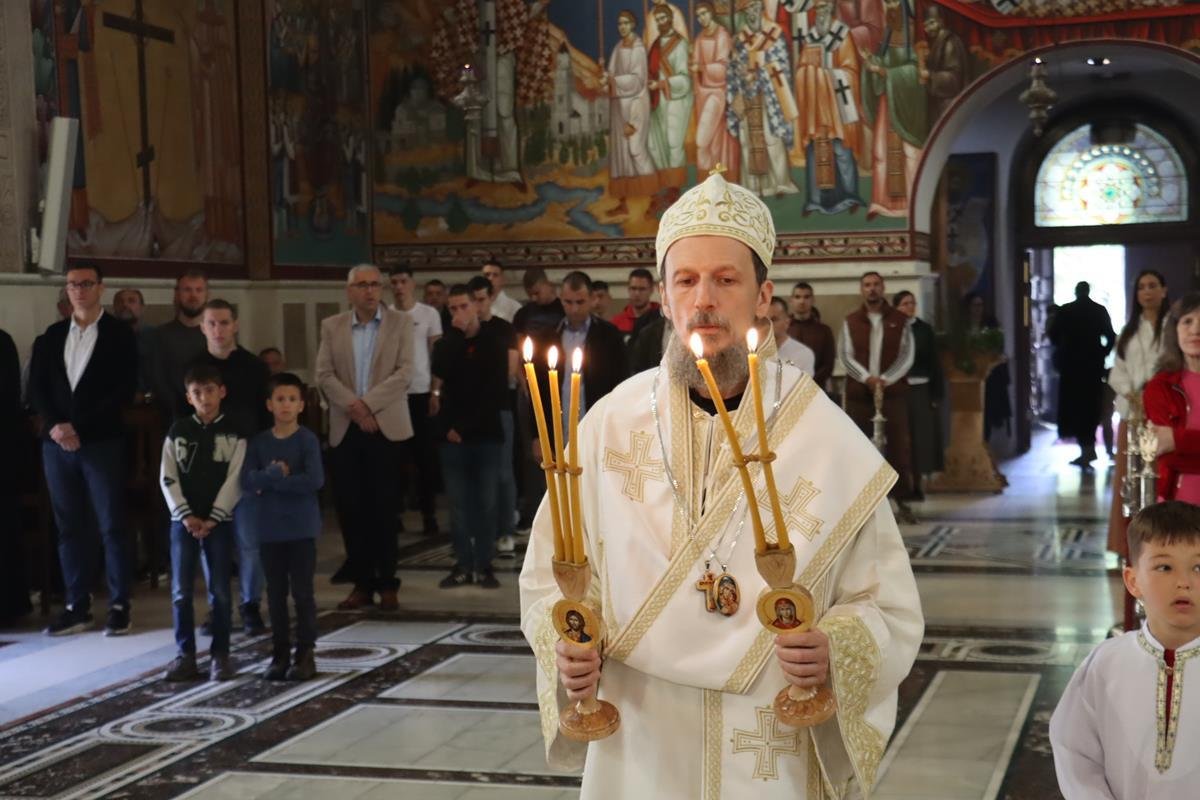 У јеванђељској бесједи Владика Димитрије нагласио је да ће сви васкрснути, али једни ће васкрснути на живот а други на суд. Ако постоји принуда за природу људску, не постоји за вољу. Воља треба слободно да се отвори за Спаситеља. О тој тајни природе, а још више воље, говори Господ у разговору с Никодимом. Говори му о новом рођењу, новом животу који човјек треба да прими добровољно. Крштење је као слика Крста и Васкрсења Христовог, оно је бескрај живота. Живот будућег вјека много је дубља тајна него само бесмртност. То је богатство живота Божијега, богатство љубави, истине и правде; радост, мудрост – све што је добро у овом свијету, у вјечном животу наставља се као васкрсење из мртвих и живот будућег вијека. Господ није дао само бесмртност, већ живот у љубави и истини, живот у којем нема лажи, преваре и страдања. Дао је да то човјек сам изабере и да то проживи у свом животу. Да се благодат крштења разрасте у човјековом животу.