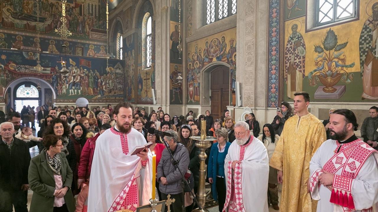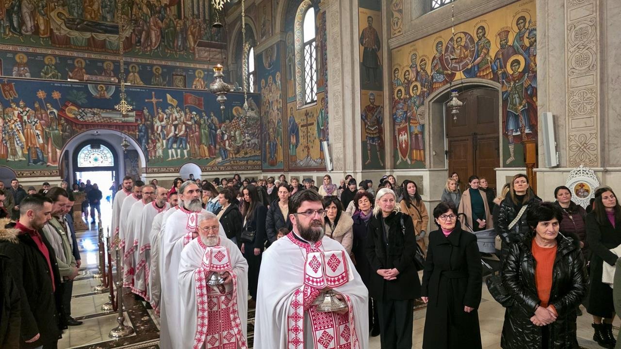 У четвртак, 12. фебруара 2026. године, када наша Света Црква прославља Света Три Јерарха (Светог Јована Златоустог, Светог Василија Великог и Светог Григорија Богослова), служена је Света Архијерејска Литургија у Саборном храму Преображења Господњег у Требињу.
