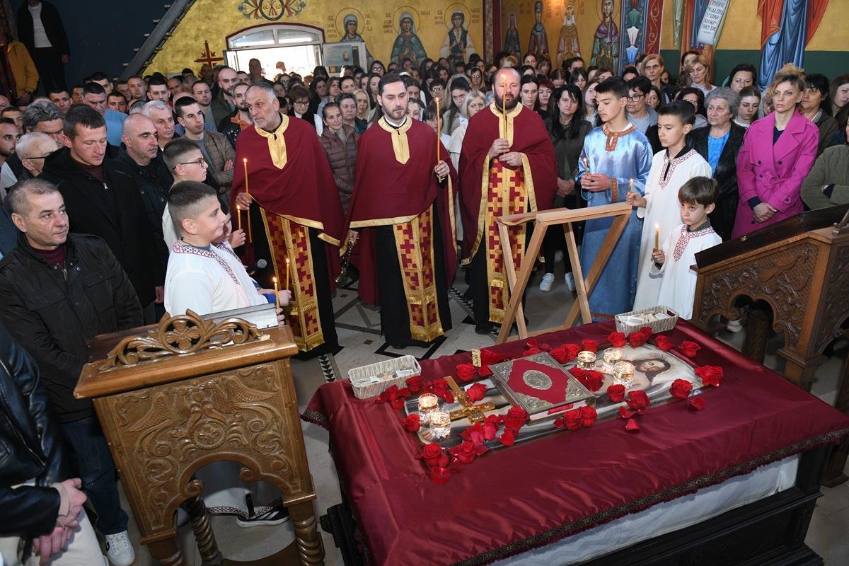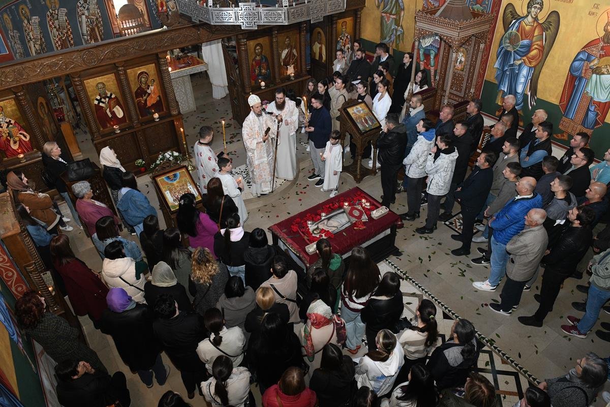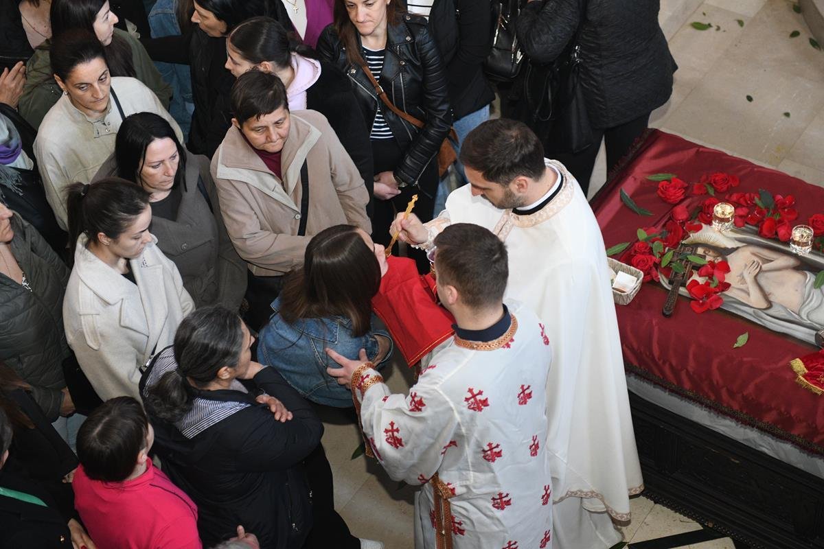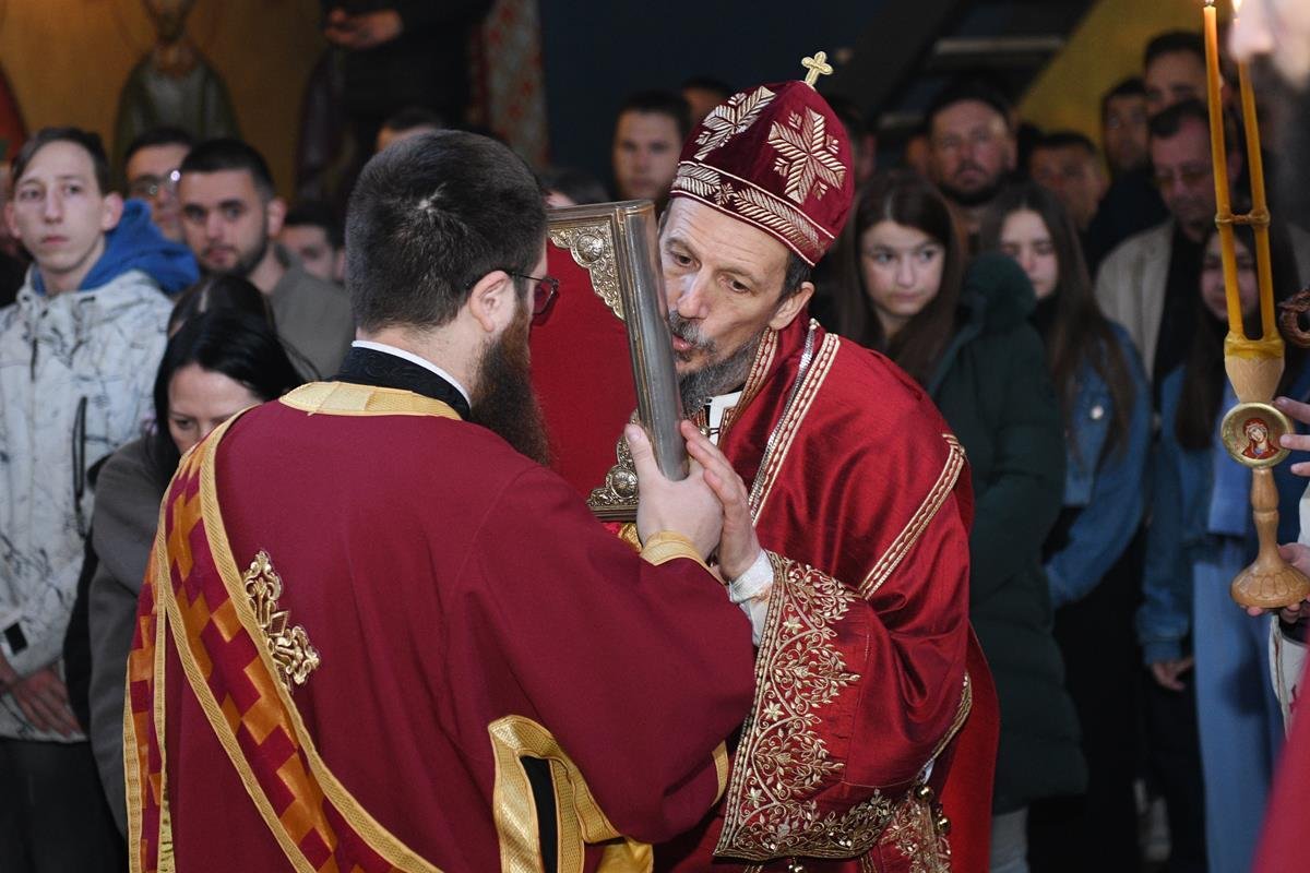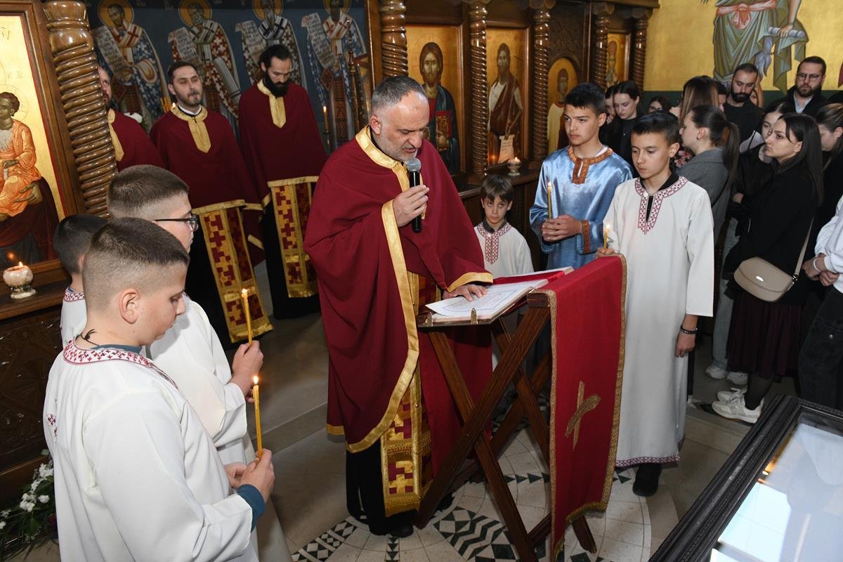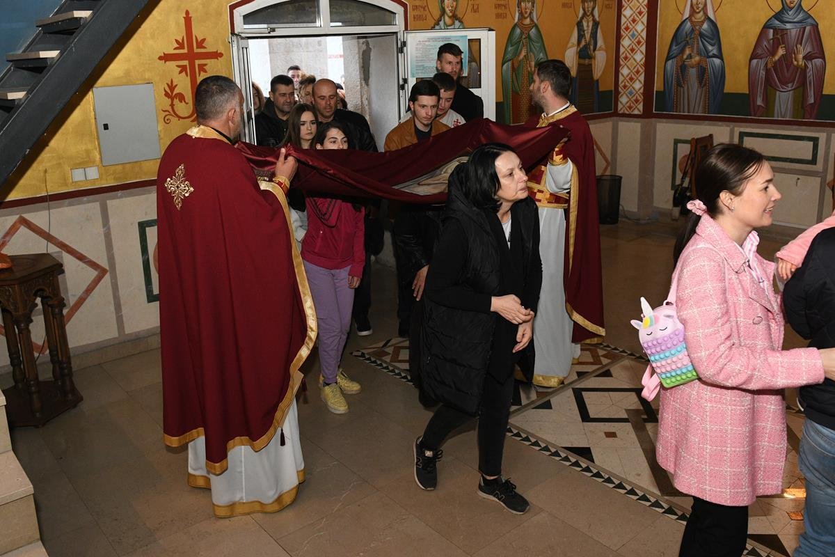 Бесједећи по Јеванђељу, Владика Димитрије нагласио је да за спасење човјека треба читав Бог и читав човјек. Све што људи раде, све што је добро, треба да чине читавим бићем и онда ће Бог Духом прострујати кроз човјеково биће и они ће се осјетити као Божији људи. Потребан је читав човјек, јер је такав Бог који се људима предао до краја. Бог је човјека створио као дијете љубави и увео га у живот Свете Тројице, а након што је човјек отпао од те љубави, Он шаље Сина Јединородног, да би показао човјеку колико га воли, како је неодступан од своје љубави и како би опет потврдио своју љубав, само ако човјек жели да се косне те љубави. Тајна Велике суботе, окупљање око живоносног Христовог гроба, је тајна хришћанског живота. Свијет иде, људи траже испуњење у материјалном, у стицању и богатству, а у срцу сваког правог хришћанина обитава Христос. Као положен у гроб, Он само спава тијелом својим, а већ објављује и позива у васкрсење све који су умрли. Када је васкрсао, сишао је у ад и позвао све праведнике од постања свијета, а и данас позива праведне душе, јер је Он живи Бог и више нема таме, нити ичег Њему недоступног.