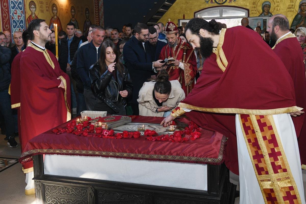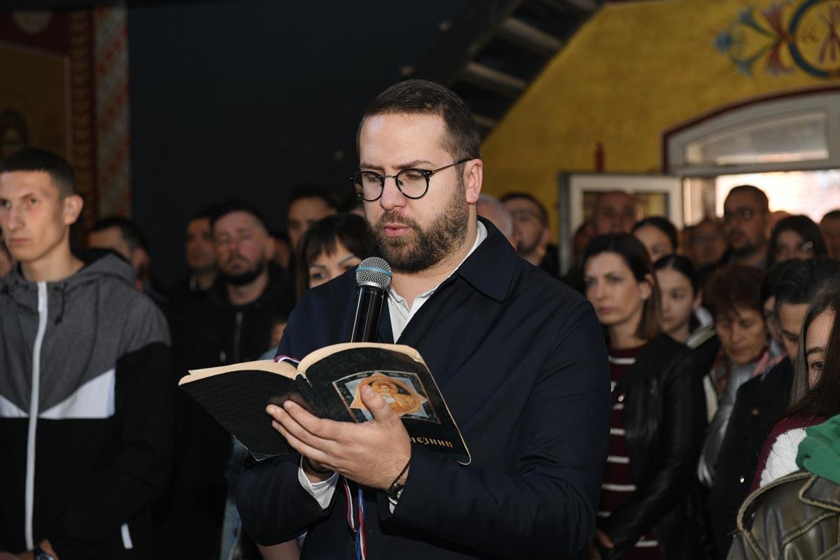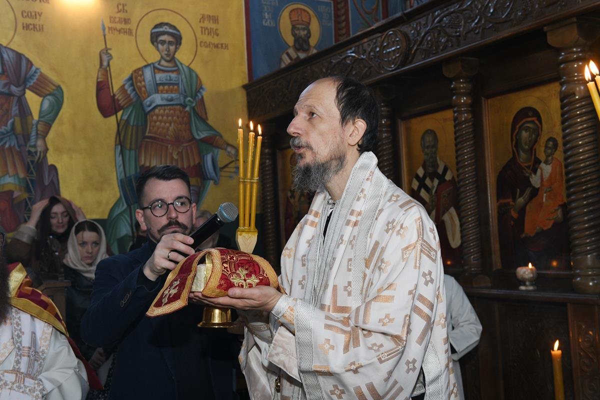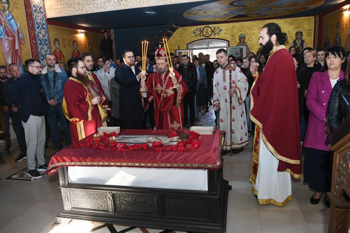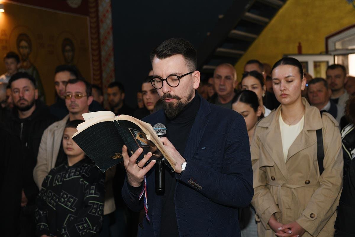 Бесједећи по Јеванђељу, Владика Димитрије нагласио је да за спасење човјека треба читав Бог и читав човјек. Све што људи раде, све што је добро, треба да чине читавим бићем и онда ће Бог Духом прострујати кроз човјеково биће и они ће се осјетити као Божији људи. Потребан је читав човјек, јер је такав Бог који се људима предао до краја. Бог је човјека створио као дијете љубави и увео га у живот Свете Тројице, а након што је човјек отпао од те љубави, Он шаље Сина Јединородног, да би показао човјеку колико га воли, како је неодступан од своје љубави и како би опет потврдио своју љубав, само ако човјек жели да се косне те љубави. Тајна Велике суботе, окупљање око живоносног Христовог гроба, је тајна хришћанског живота. Свијет иде, људи траже испуњење у материјалном, у стицању и богатству, а у срцу сваког правог хришћанина обитава Христос. Као положен у гроб, Он само спава тијелом својим, а већ објављује и позива у васкрсење све који су умрли. Када је васкрсао, сишао је у ад и позвао све праведнике од постања свијета, а и данас позива праведне душе, јер је Он живи Бог и више нема таме, нити ичег Њему недоступног.