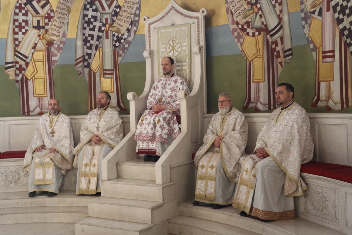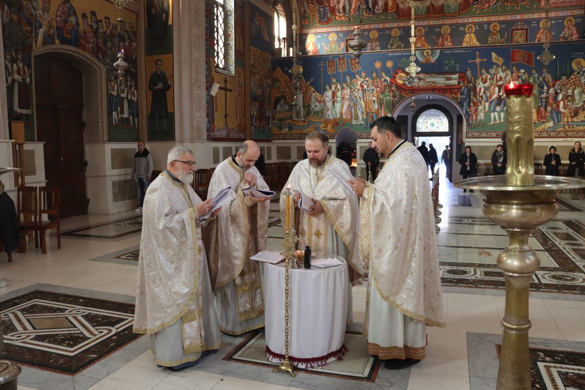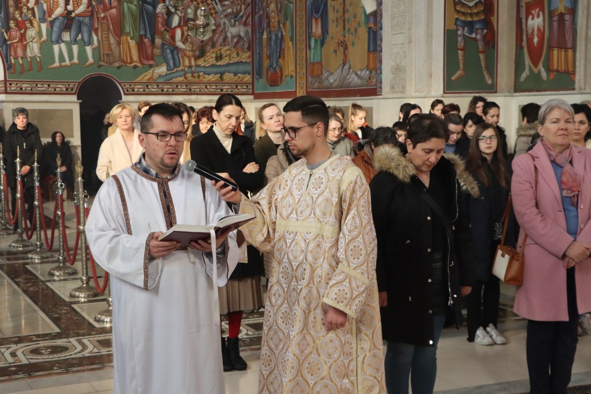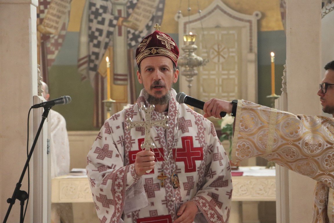 Бесједећи по Јеванђељу, Владика Димитрије појаснио је да Црква Божија има силу и моћ да се моли за живе и мртве, за зле и добре, за оне у свјетлости и оне у тами. Данашња субота Великих задушница у Цркви је посвећена молитви за ближње и молитви за покојне, јер је Христос, Свеиспуњавајући, дотакао и ад, и земљу, и небеса, подаривши Цркви силу молитве. Припремајући се за Васкрс, Црква на пут према Васкрсу не полази без упокојених, који су пред Богом живи, већ их приноси у молитви, како би Бог и њима и вјерницима који се моле отпустио гријехе, препознајући их све заједно као своје ученике, по љубави коју имају међу собом.