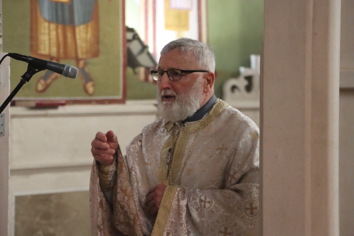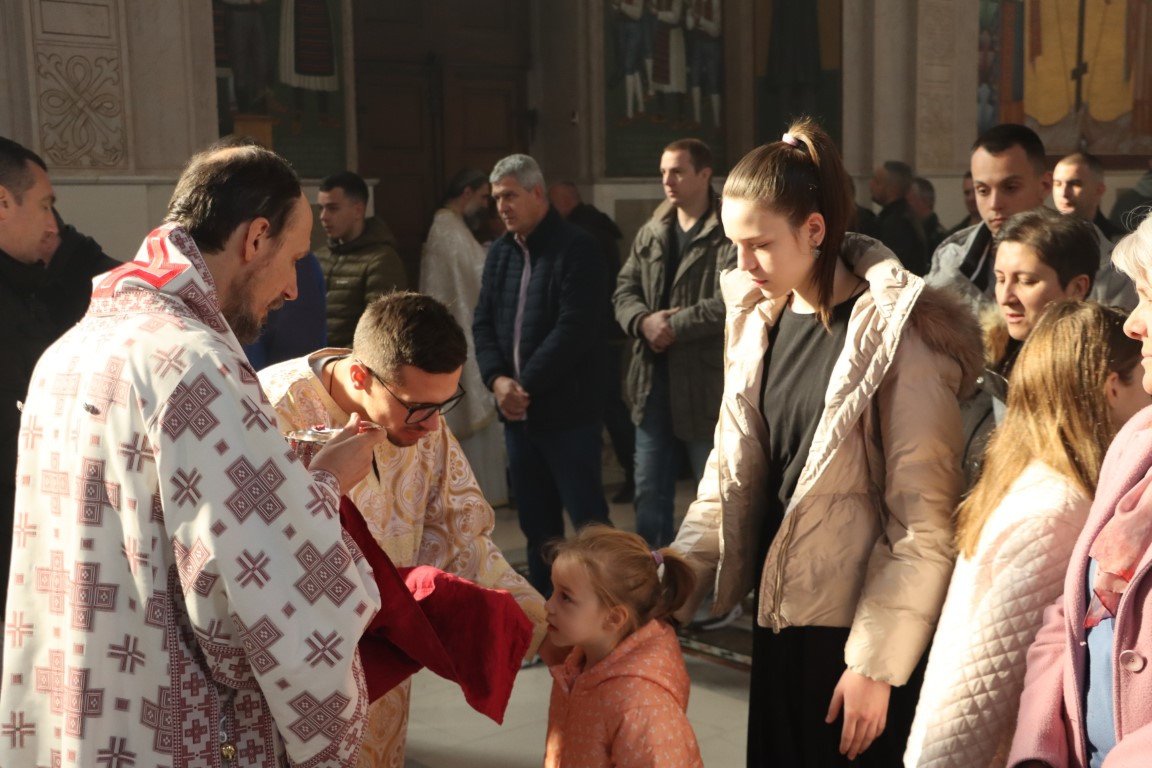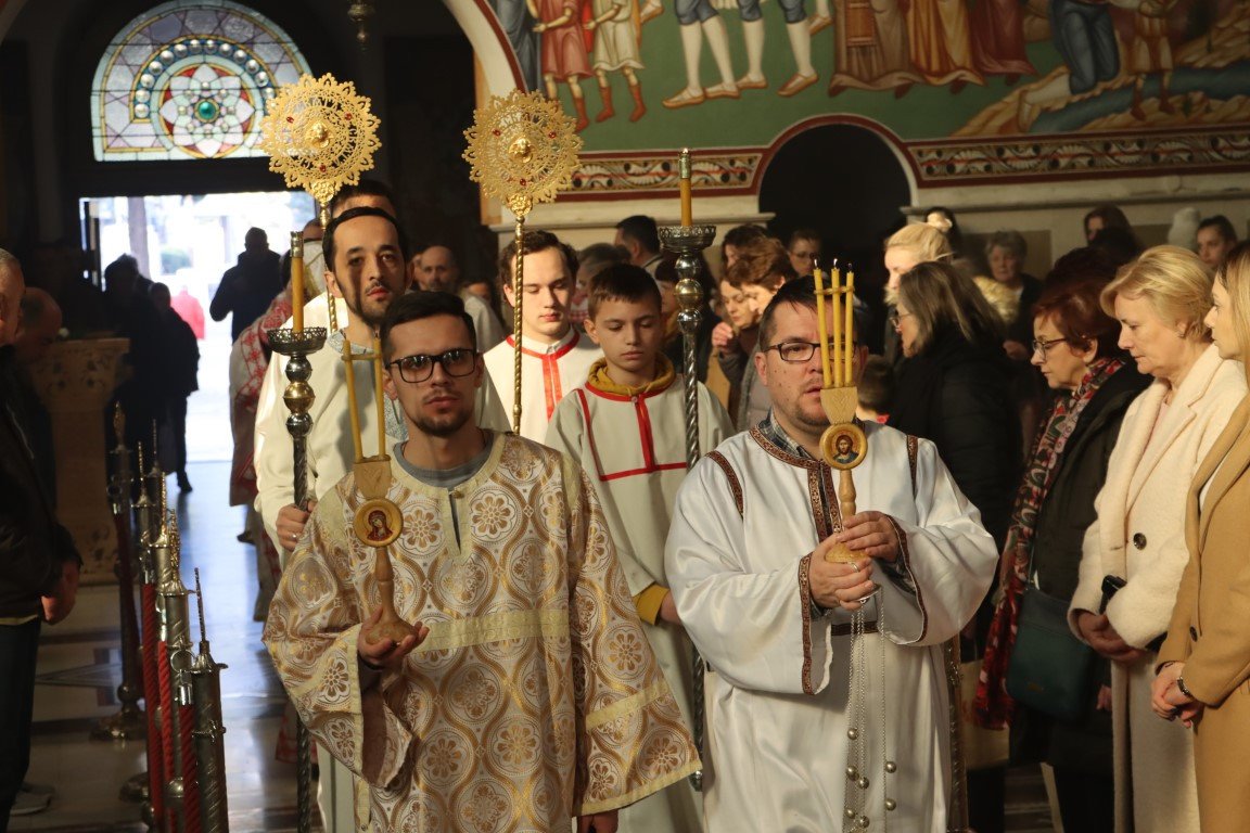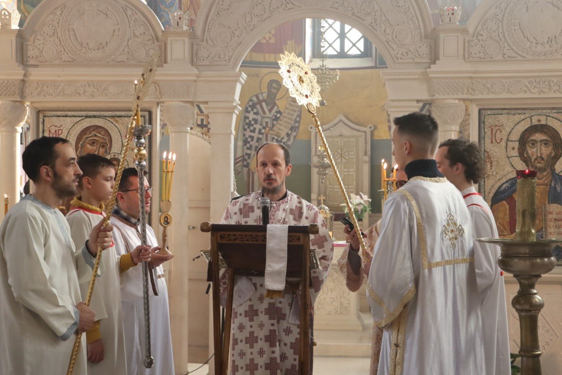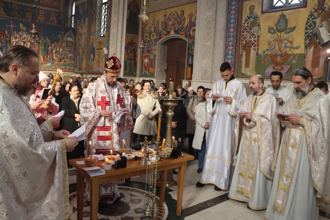 Бесједећи по Јеванђељу, Владика Димитрије појаснио је да Црква Божија има силу и моћ да се моли за живе и мртве, за зле и добре, за оне у свјетлости и оне у тами. Данашња субота Великих задушница у Цркви је посвећена молитви за ближње и молитви за покојне, јер је Христос, Свеиспуњавајући, дотакао и ад, и земљу, и небеса, подаривши Цркви силу молитве. Припремајући се за Васкрс, Црква на пут према Васкрсу не полази без упокојених, који су пред Богом живи, већ их приноси у молитви, како би Бог и њима и вјерницима који се моле отпустио гријехе, препознајући их све заједно као своје ученике, по љубави коју имају међу собом.