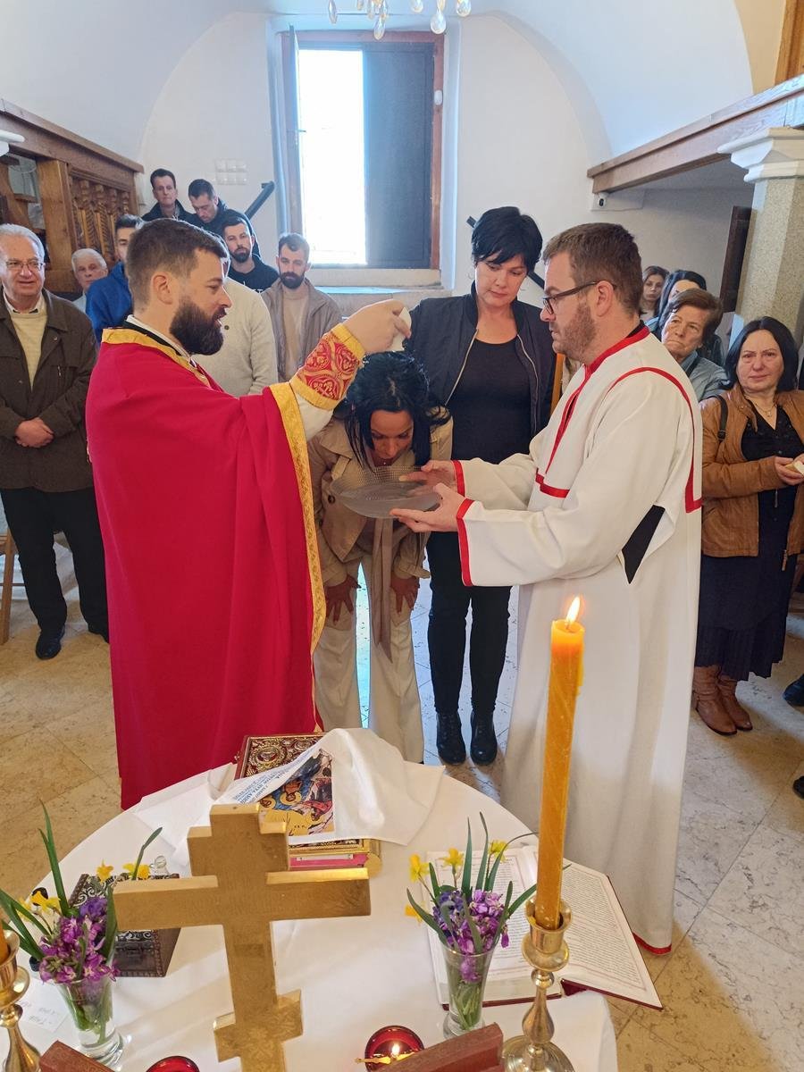 Прве недјеље Великог поста, на празник првог и другог обретења главе Светог Јована Крститеља у препуном Богородичином храму у Мостару Свету Литургију служио је јереј Душко Којић, старјешина Саборног храма Свете Тројице у Мостару.