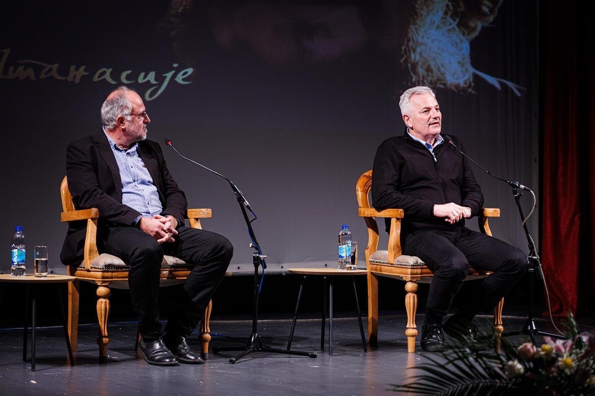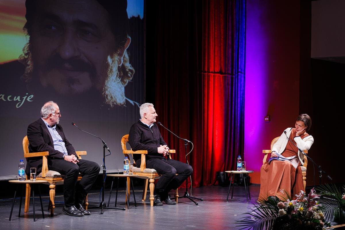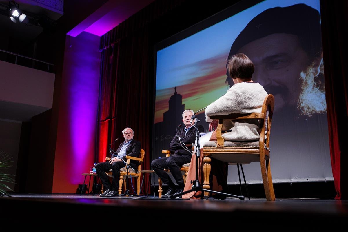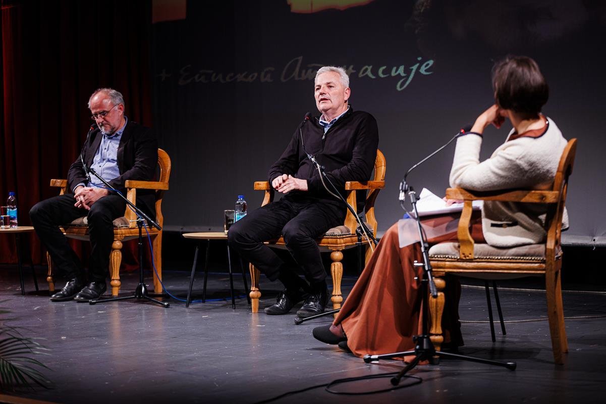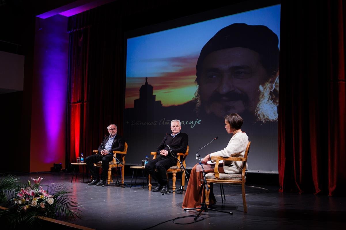 У наставку вечери, у позоришној сали Културног центра, одржана је прва сесија разговора под називом “Обнова Тврдоша – почетак обнове светосавске Херцеговине”. Умјесто оправдано одсутне мр Иване Грујић, директорке Музеја Херцеговине у Требињу, говорнике и госте поздравила је др Ведрана Авдаловић, која је била свједок археолошких истраживања и учесник обнове Тврдоша. Најприје је прочитано обраћање мр Иване Грујић, а затим приказано обраћање проф. др Љубише Фолића, који није био у прилици да допутује у Требиње. Некадашњи студенти на стручној пракси у Требињу, а данас угледни научници доц. др Дејан Радичевић и др Дејан Булић подјелили су с присутном публиком сјећања на студентске дане и вријеме проведено уз Владику Атанасија.