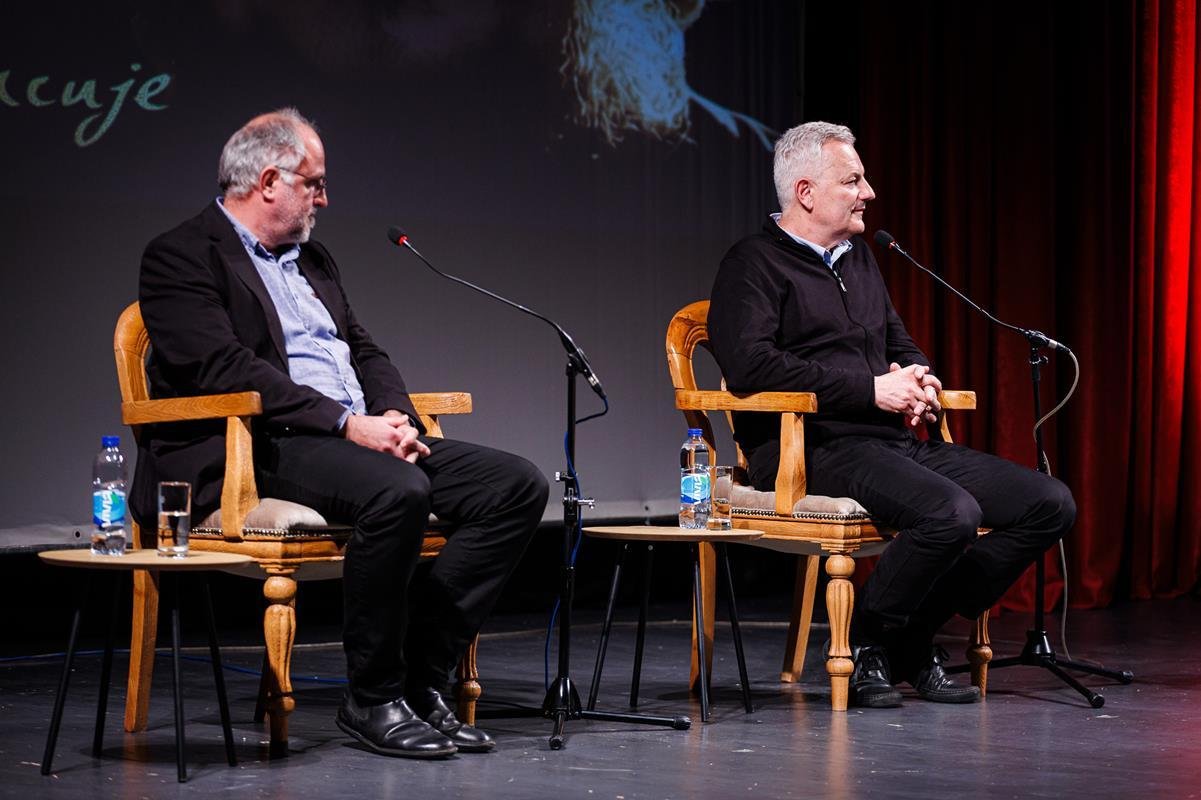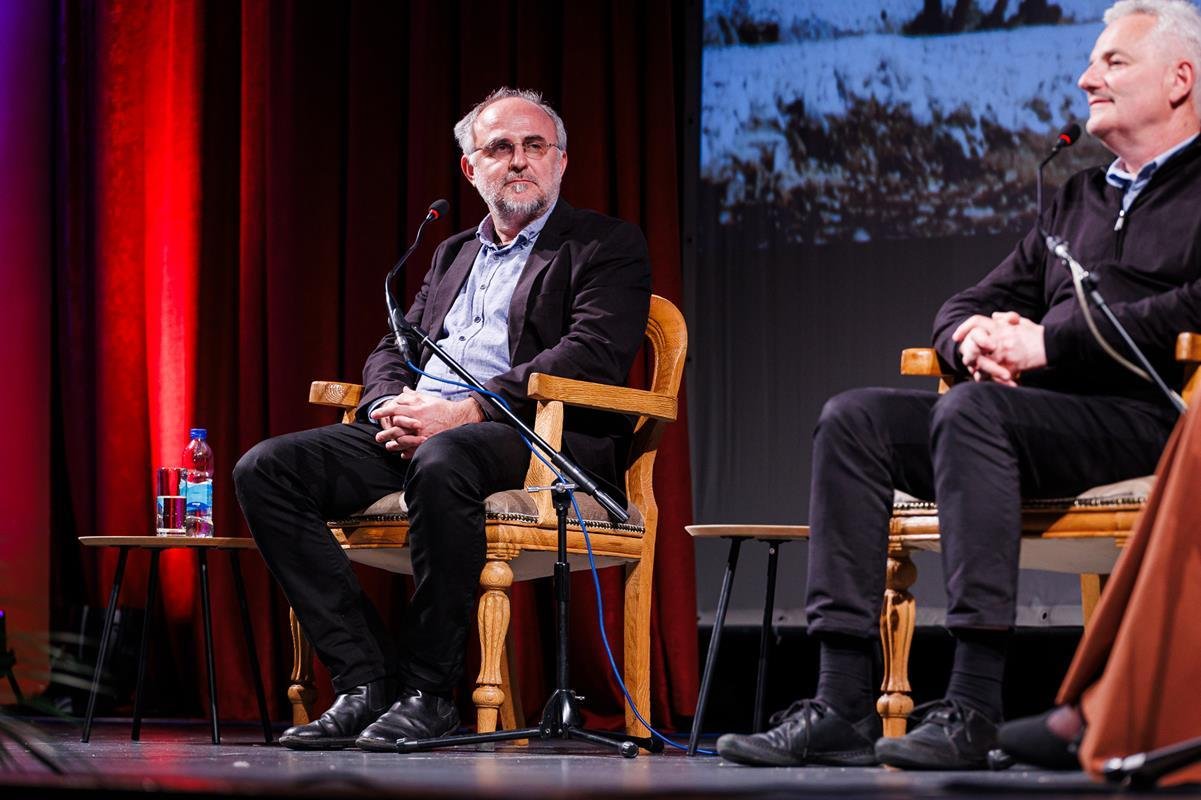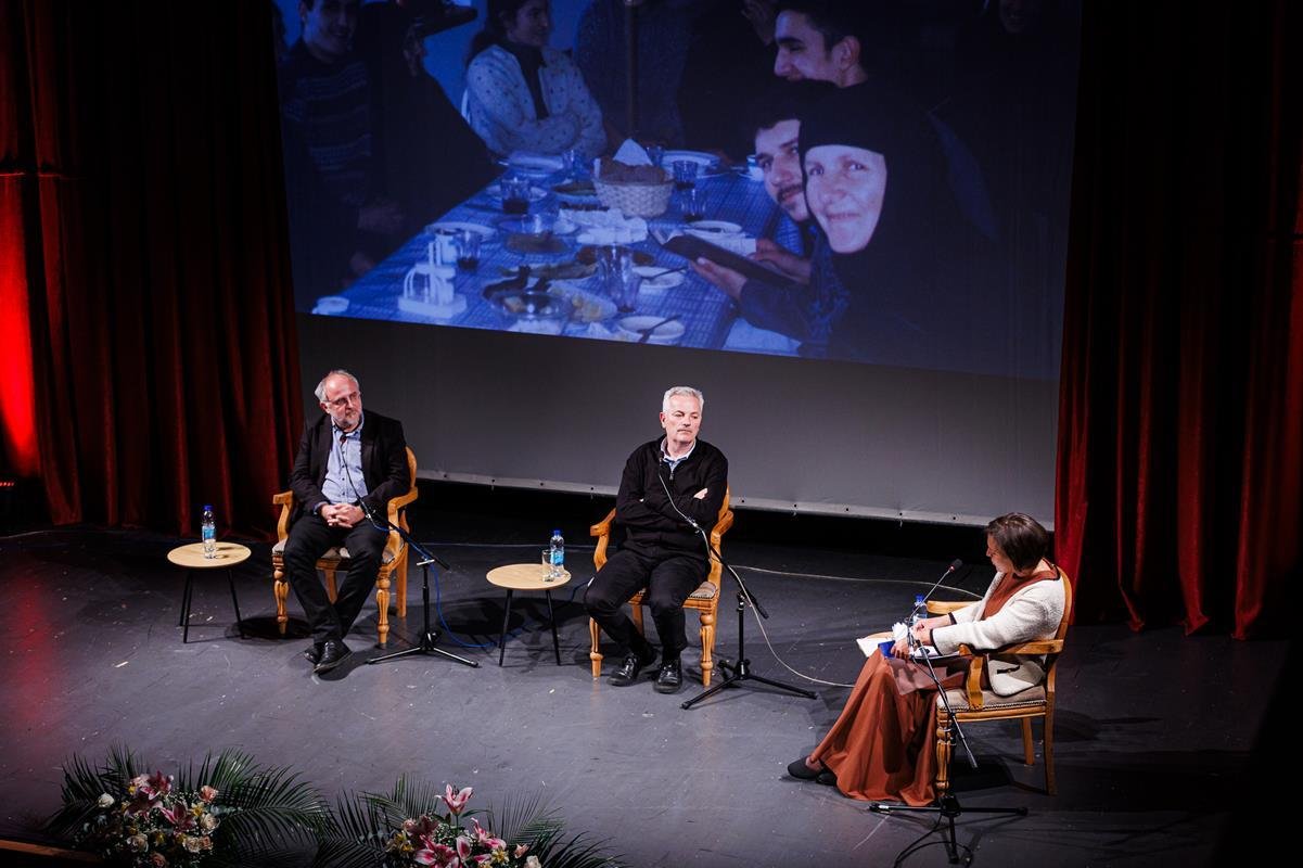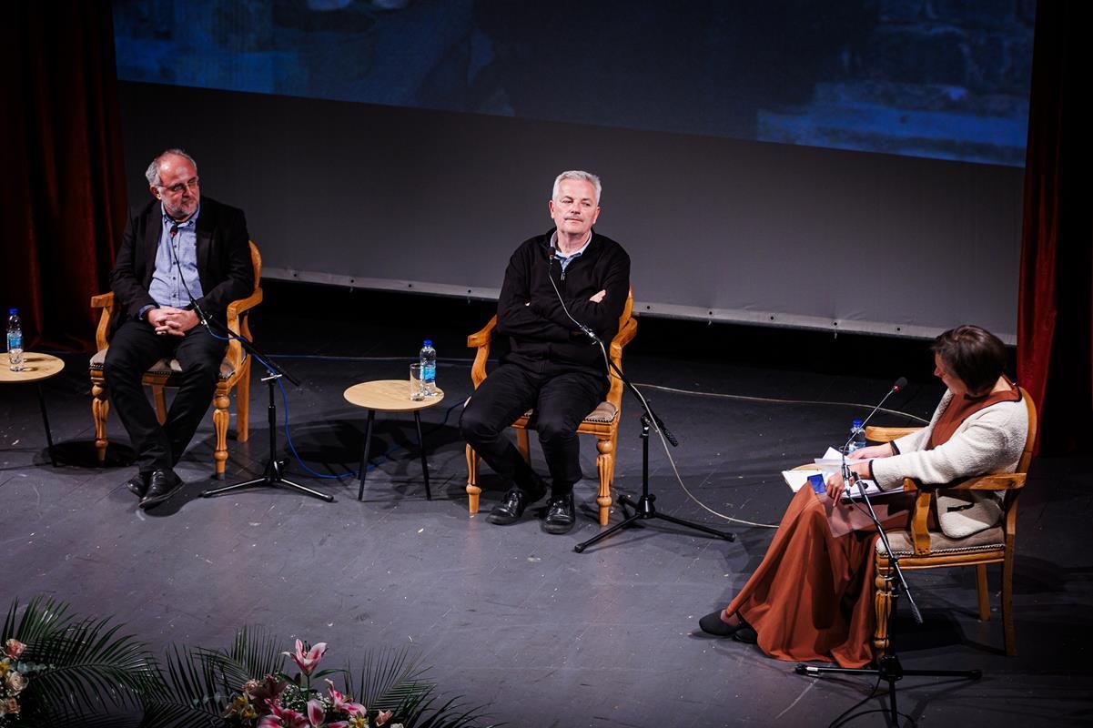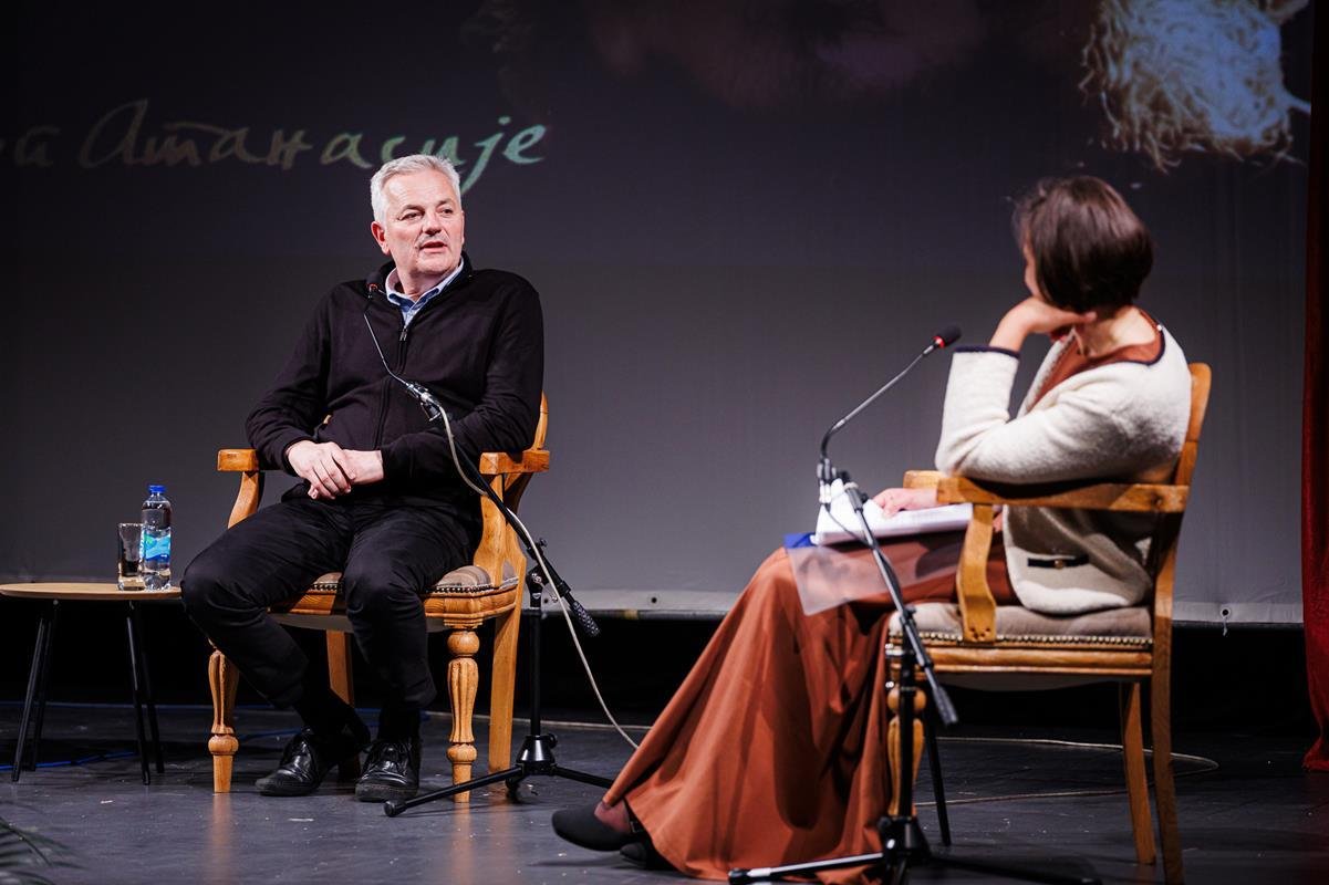 У наставку вечери, у позоришној сали Културног центра, одржана је прва сесија разговора под називом “Обнова Тврдоша – почетак обнове светосавске Херцеговине”. Умјесто оправдано одсутне мр Иване Грујић, директорке Музеја Херцеговине у Требињу, говорнике и госте поздравила је др Ведрана Авдаловић, која је била свједок археолошких истраживања и учесник обнове Тврдоша. Најприје је прочитано обраћање мр Иване Грујић, а затим приказано обраћање проф. др Љубише Фолића, који није био у прилици да допутује у Требиње. Некадашњи студенти на стручној пракси у Требињу, а данас угледни научници доц. др Дејан Радичевић и др Дејан Булић подјелили су с присутном публиком сјећања на студентске дане и вријеме проведено уз Владику Атанасија.