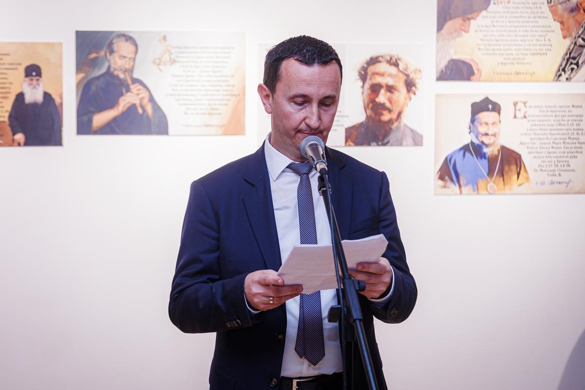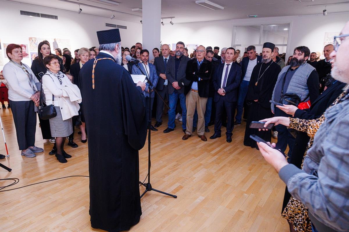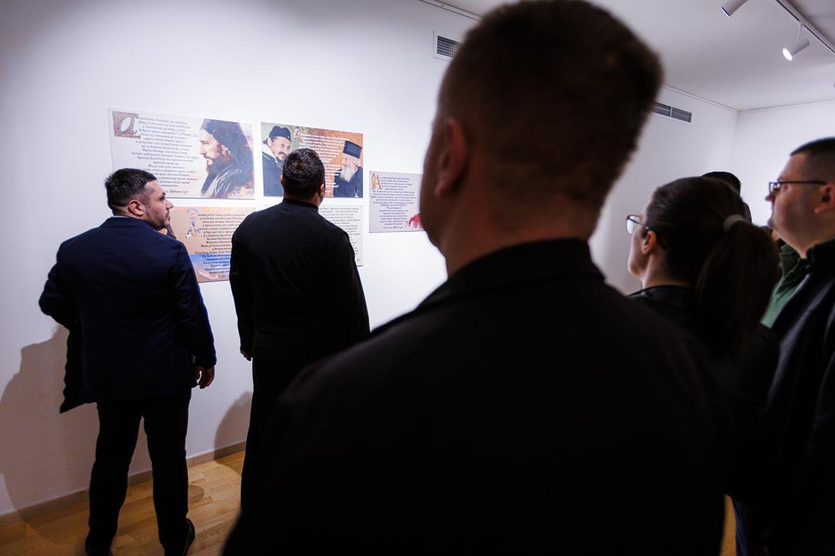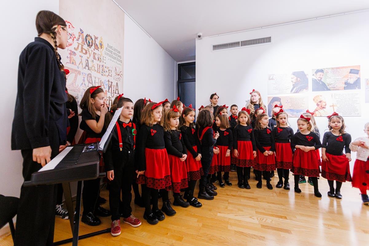 док је о изложби говорио аутор, јеромонах Теофил, настојатељ Манастира Дужи. На отварању изложбе фотографија наступио је дјечији хор “Бубамарац”.