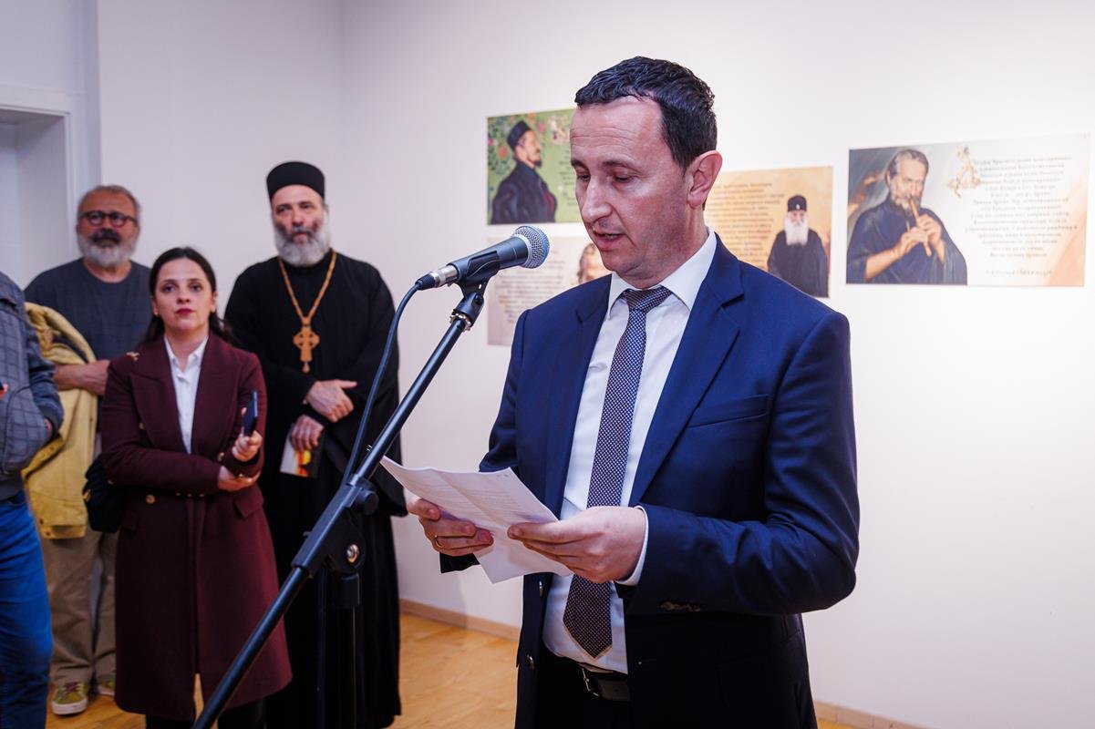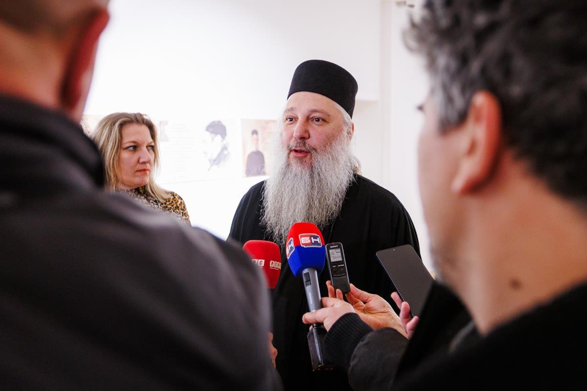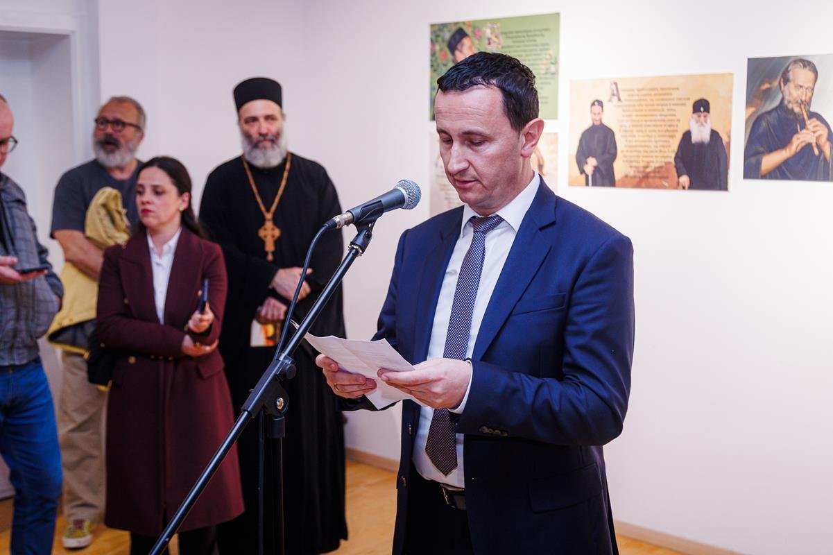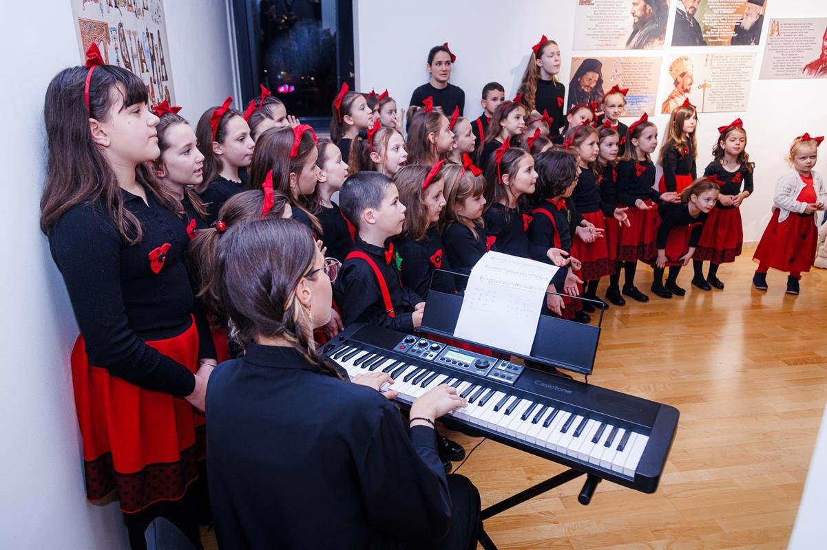 док је о изложби говорио аутор, јеромонах Теофил, настојатељ Манастира Дужи. На отварању изложбе фотографија наступио је дјечији хор “Бубамарац”.