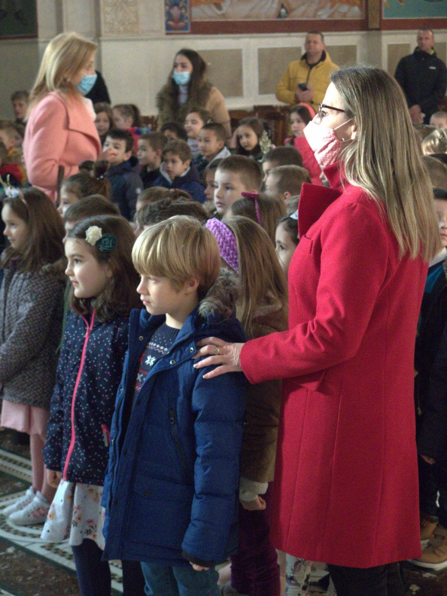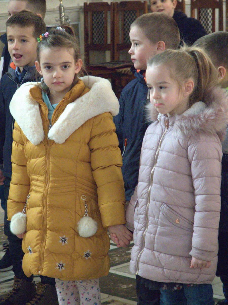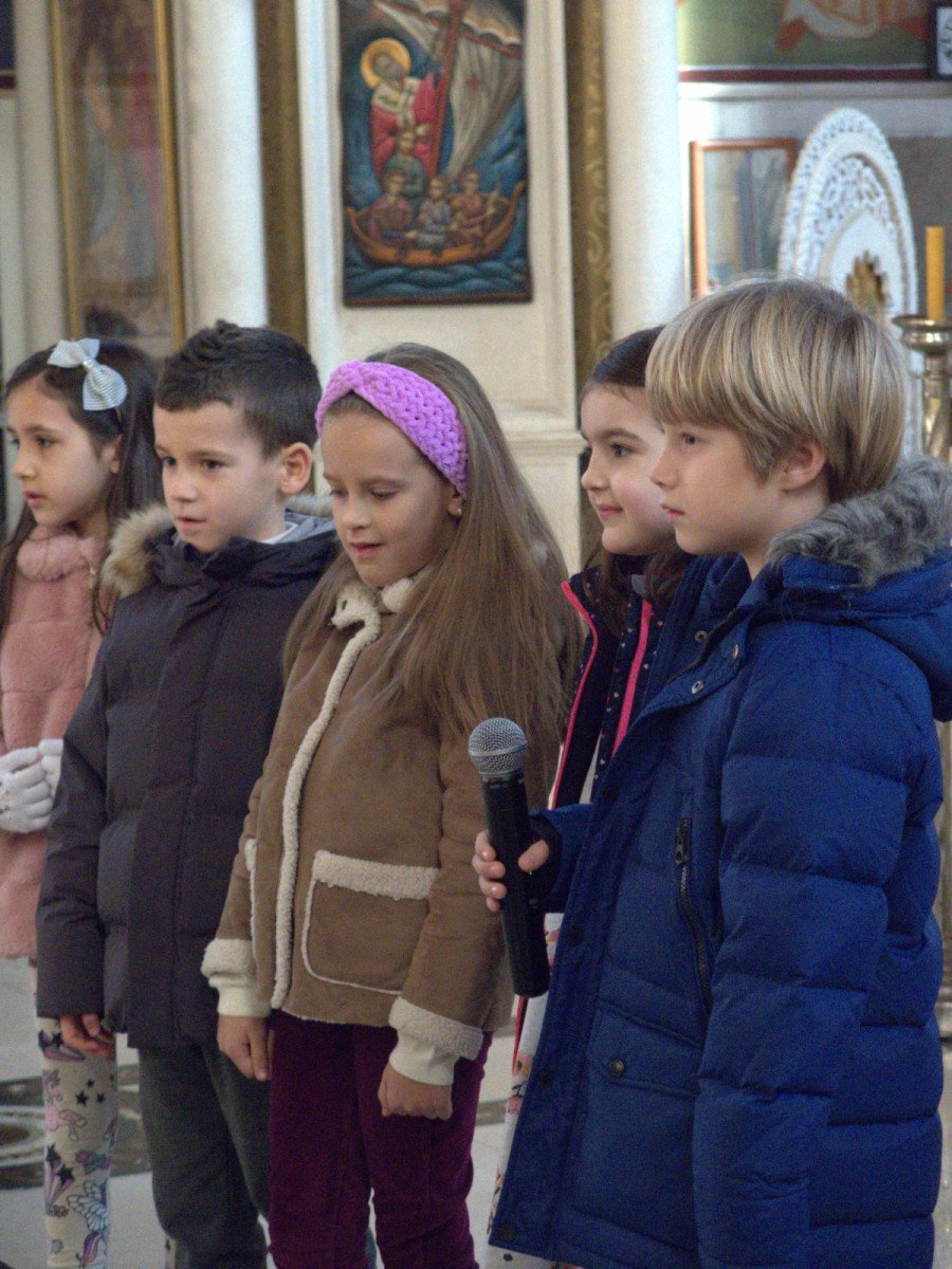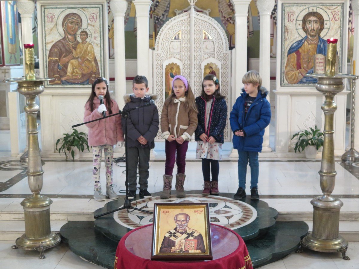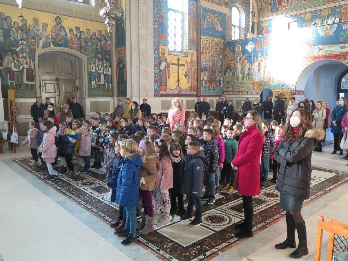 Јутрос су ученици првог разреда ОШ ,, Вук Караџић“ у пратњи својих учитељица посјетили Саборни храм у Требињу. Старјешина храма, о. Младен Жуловић, им је пожелио добродошлицу и поучио их причом о св. Николају. Након тога су најмлађи ђаци са амвона низали пјесмице и рецитације о најдражем дјечијем светитељу које величају доброту, милосрђе и љубав. По завршетку своје кратке приредбе окитили су први бадњак украсима које су брижљиво припремили у школи. Да претпразничка радост буде потпуна побринуо се о. Младен, припремивши никољданске слаткише.