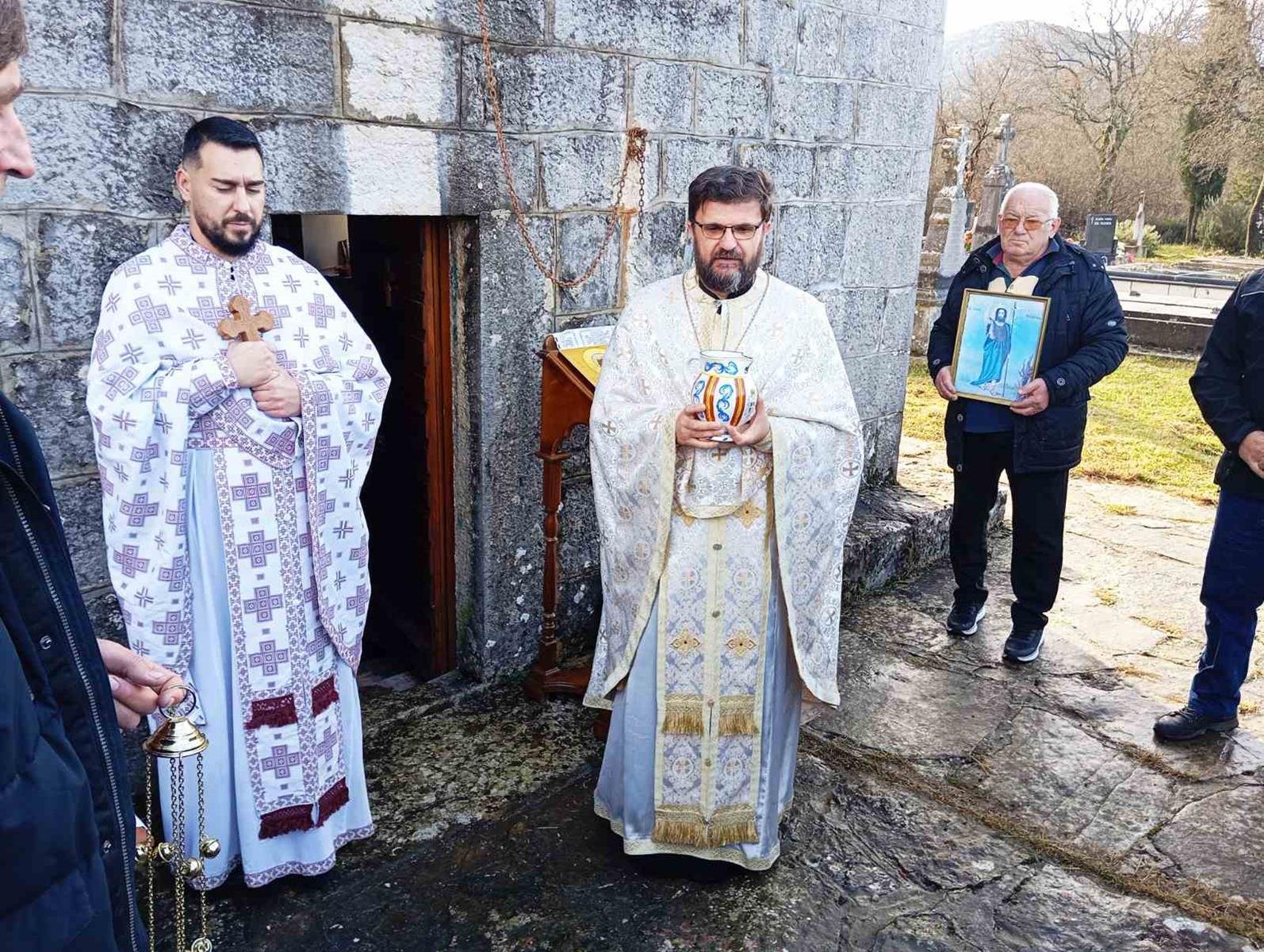 Свету Литургију служио је јереј Душко Шаровић уз саслужење надлежног пароха оца Бориса Бандуке. У току Литургије извршена је литија око храма и ломљење славског колача.