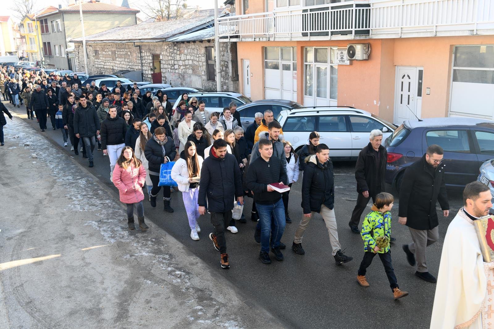 У својој пастирској бесједи јереј Славко је поучио вјерни народ који је испунио Храм до последњег мјеста рекавши да је Господ показао крајње смирење крстивши се у ријеци Јордан те да је тако освештао сву природу вода.