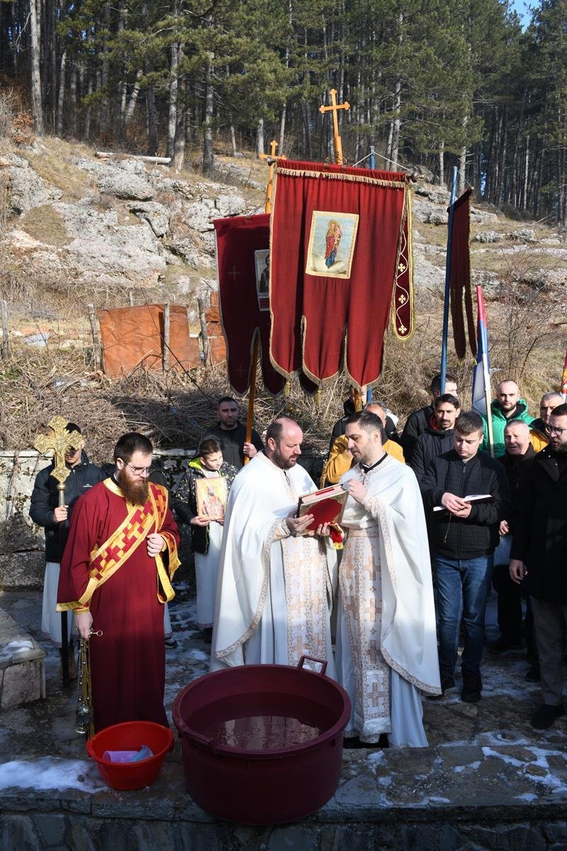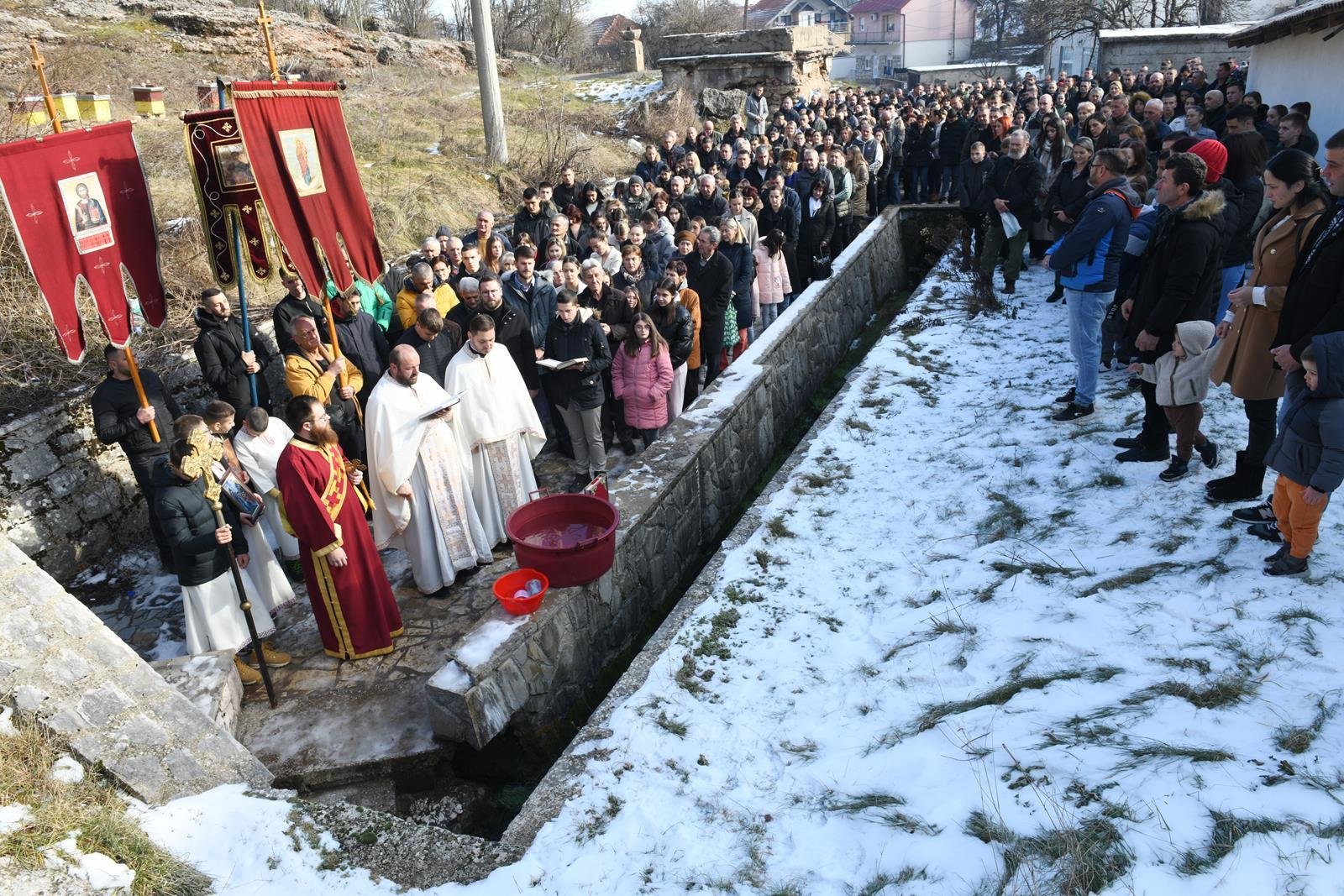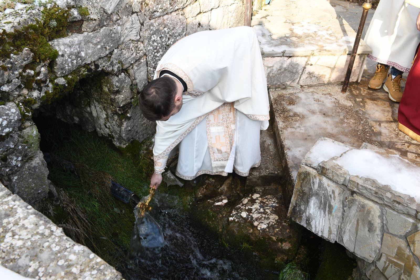 Након завршене Литургије вјерни народ предвођен свештенством у литији кренуо је ка оближњем извору Једреш гдје је извршено Велико освећење воде.