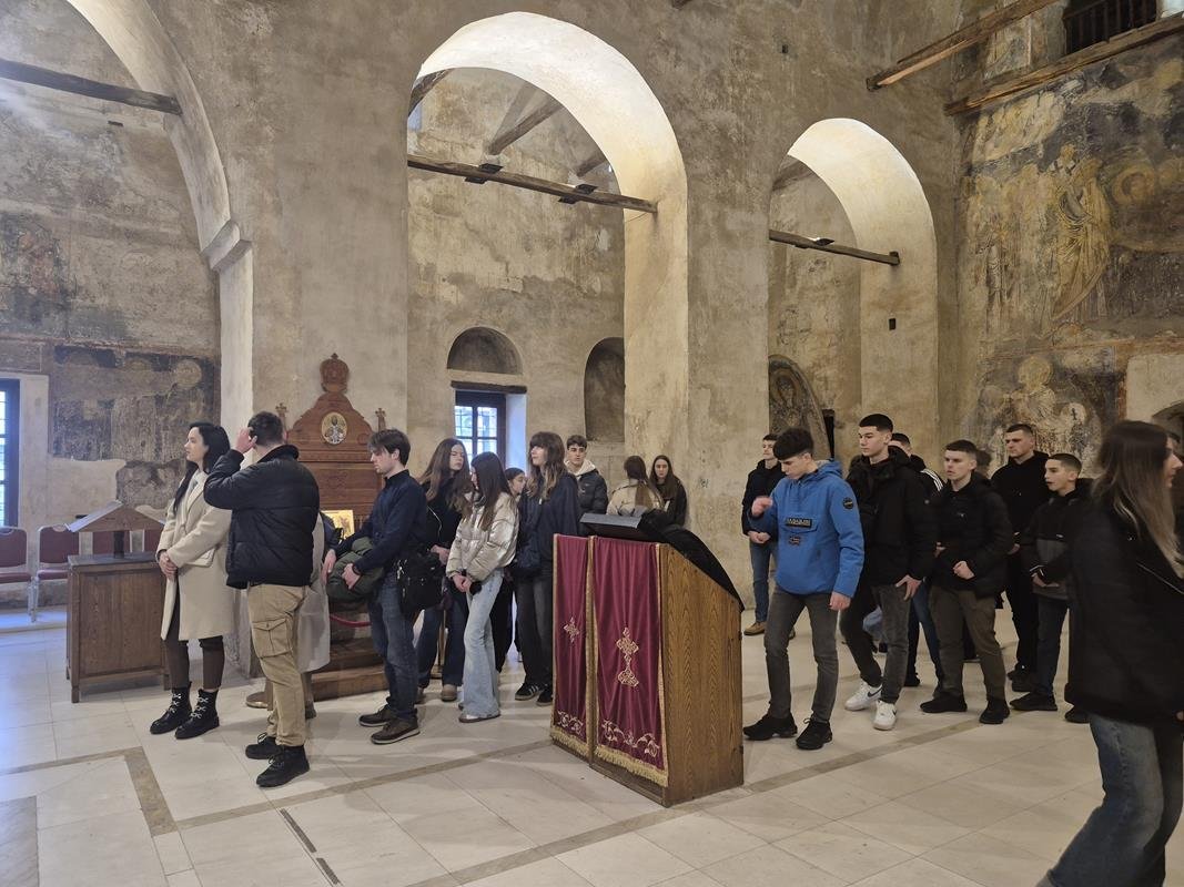 Група је посјетила и Манастир Богородица Перивлепта. Овај манастир је једини од манастира који није претрпио страдања за вријеме Османлија и у њему су дуго времена чуване мошти Светог Климента Охридског. У овом манстиру служио је и Свети Владика Николај Велимировић за вријеме своје епископске службе у Охриду. Такође, у манатиру се чува звоно чији је донатор био Михајло Пупин 1923. године о чему свједочи и једна спомен плоча у манастиру.