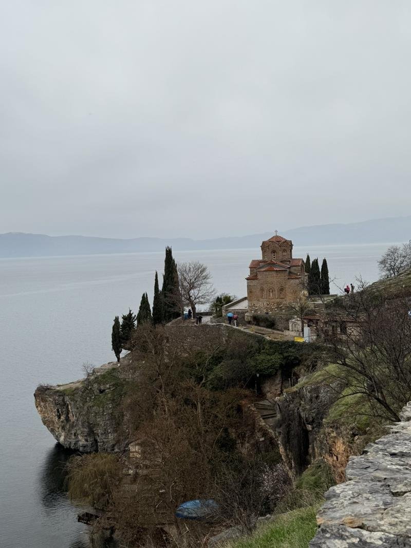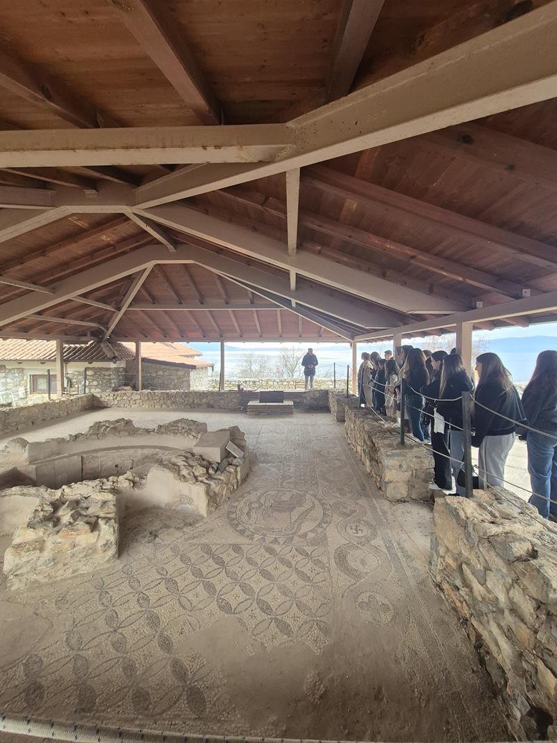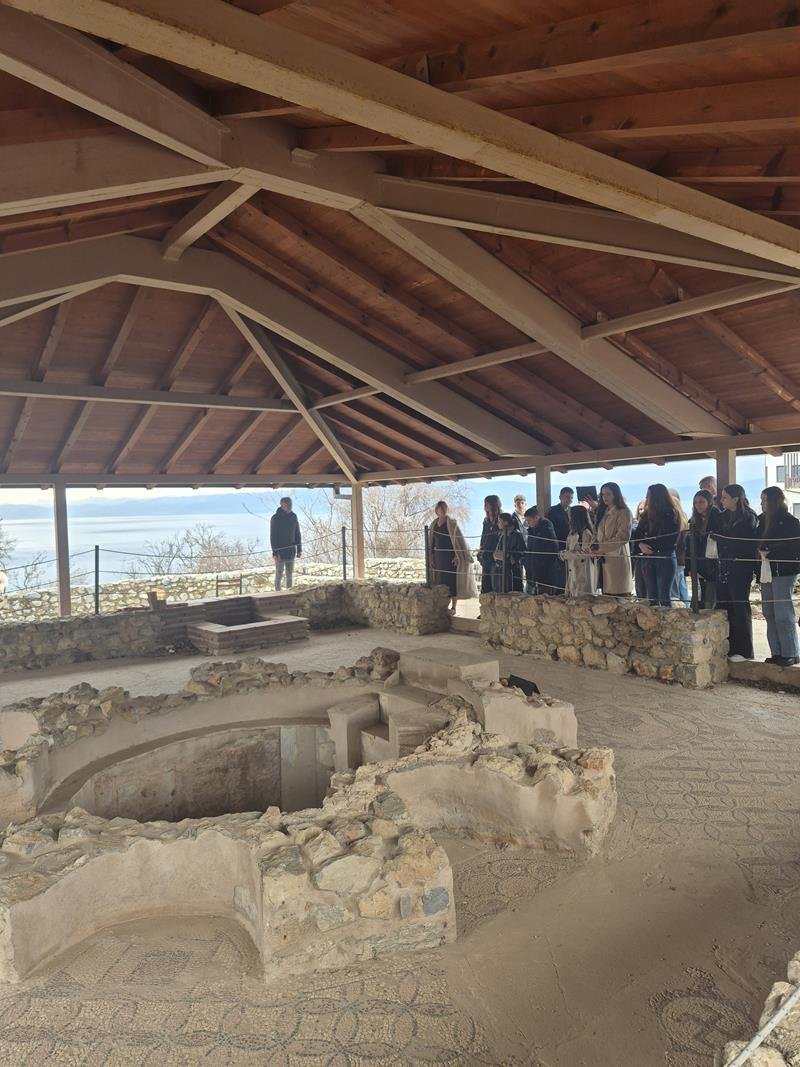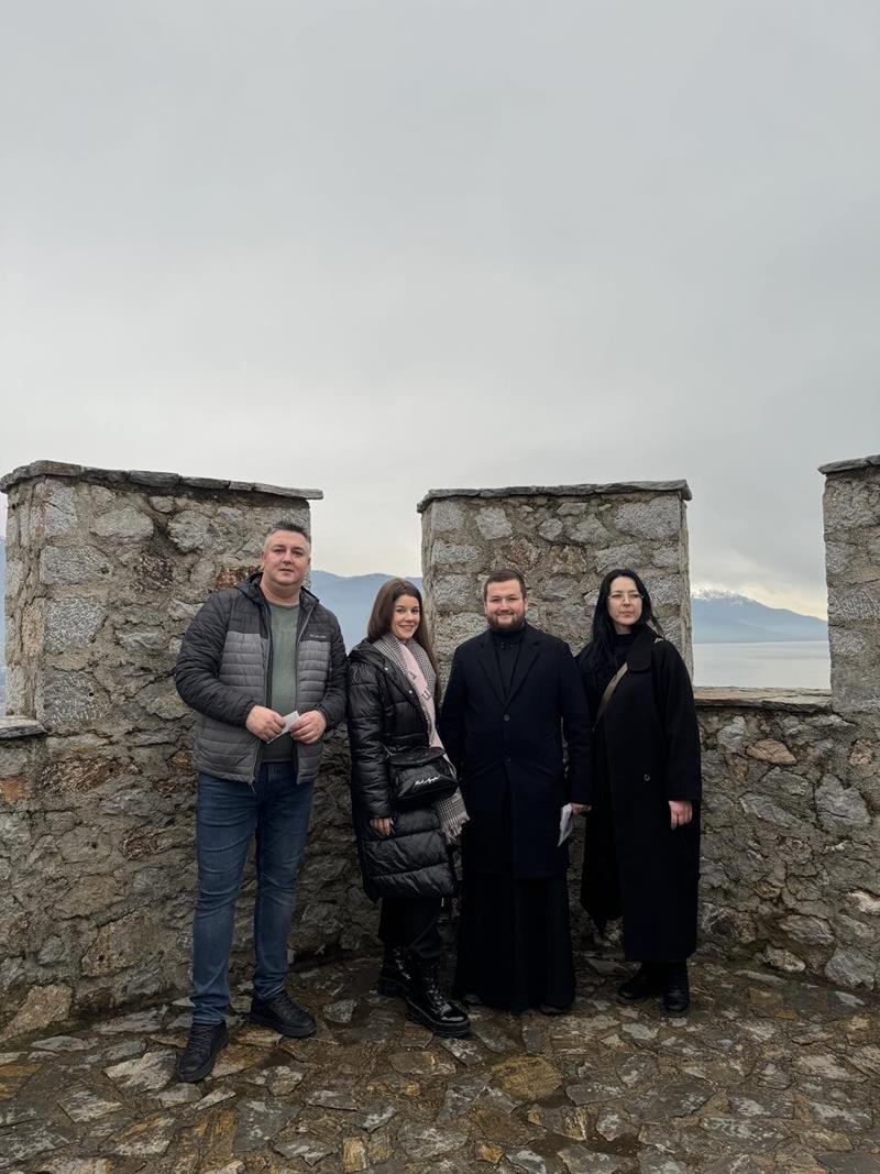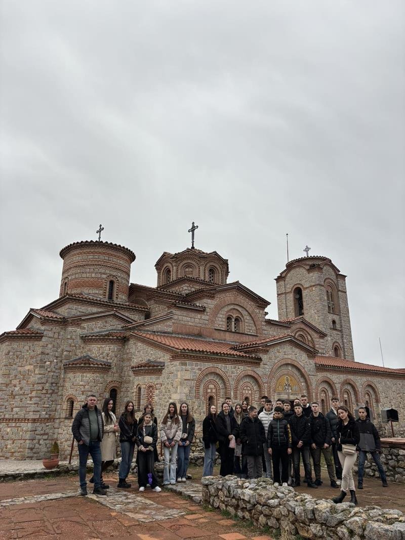 Група је у наставку обишла и Храм Светог Климента и Пантелејмона који је реплика старог храма из 9. вијека који је саградио Свети Климент Охридски и у њему био сахрањен. Вјерује се да је управо у овом манастиру Свети Климент учио своје монахе да преписују Свето Писмо на старословенски језик, ћириличним писмом. Овај храм претрпио је велика страдања за вријеме османског периода, био претворен у џамију, а данас је обновљен и у њему се чувају светитељеве мошти. Такође, у близини ове светиње налази се крстионица из 4. вијека и остаци античког града са чијом историјом је ученике упознао и стручни водич.