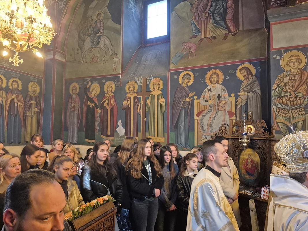На празник Сретење, 15. фебруара, ученици су у пратњи својих предавача присуствовали Светој Архијереској Литурији у Храму Светог Николе у Охриду.