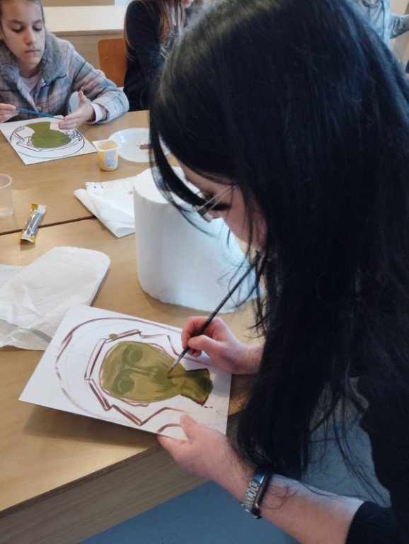 Услиједило је осликавање иконе Пресвете Богородице, а материјал за рад ђацима су срдачно обезбиједиле црквене општине Благај и Чапљина. Босиљка се са љубављу и посвећено потрудила да овакво дружење свима остане у сјећању и да својем дому ђаци понесу права мала ремек дјела.