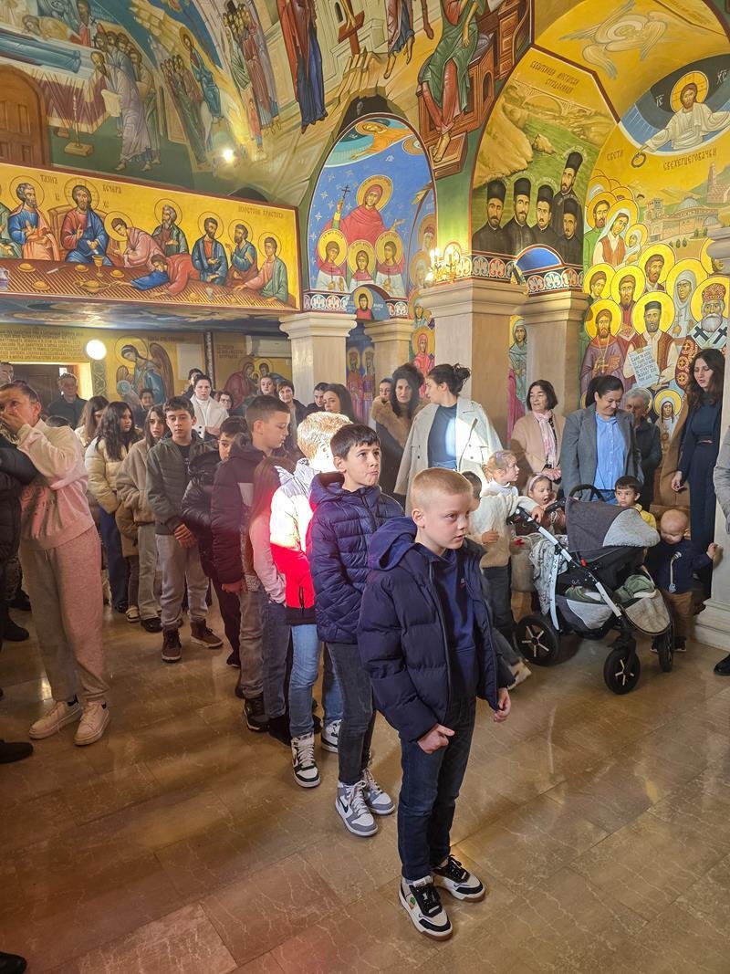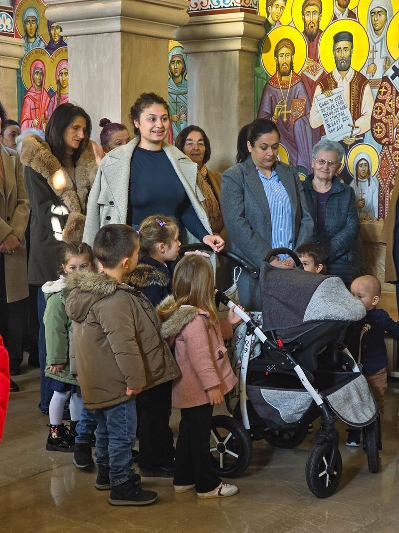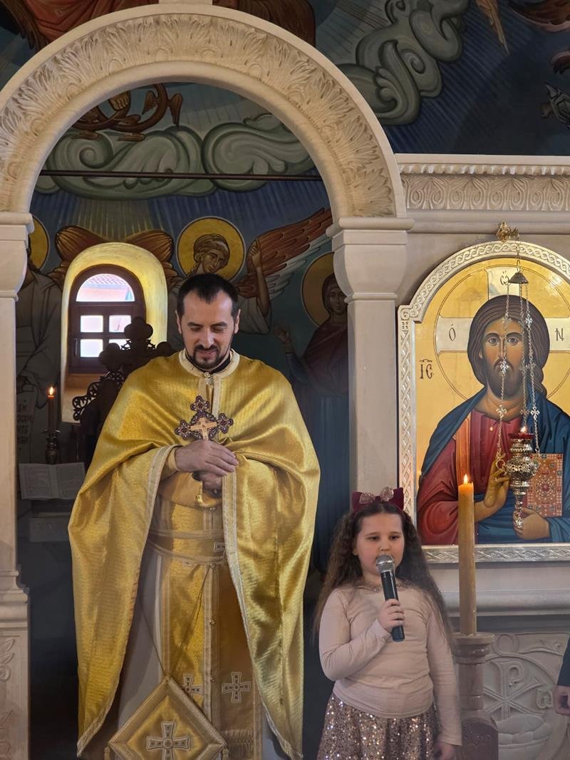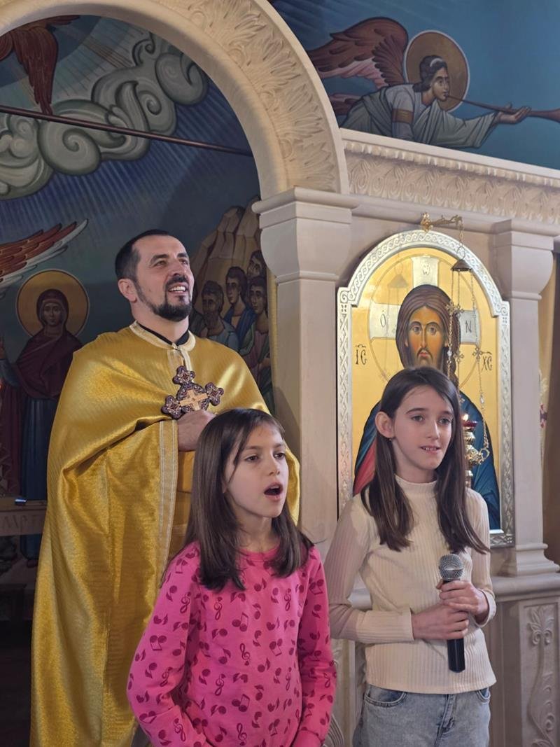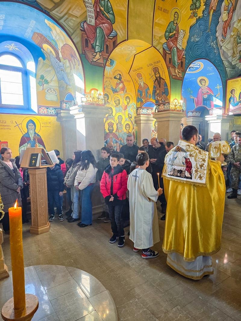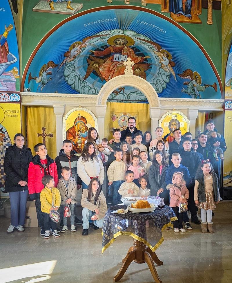 Након Свете литургије, заједно са ученицима и вјероучитељем Марком Вучинићем, преломљен је славски колач, уз појање тропара Светом Сави. У наставку програма, подијељени су пакетићи, а дјеца су рецитовала стихове у част Светог Саве учитеља и светитеља који нас је сабрао.