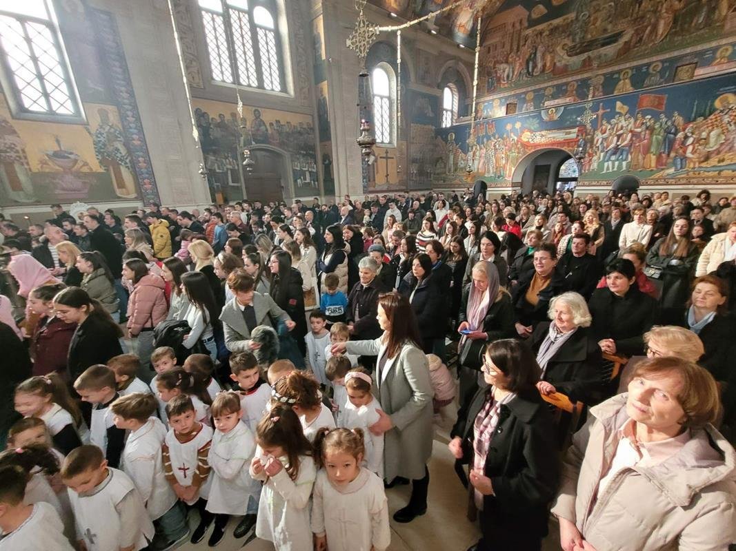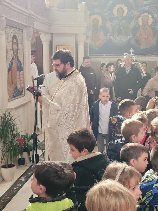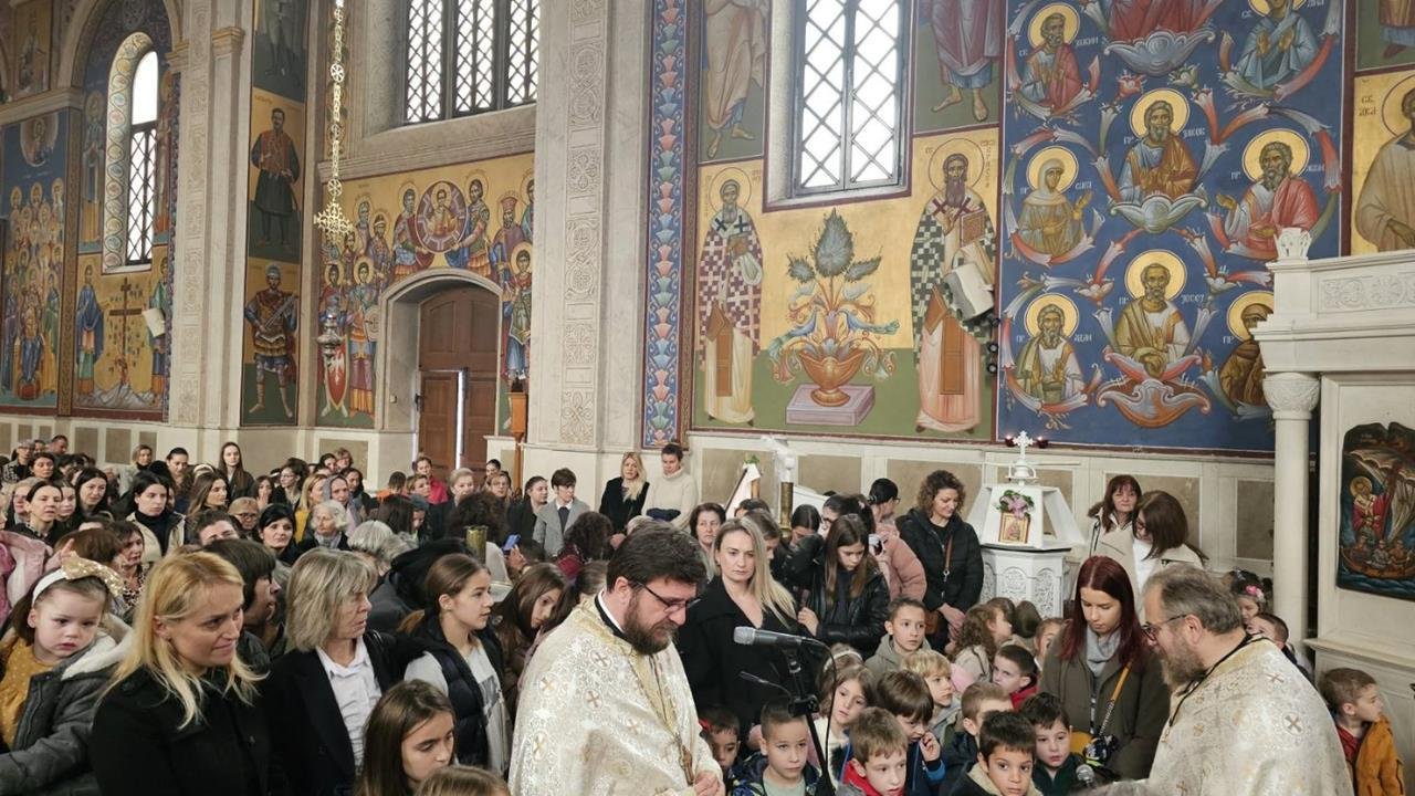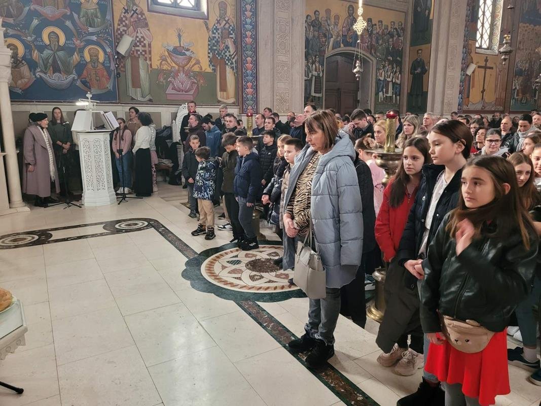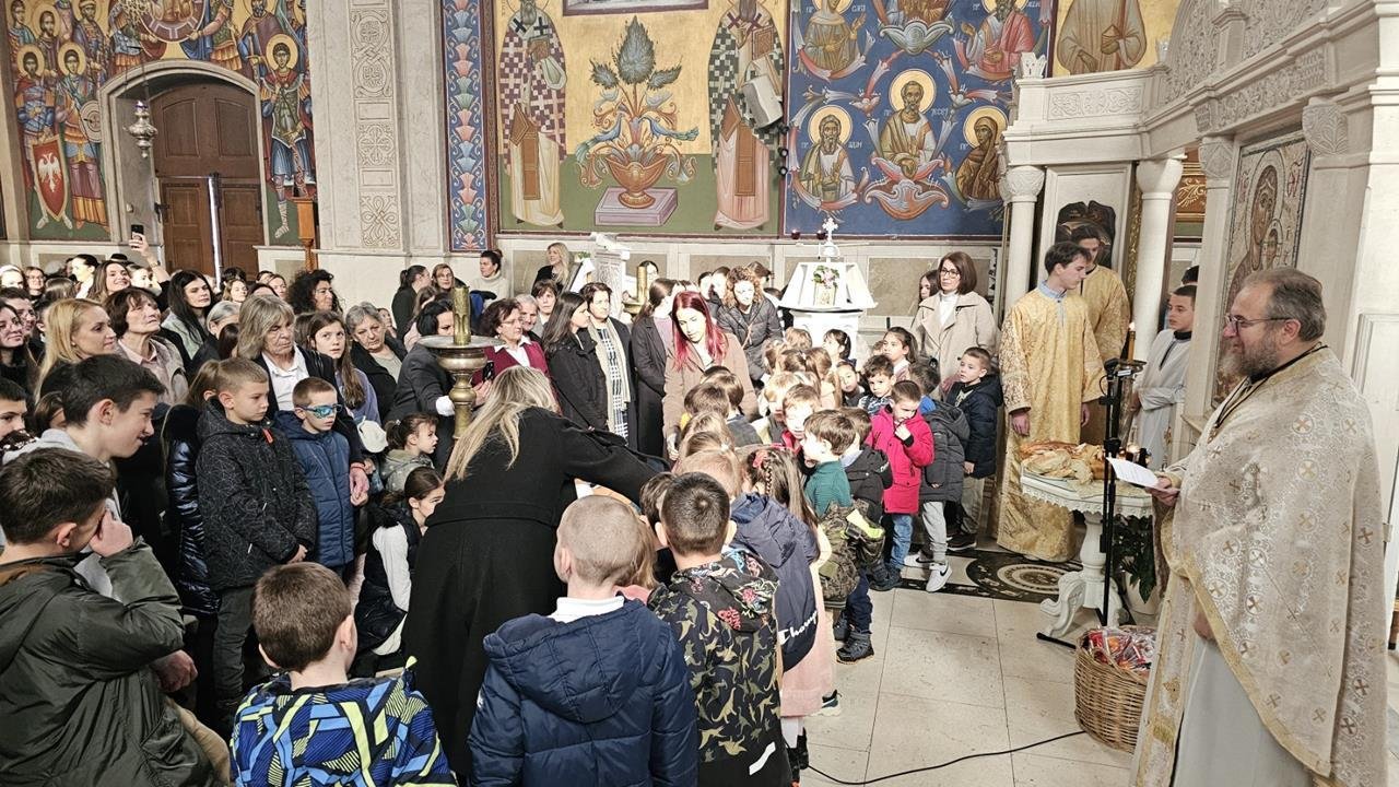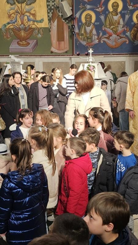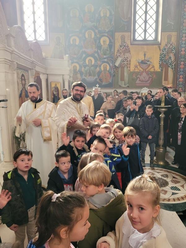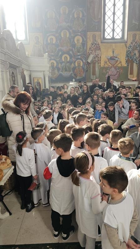 У испуњеном храму, нарочито је било примјетно присуство дјеце, међу којима су се истицали најмлађи. Поводом празника Светог Саве, васпитачи су на Литургију допратили дјецу из вртића “Наша радост”, дјечијег клуба “Света Евгенија – царица Милица” и играонице “Цицибан”. Након Причешћа и освећења славског колача дјеца су најприје рецитовала пјесмице у част Светог Саве, а затим су били награђени поклонима, које је припремила Црквена општина требињска, а подијелио протојереј-ставрофор Александар Илић.