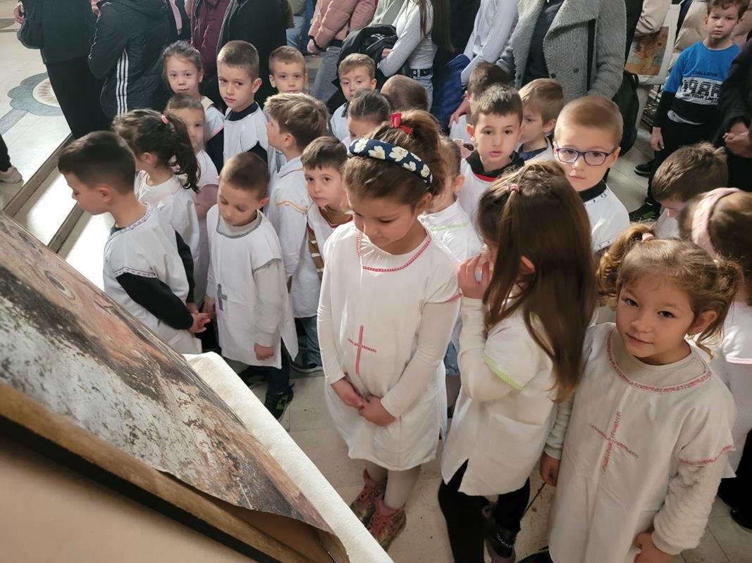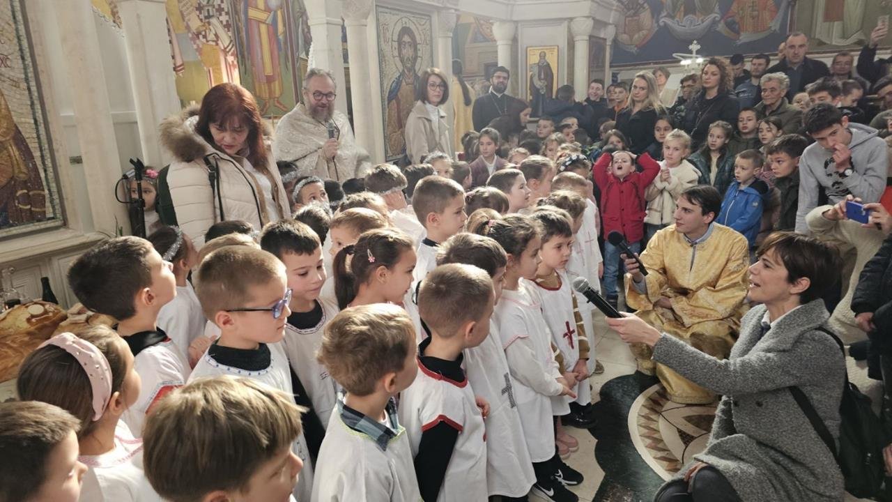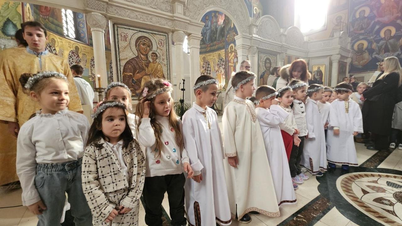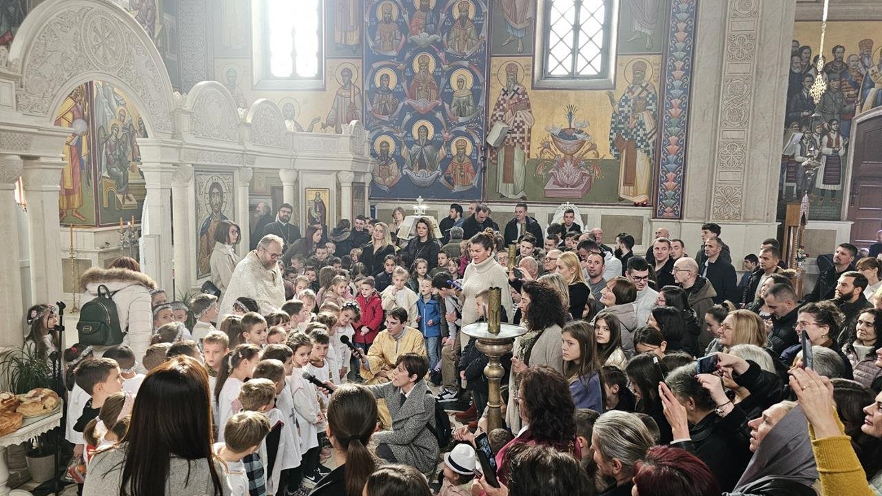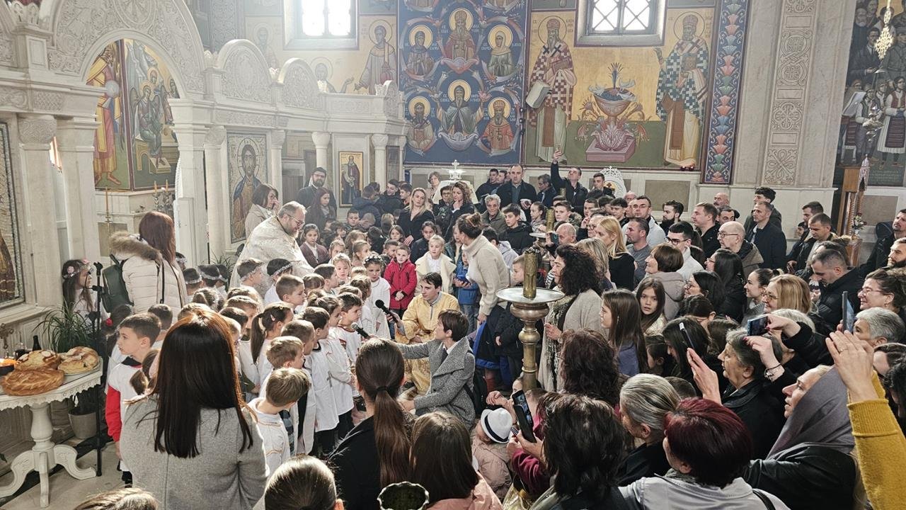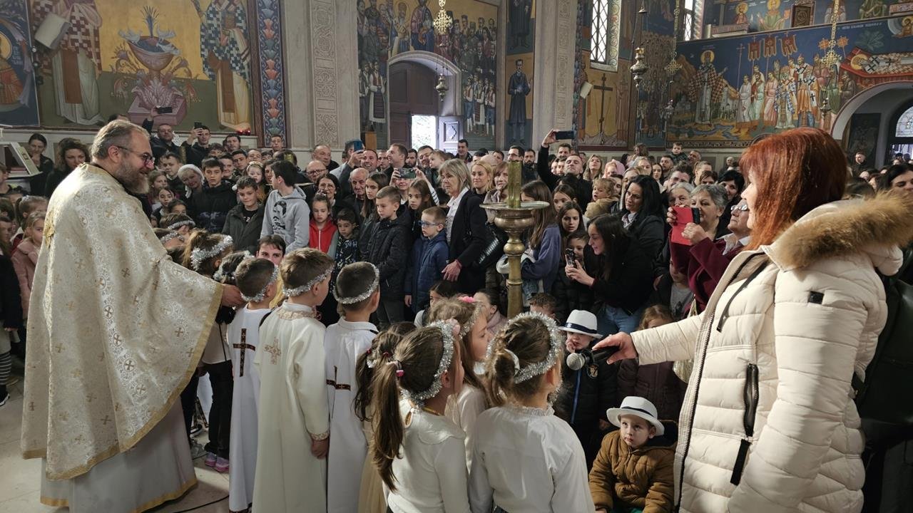 У испуњеном храму, нарочито је било примјетно присуство дјеце, међу којима су се истицали најмлађи. Поводом празника Светог Саве, васпитачи су на Литургију допратили дјецу из вртића “Наша радост”, дјечијег клуба “Света Евгенија – царица Милица” и играонице “Цицибан”. Након Причешћа и освећења славског колача дјеца су најприје рецитовала пјесмице у част Светог Саве, а затим су били награђени поклонима, које је припремила Црквена општина требињска, а подијелио протојереј-ставрофор Александар Илић.