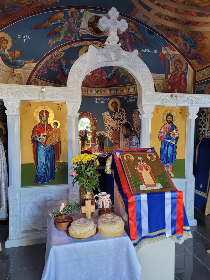 Свету Литургију у присуству већег броја вјерника служио је протојереј-ставрофор Василије Томић уз саслужење протојереја-ставрофора Александра Илића, протојереја Мирослава Ратковића и надлежног пароха оца Бориса Бандуке, а у молитвеном присуству монаха Атанасија, сабрата манастира Светог великомученика Георгија у Зубцима.