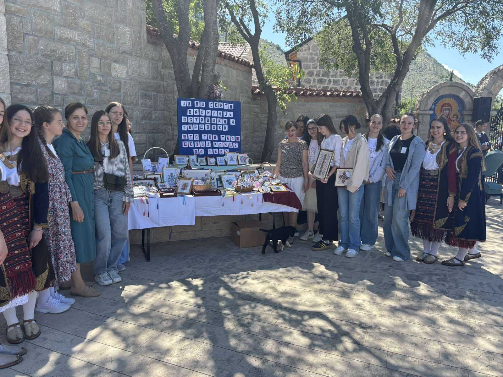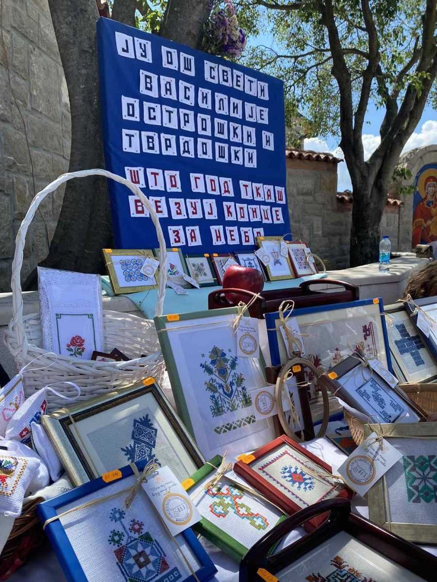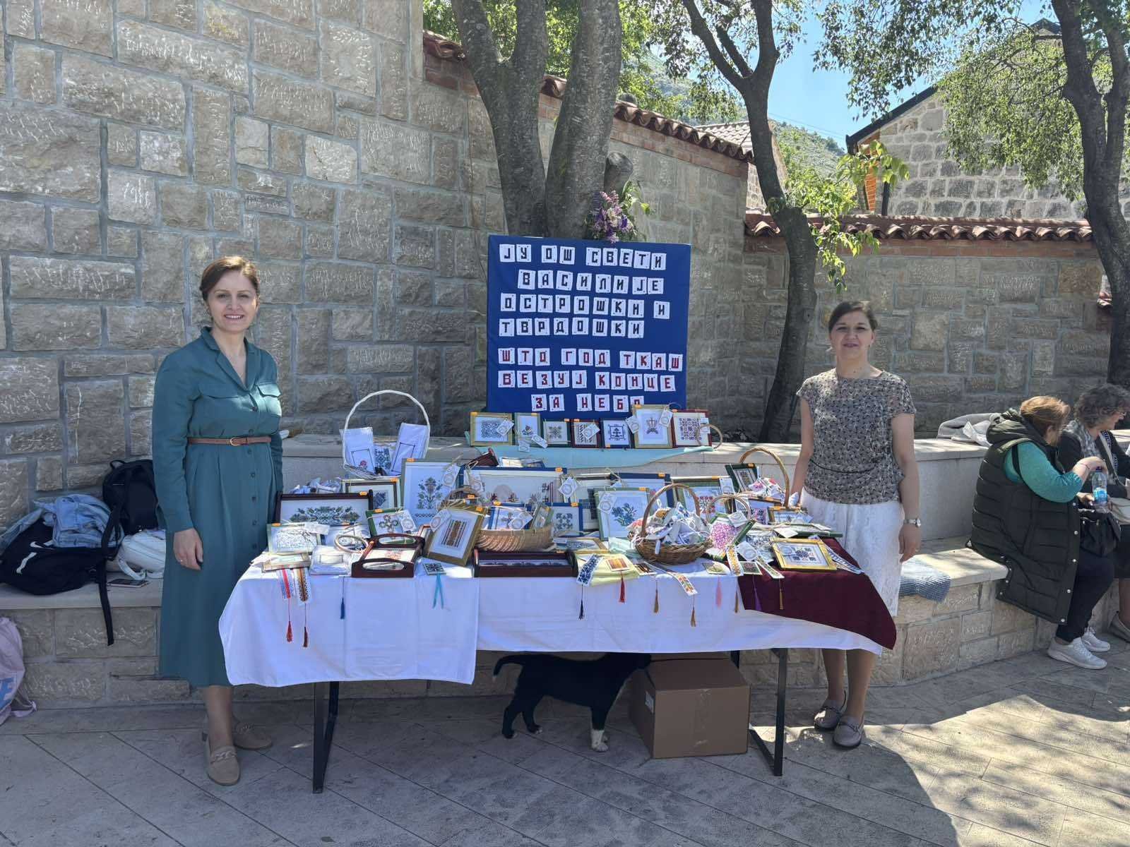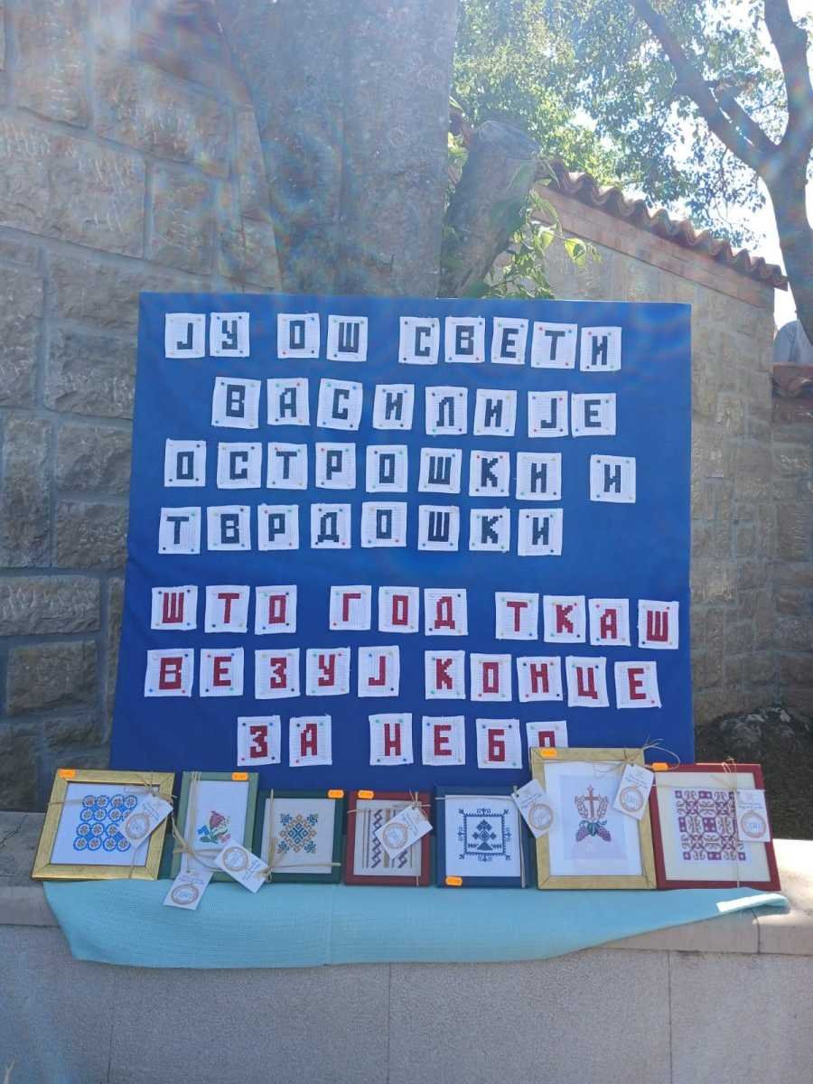 Једна лијепа и позитивна прича, која може послужити као узор али и охрабрење свима који у школи раде или се са њом на било који начин сусрећу, се родила у ОШ ,,Свети Василије Острошки и Тврдошки” у Требињу. Наиме, двије наставнице, вјеронауке и енглеског језика, су прије двије године покренуле несвакидашњу секцију веза у склопу додатних активности које имају за циљ стицање ширих знања и вјештина у односно на редовну наставу. Будући обје врло креатвне и свестране, а вођене идејом да своје ученике упознају са културном баштином женског стваралаштва и оспособе их да јој и сами нешто допринесу, за кратак период су на секцији окупиле велики број заинтересованих. Овладавање техником покрстице се показало као не нарочито захтијевно, док израда врло комплексних мотива змијањског или херцеговачког веза изискује много стрпљења и концетрације. Да вез запосли руке, а смири ум, тражи угодно друштво и порађа уникатне комаде који плијене својом љепотом, су бенефити којих су ученице деветог разреда постале дубоко свјесне те су наставиле да посјећују секцију и касније, у предасима између средњошколских обавеза. Да би толики труд и практично био смислен, изродио се план да се припреме радови за хуманитарни базар за школску славу Св. Василија, од чије продаје ће се олакшати трошкови екскурзије школским друговима. Припремили су се и поклони да се уруче највиђенијим гостима након литургиског сабрања. Магнети, обиљеживачи за књиге, тацне, и разни други, укусно и лијепо упаковани и аранжирани, украси су се јутрос могли наћи на штанду у манастирској порти у Мркоњићима. Мислило се о свакој ситници. Продавале су их насмијане дјевојке, док су наставнице Мирјана и Гордана појашњавале сваки детаљ љубопитљивим посматрачима и купцима, славећи Бога и херцеговачког чудотворца, за дар, прилику и милост која их је повезала да заједно стварају и добро чине.