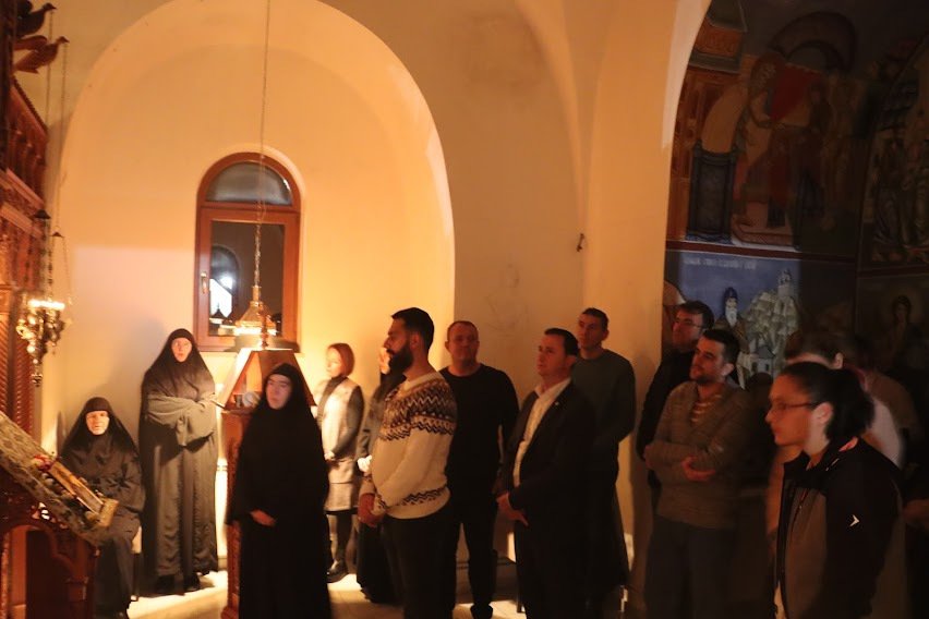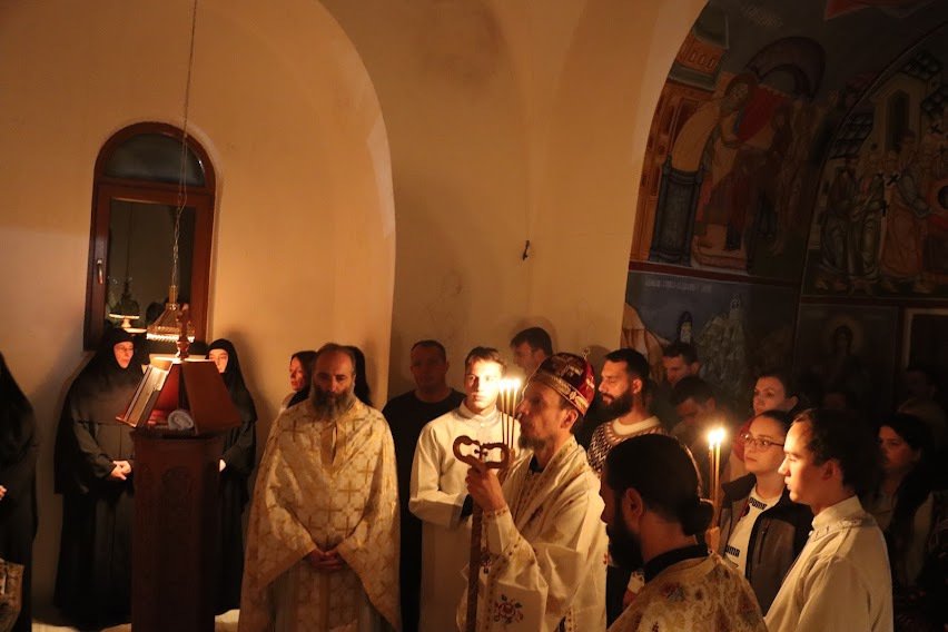 На бденију се сабрало монаштво Петропавловског и Тврдошког манастира, као и дио требињске црквене заједнице, а служба је нарочито украшена антифоним пјевањем сестара из Петропавлова, тврдошких монаха и појаца Саборног храма у Требињу.