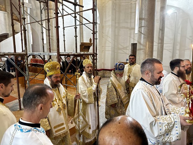 Светом Архијерејском Литургијом у Храму светих Василија Острошког и Петра Дабробосанског началствовао је Митрополит захумско-херцеговачки Димитрије, уз саслужење Митрополита дабробосанског Хризостома и Епископа липљанског Доситеја. Након Литургије служен је парастос Митрополиту Николају.