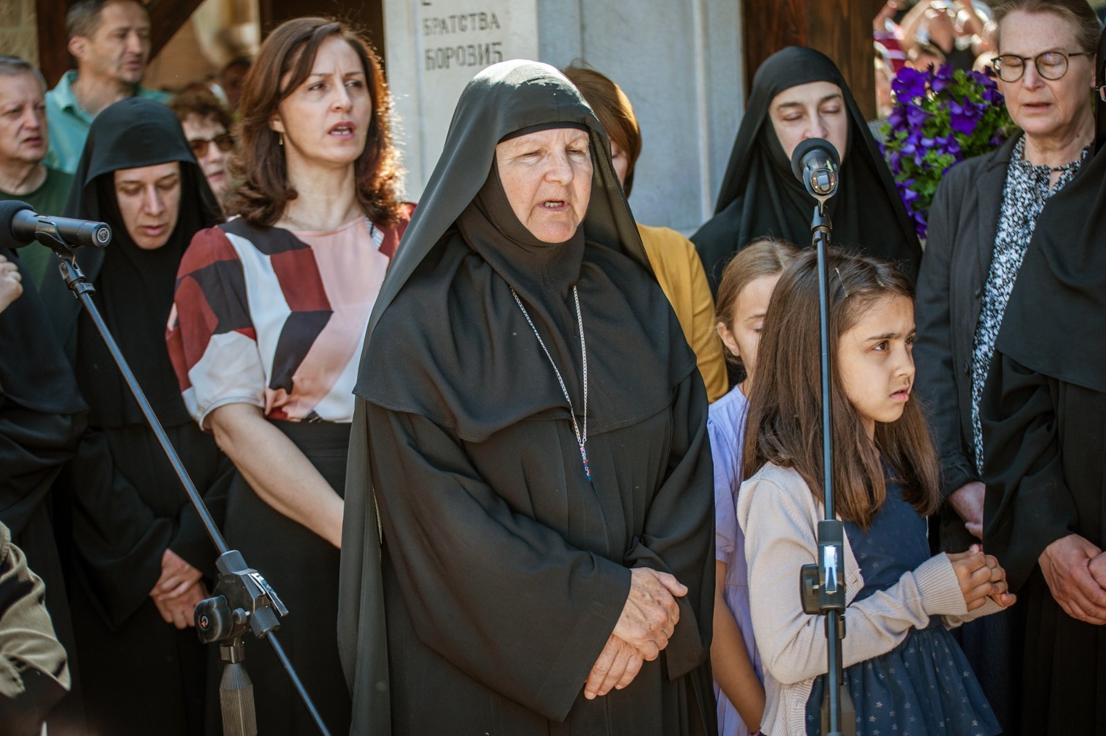Дугогодишњег домаћина и ревносног архијереја, данас драгог госта, на капијама Манастира дочекало је сестринство Петропавлова манастира, којем је одлуком Епископа Димитрија овај Манастир предат на управљање, свештеници, монаси и мноштво поклоника који нису жалили труда поранивши да би се сабрали на мјесту рођења богоносног светитеља.