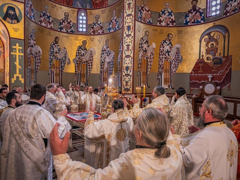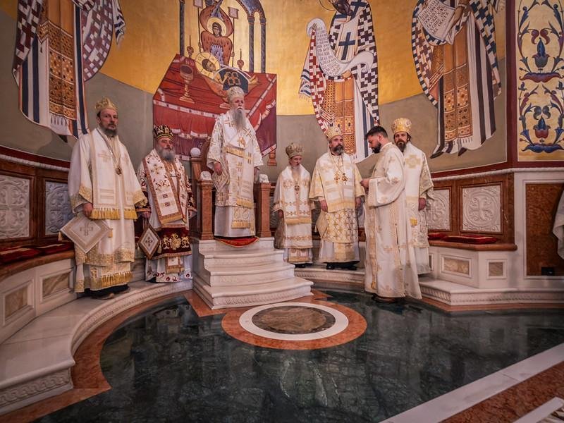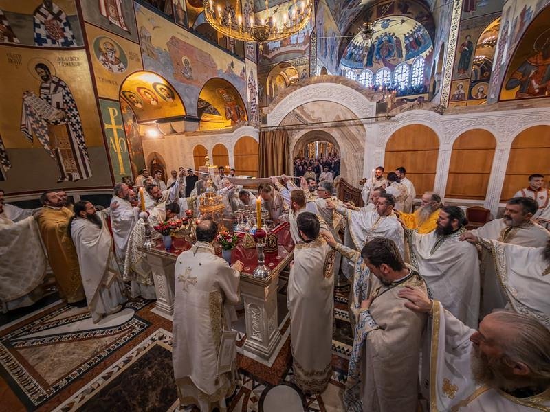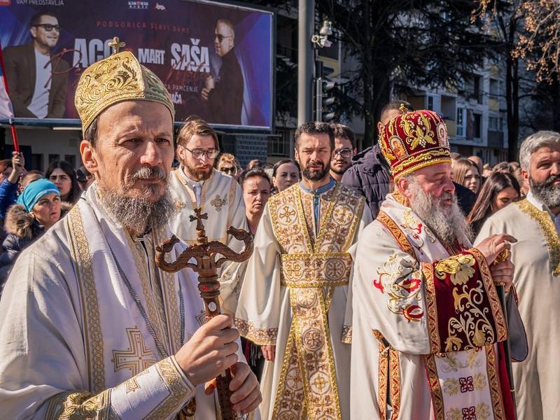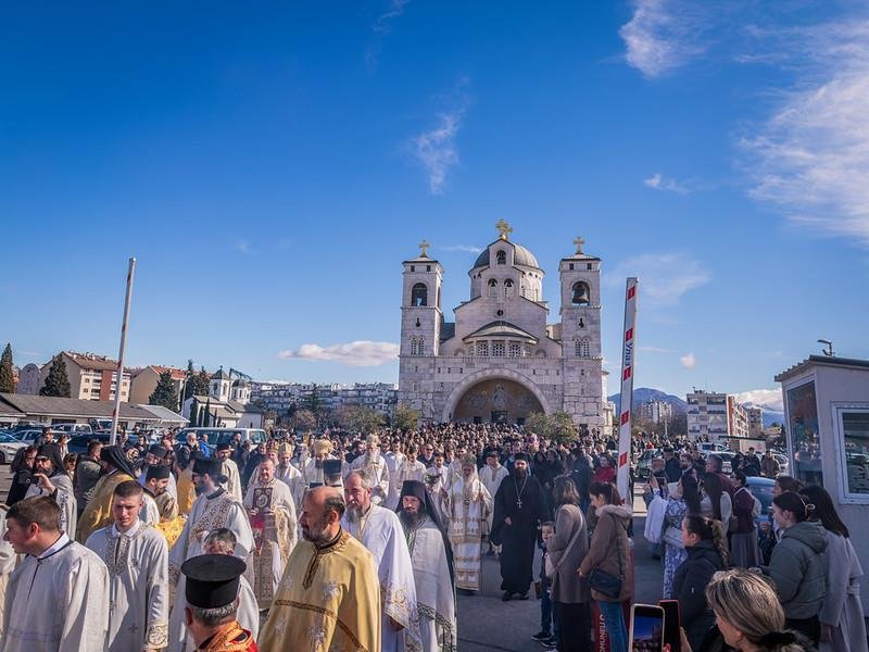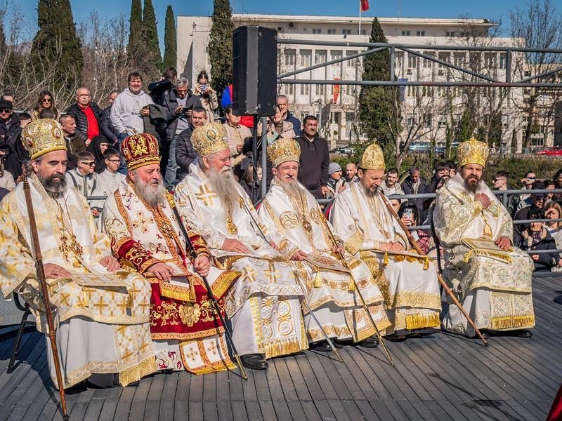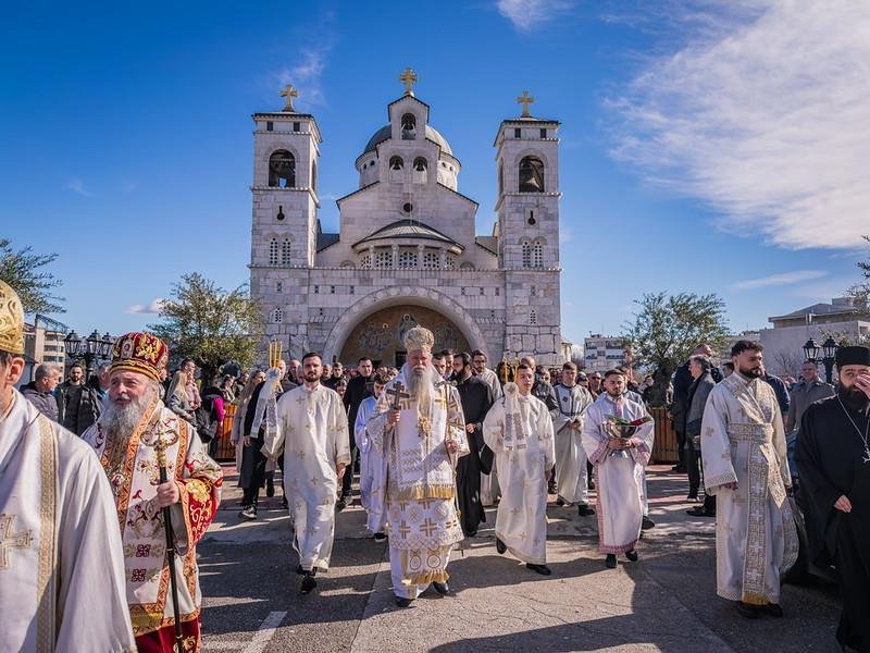 Свету Архијерејску Литургију у Саборном храму Христовог Васкрсења служио је Његово Високопреосвештенство Архиепископ цетињски Митрополит црногорско-приморски г. Јоаникије уз саслужење Епископа делчевско-каменичког г. Марка из Македонске Православне Цркве, као и Митрополита милешевског г. Атанасија, Митрополита захумско-херцеговачког и стонско-приморског г. Димитрија, Митрополита будимљанско-никшићког г. Методија и Епископа диоклијског г. Пајсија, великог броја свештенства, монаштва и вјерног народа. Архијерејској Литургији присуствовали су предсједник Скупштине Црне Горе г. Андрија Мандић, градоначелник Подгорице г. Саша Мујовић, предсједница Скупштине Главног града др Јелена Боровинић-Бојовић….