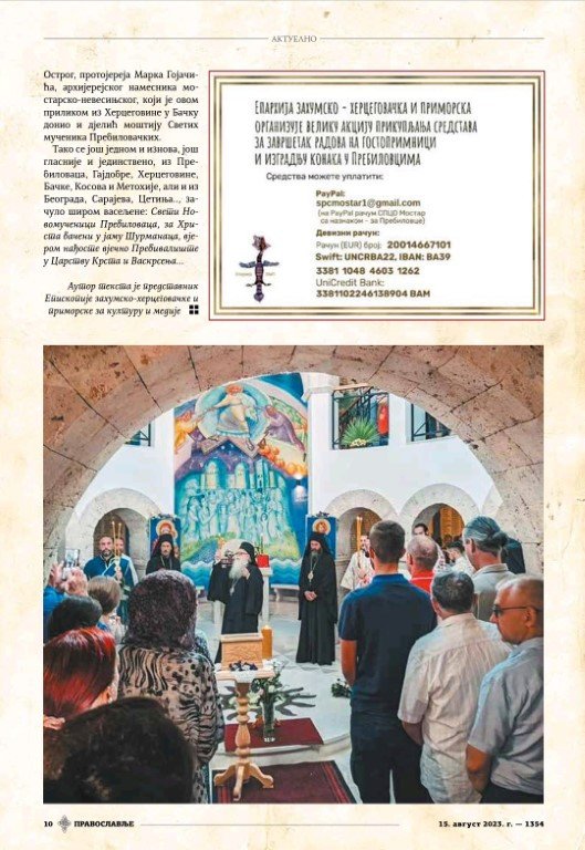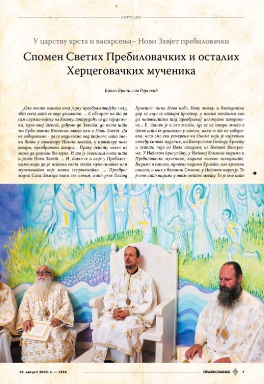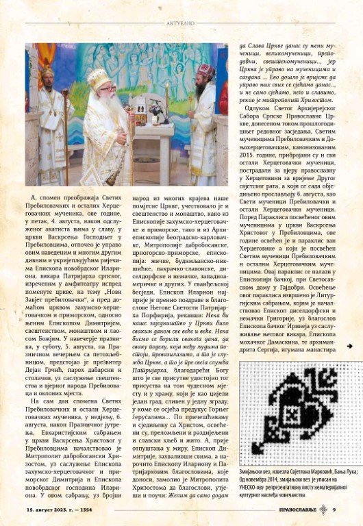 Извор: Православље Новине Српске Патријаршије (број 1354, 1. августа 2023.)