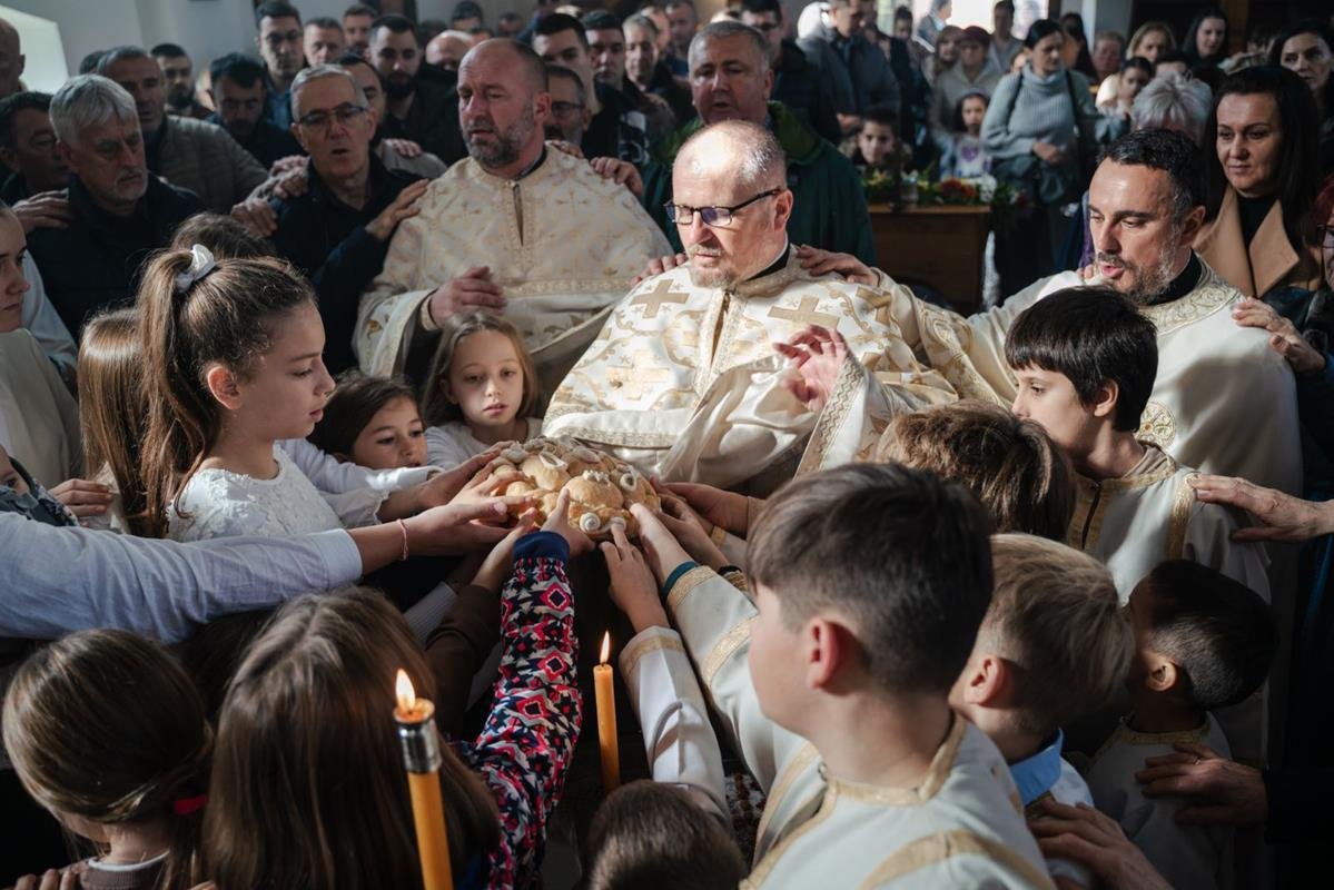 Током Литургијског сабрања које су предводили свештеници Саборног храма у Гацку, освећени су и славски дарови, а дружење и послужење за све присутне настављено је у сали капеле.
