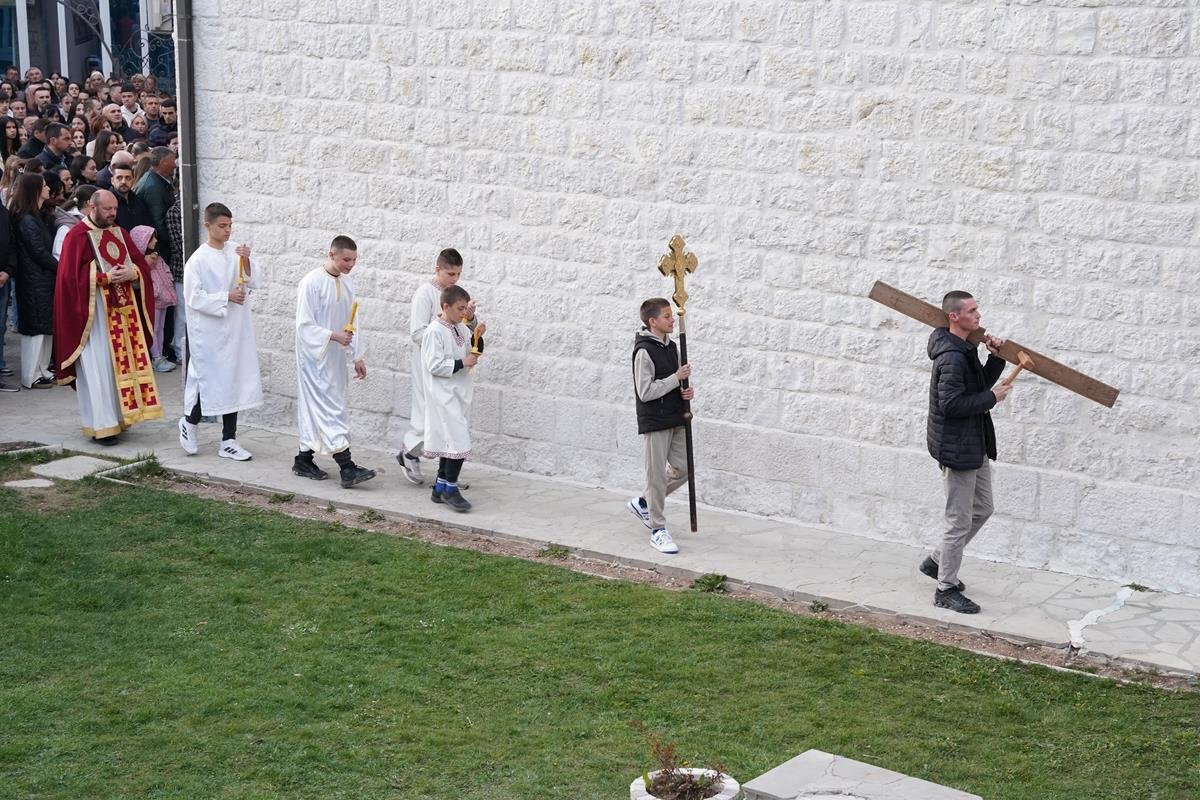 Свеопшта туга због Христовог страдање изображена у изношењу плаштанице и полагању у гроб на Велики петак прерасла је у свеопшту радост Христовог Васкрсења. У препуном Саборном храму у Невесињу свечано је дочекано славно Христово Васкрсење у недељу рано ујутру.
