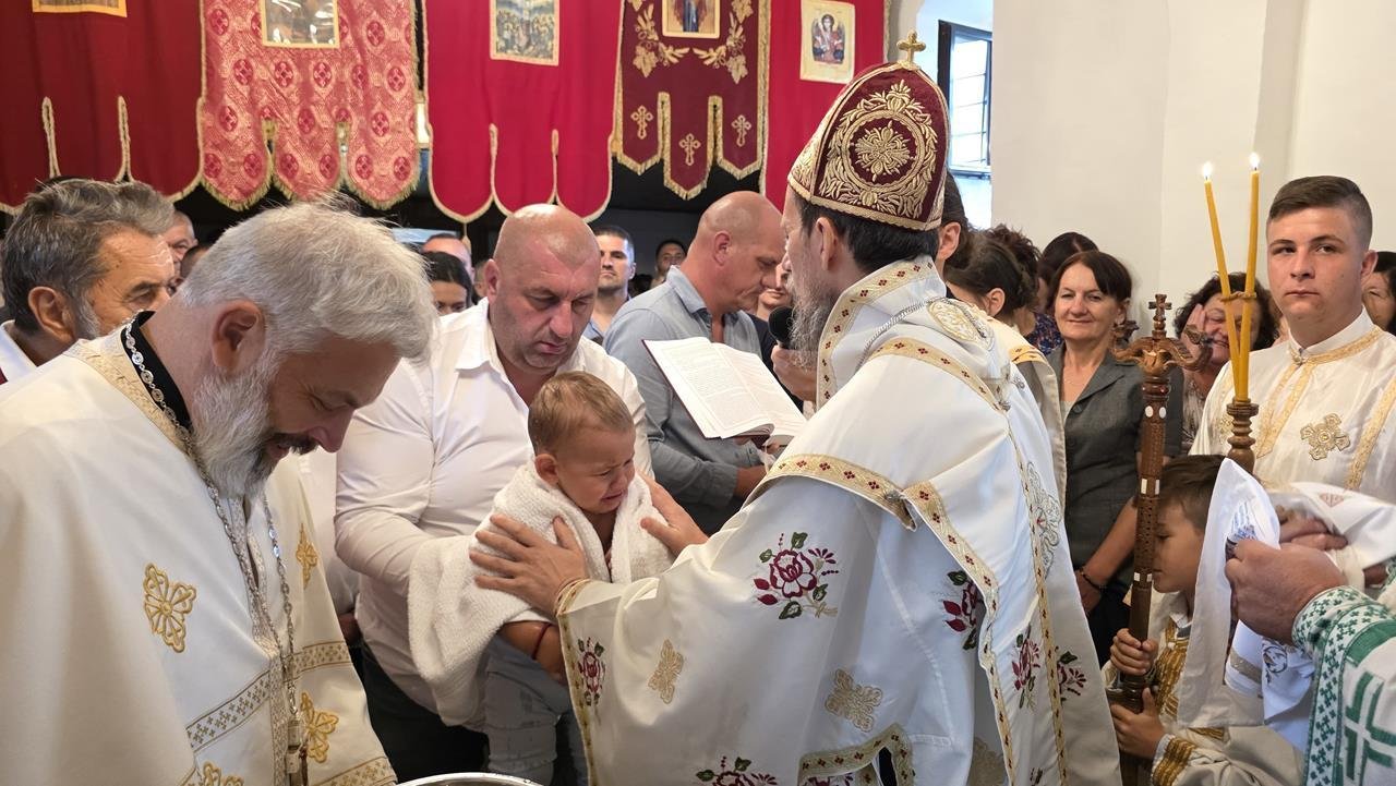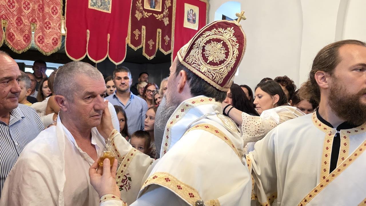 У јеванђељској бесједи, Владика Димитрије поучио је да Христос ријечју Божијом, која се из Његових човјечанских уста јавила, даје људима спасоносне заповијести — спасоносне путеве живота. Заповијести Божије су природне човјеку — неприродан је гријех. Човјек врлински живи пуноћом радости, пуноћом среће. Данас сви трагају за срећом, а она је у сусрету с Богом. Глад и јесте чежња, коју људи осјећају и на погрешне ствари усмјеравају, а заправо је чежња за живим Богом, за љубављу, милошћу и благодаћу Његовом. Указујући на новокрштене слуге Божије, Владика је нагласио да Црква не крштава човјека само да би у овом животу био добар и поштен, већ их рађа за живот вјечни.