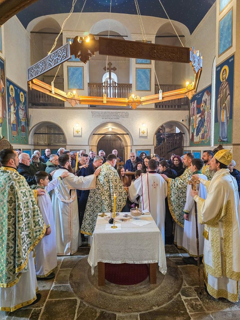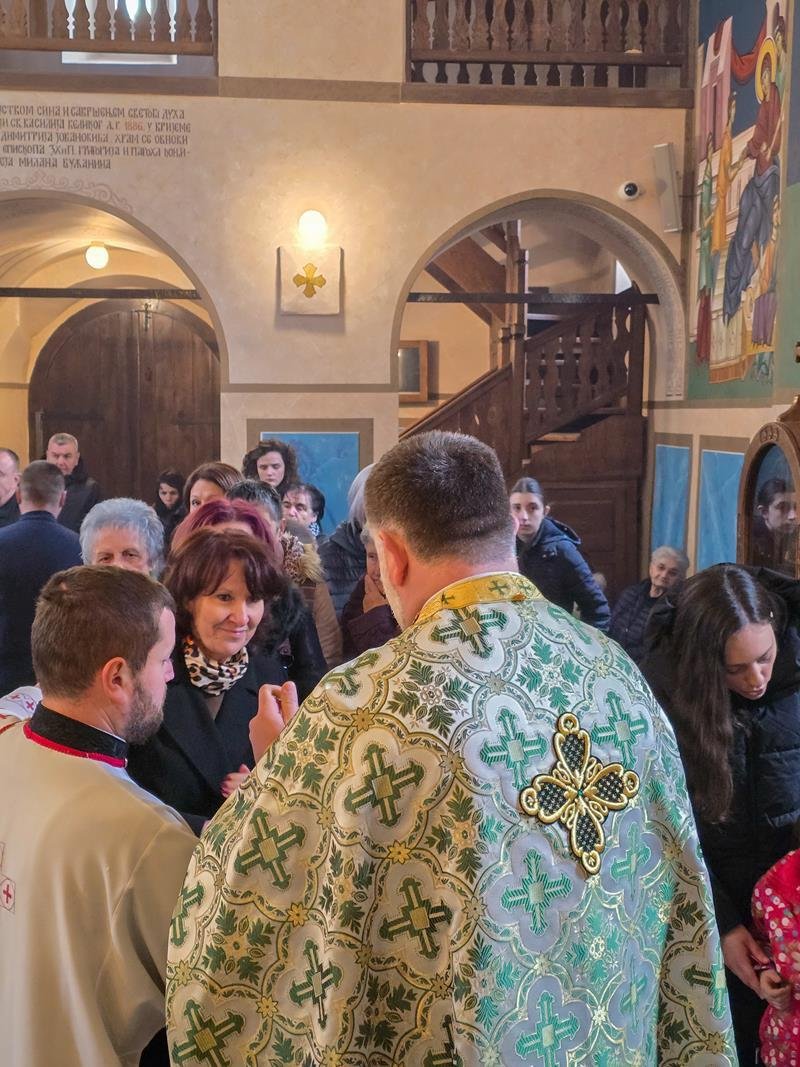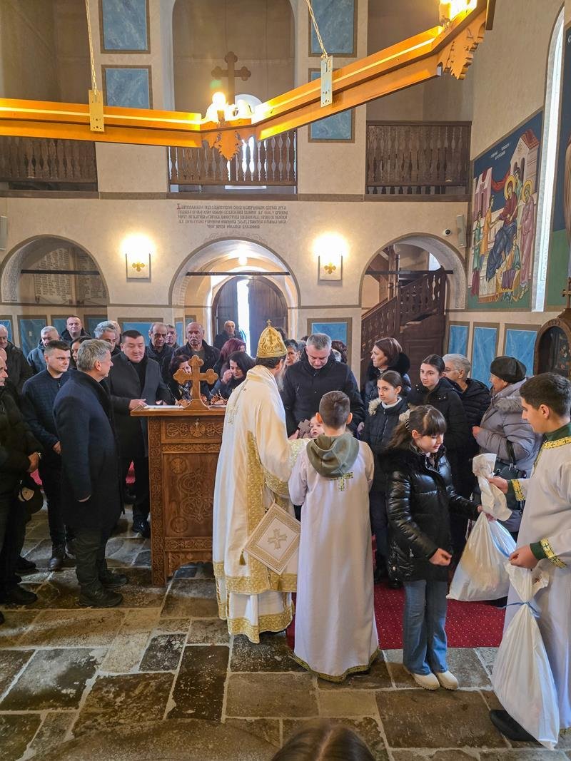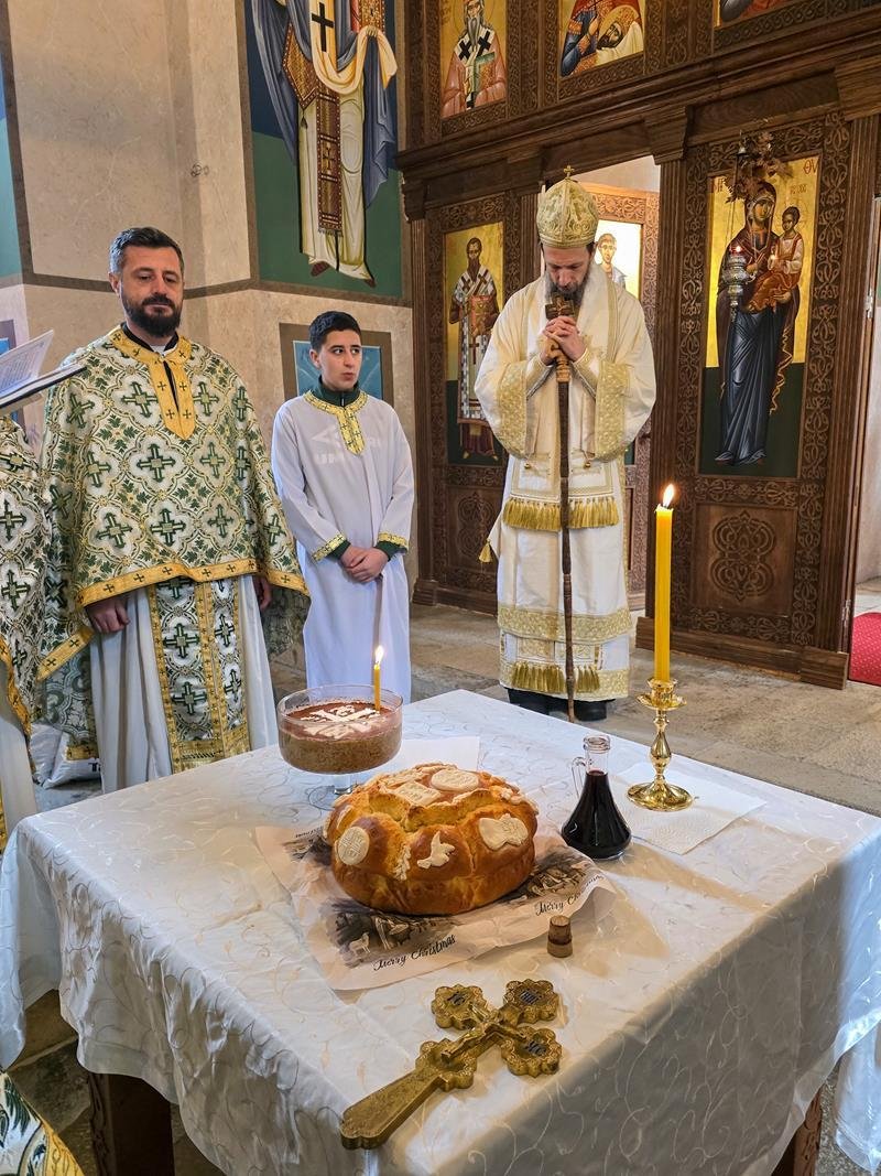 Након Причешћа услиједило је освећење славског колача и жита, а обраћајући се сабранима, Владика Димитрије пожелио је присутнима срећну славу и Нову годину.
