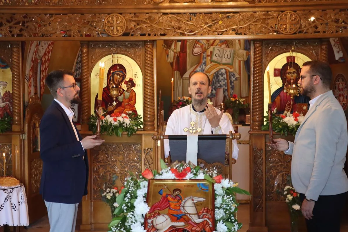 У јеванђељској бесједи, Владика Димитрије поучио је да су мученици били први светитељи Цркве, а Свети Георгије, којег Црква данас прославља, био је један од првих и највећих мученика и свједока, исповједника, Христових. Био је ратник у идолопоклоничкој војсци римској и кад је дошло вријеме исповиједања није се постидио, ни одрекао, нити је окренуо главу, већ је знао у кога вјерује, ко је истинити живот, и ко је истинита љубав и милост. Није се одрекао Христа да би сачувао своје достојанство, него се одазвао Христу, излазећи у сусрет, једнако као што Христос долази у сусрет људима. Владика је нагласио да је истинита древна ријеч хришћана о крви мученика и појаснио да је крв Светог великомученика Георгија сјеме и данашњих хришћана, који га послије многих вијекова славе.